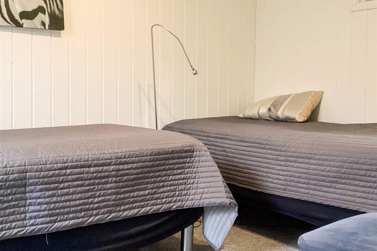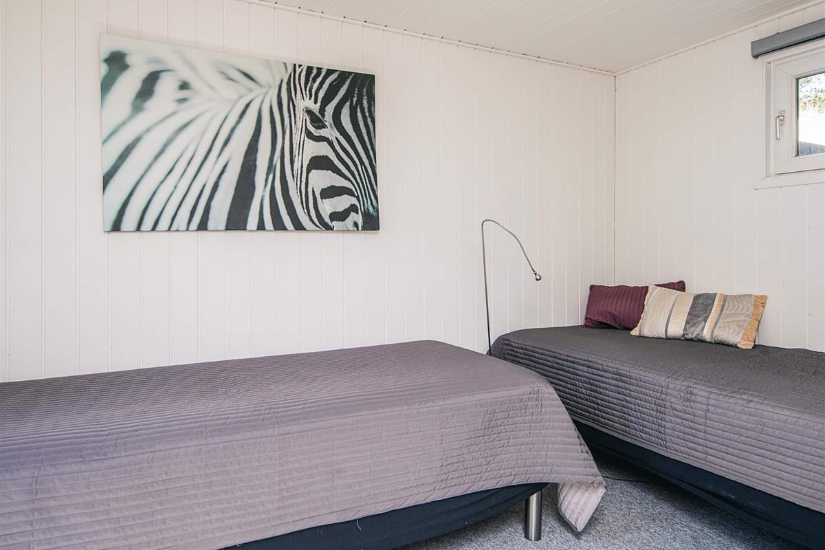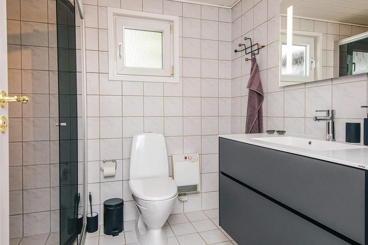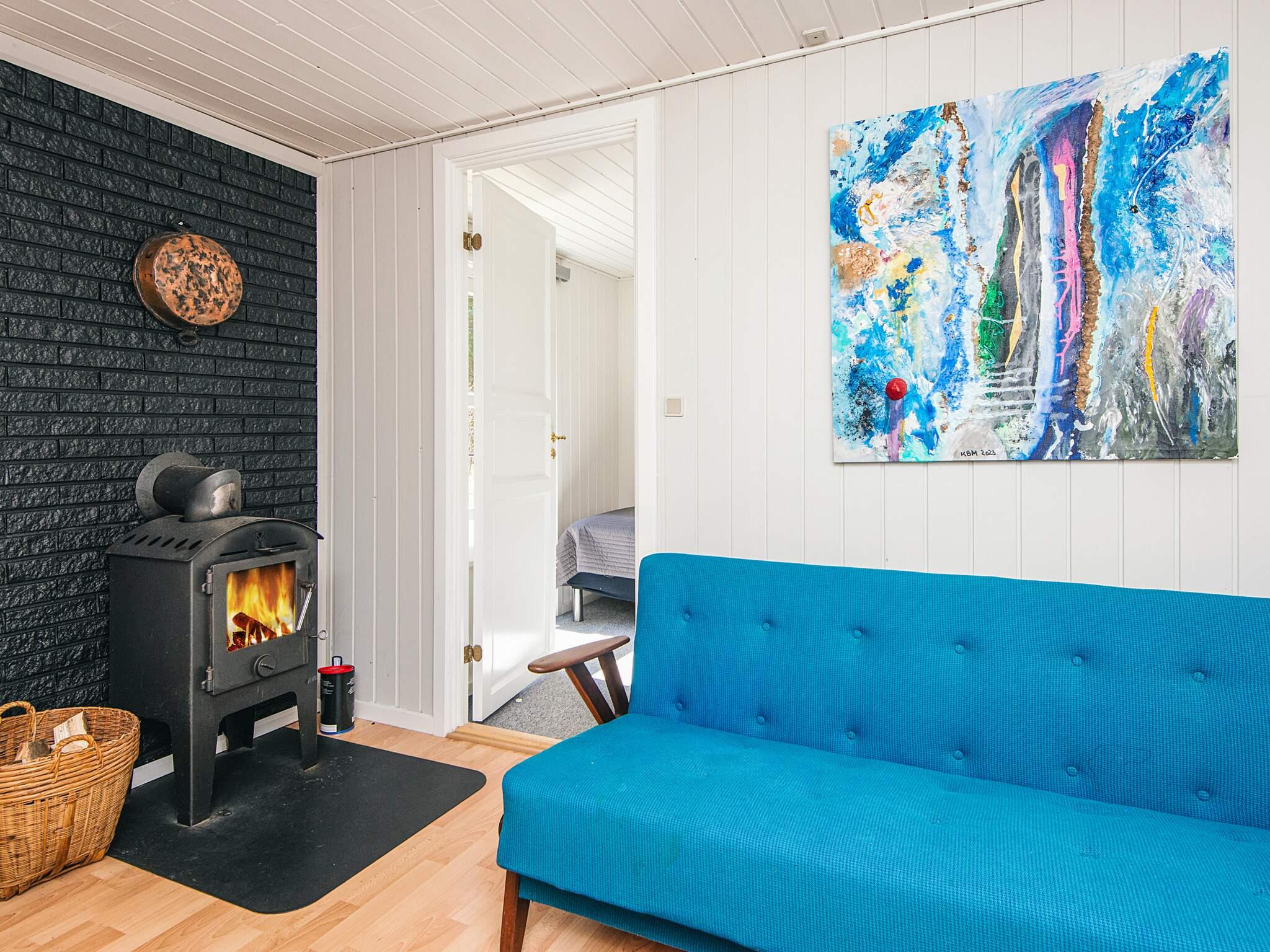 Das gut ausgestattete Ferienhaus hat Terrassentüren und große Fenster die für helle Räumlichkeiten sorgen. Das Haus besteht aus einer Wohnküche mit Essbereich und Sitzecke. Ein Zimmer mit 2 Einzelbetten, 2. Zimmer mit einem Doppelbett und ein 3. größeres Schlafzimmer mit einem weiteren Doppelbett. Ein Badezimmer im Haus. Im Wohnzimmer gibt es einen Holzofen. Um einen geringen Verbrauch und ein gutes Raumklima zu gewährleisten, ist im Haus eine klimafreundliche Wärmepumpe installiert.