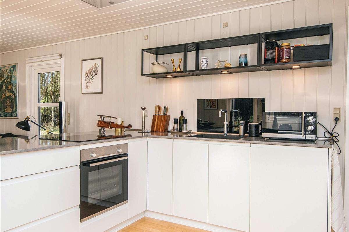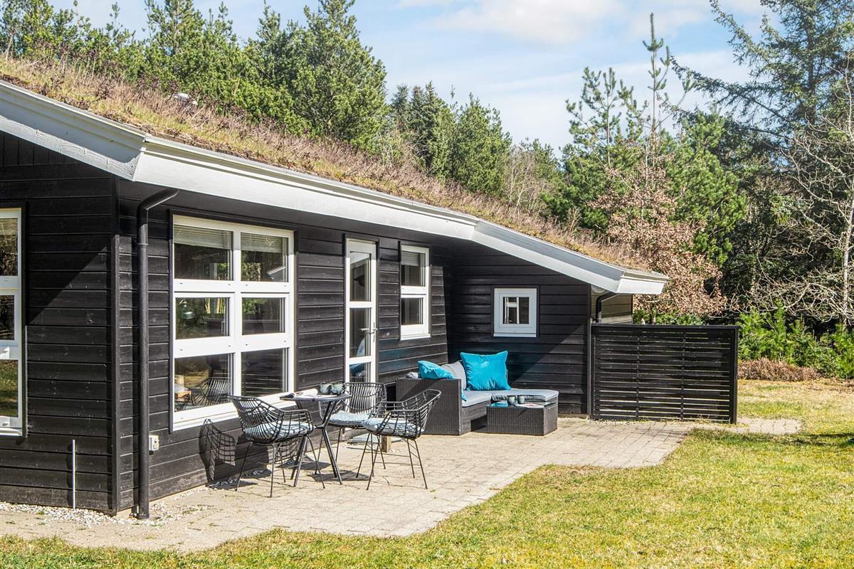 Das Ferienhaus liegt auf einem großen Naturgrundstück in einem Waldgebiet nördlich von Blokhus. Wenn Sie auf der offenen Terrasse sitzen, haben Sie vielleicht das Glück, Rehe, Füchse, Hasen oder Eichhörnchen zu sehen. Im Ferienhausgebiet gibt es kleine Schotterwege, sodass man schnell zu Fuß zum Wasser gelangen kann.