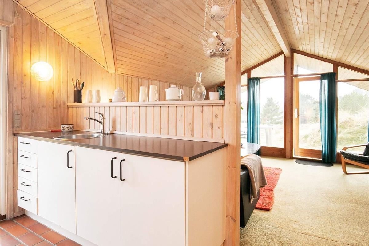 Geräumiges Ferienhaus auf einem attraktiven Grundstück in den Dünen und mit Aussicht zu den unter Naturschutz stehenden Flächen der Umgebung. Das Haus fügt sich harmonisch in diese schöne Landschaft ein, die Sie von der offenen u. der überd. Terrasse genießen können.