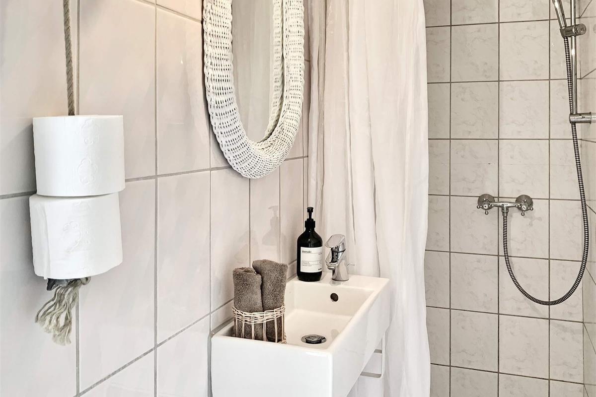 Bad: WC, Waschb., Dusche, Fußbodenheiz.