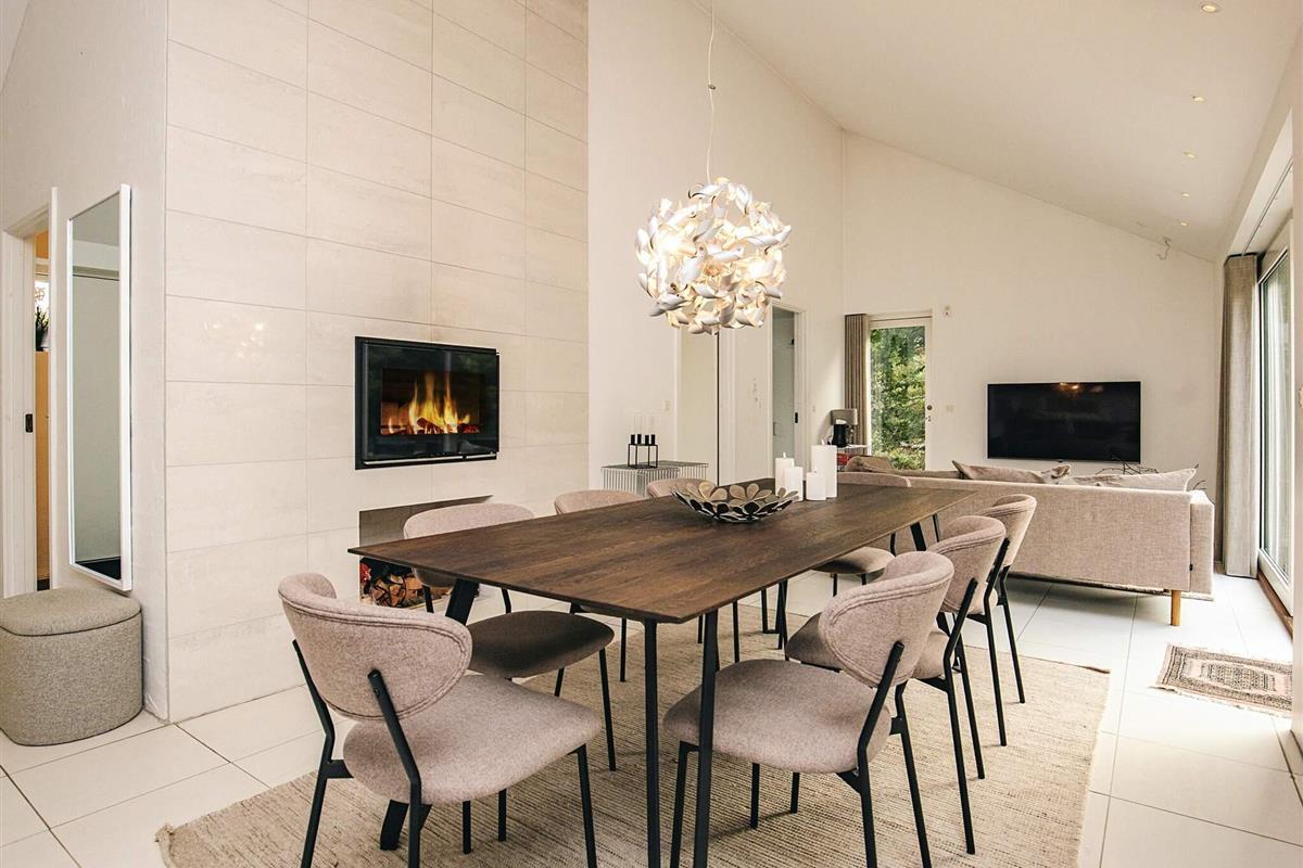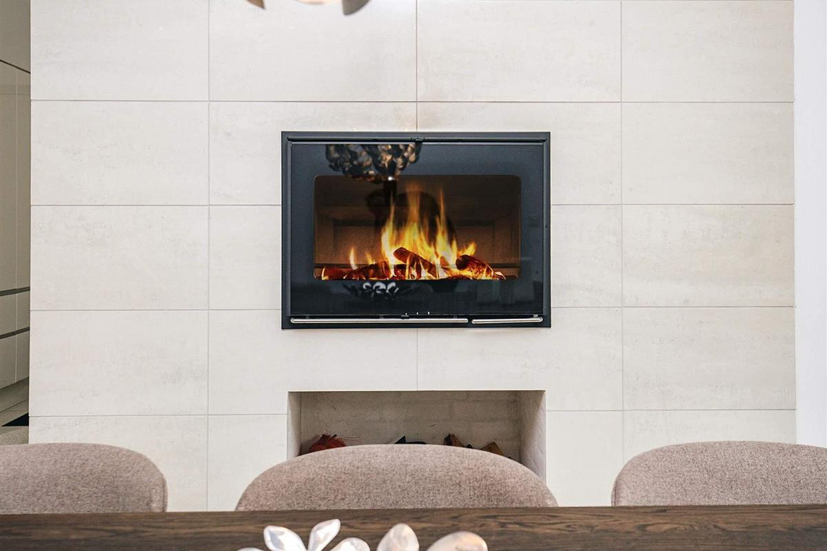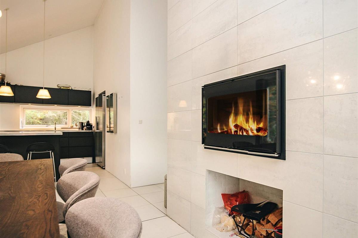 Das Sommerhaus verfügt über einen hellen und offenen Küchen-Essbereich mit Kaminofen und Fußbodenheizung im gesamten Haus.
