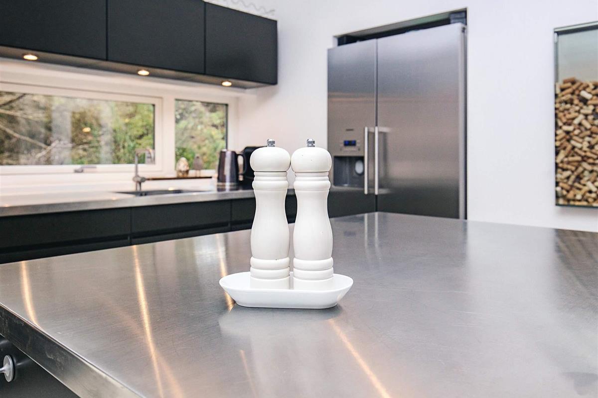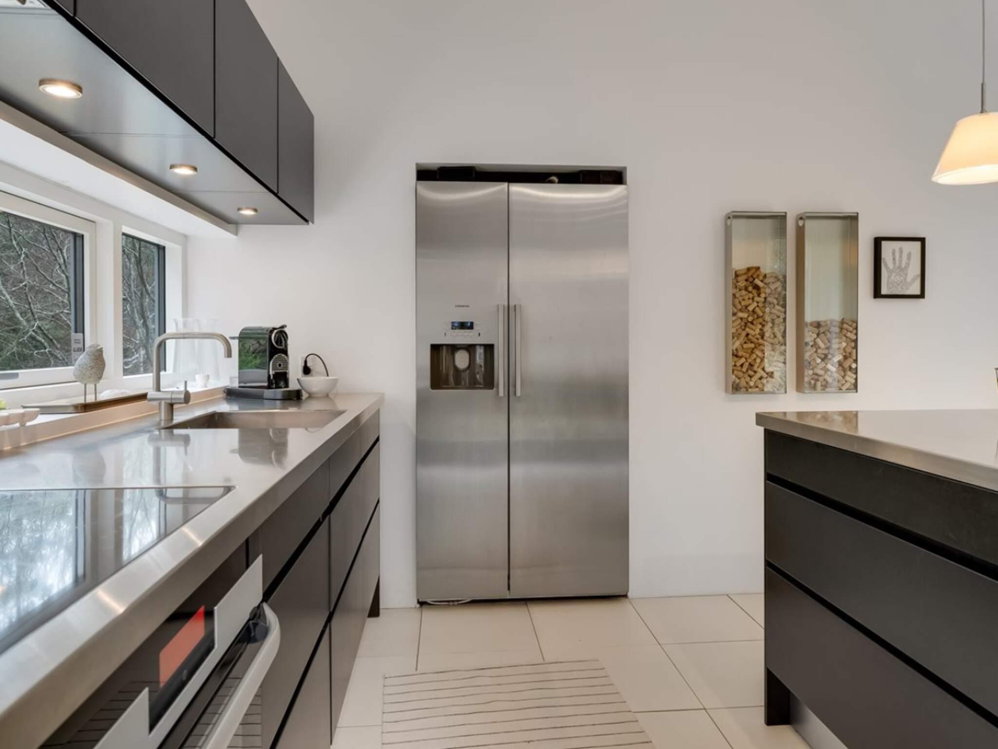Die Küche ist ausgestattet mit einem amerikanischen Kühlschrank, 4 Induktionskochfeldern, einem Umluftofen und einer Geschirrspülmaschine.