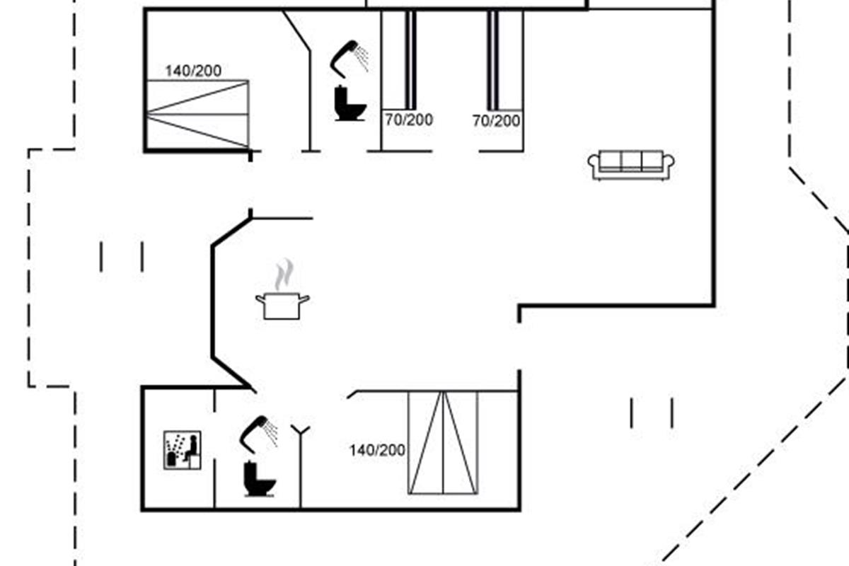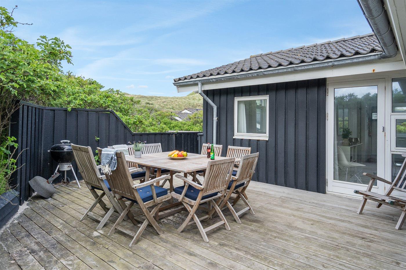 De vakantiewoning is gelegen op een 1200 m² groot Duingrond. Afstand tot de zee 50 m. Dichtstbijzijnde winkel 1000 m. Bij de vakantiewoning hoort 40 m² terras. Gereedschapsruimte. Het huis heeft een stopcontact voor het opladen van een elektrische auto.