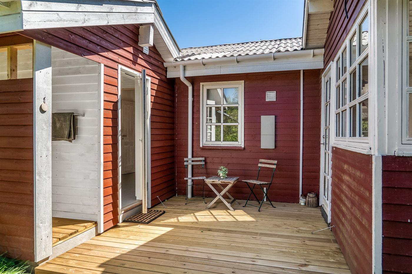 De vakantiewoning is gelegen op een 1749 m² groot natuural grond. Afstand tot de zee 1000 m. Dichtstbijzijnde winkel 1000 m. Bij de vakantiewoning hoort 15 m² terras. Daarnaast is er een 20 m² groot overdekt terras. Gereedschapsruimte. Zandbak. Buitendouche. Het huis heeft een stopcontact voor het opladen van een elektrische auto. Oplaadstekker type 2. Parkeerplaats bij het huis.