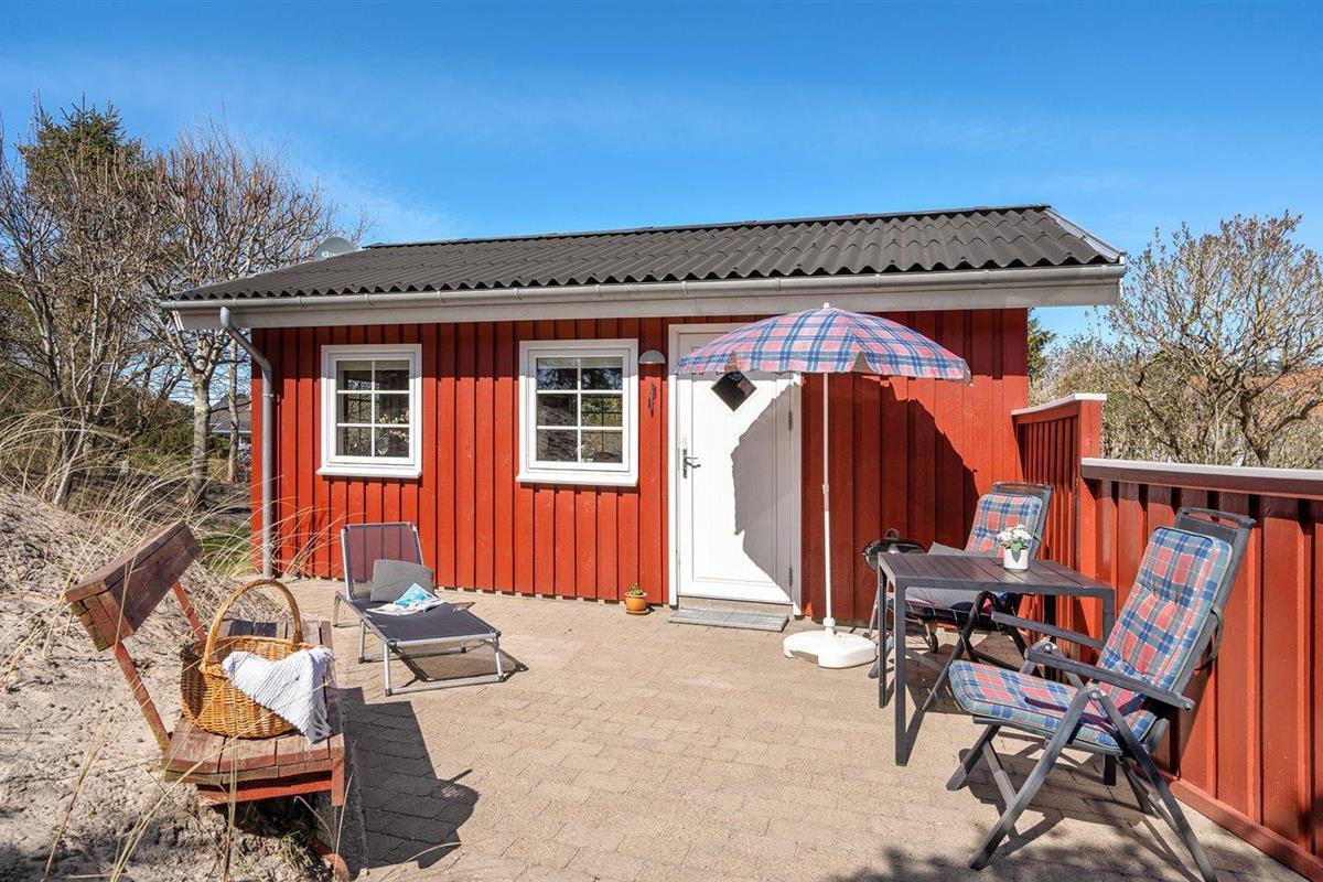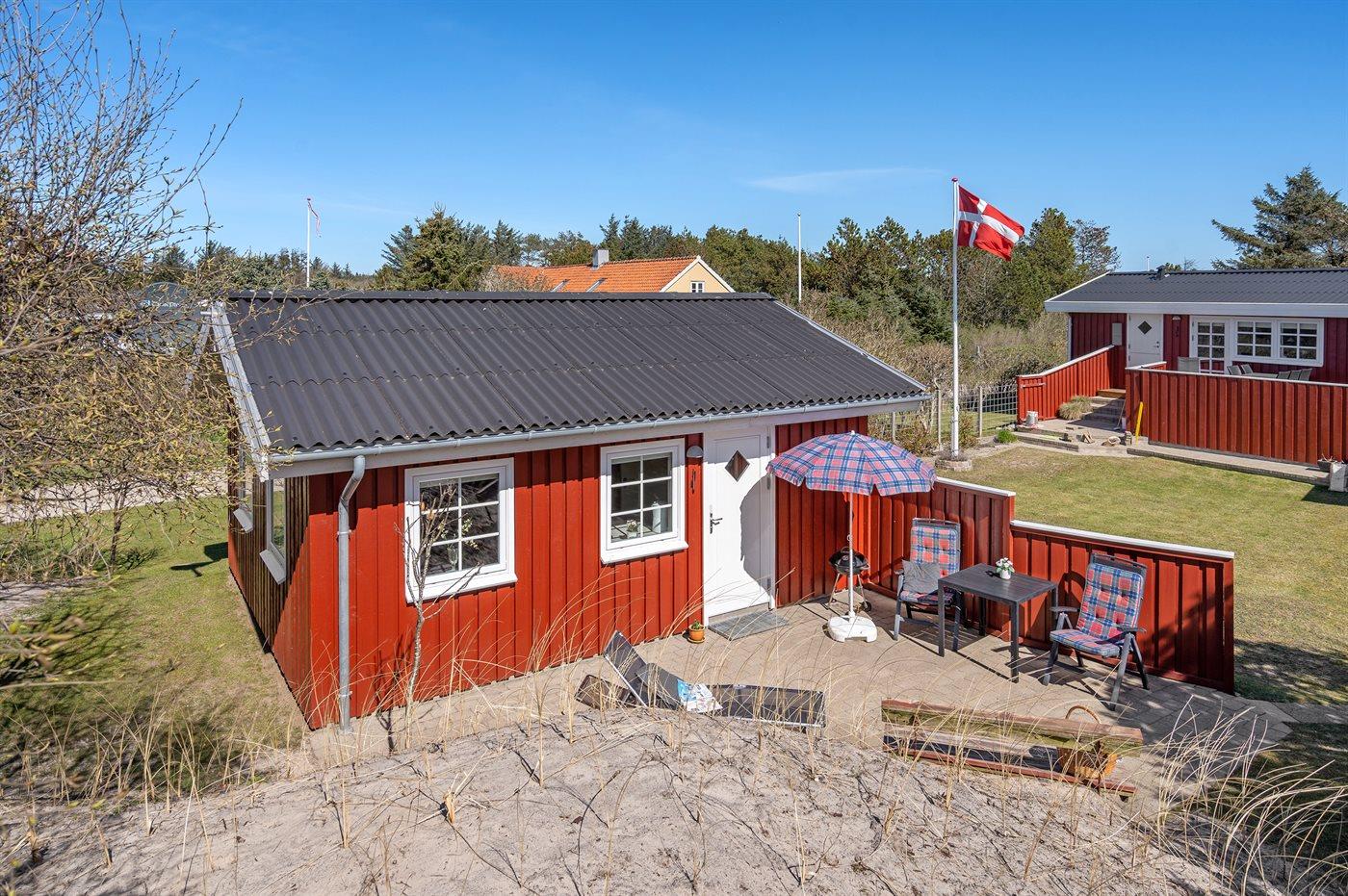 Gezellig vakantiehuis in Blokhus, 800 m van zee, met terras en parkeergelegenheid, ideaal voor een ontspannen verblijf.