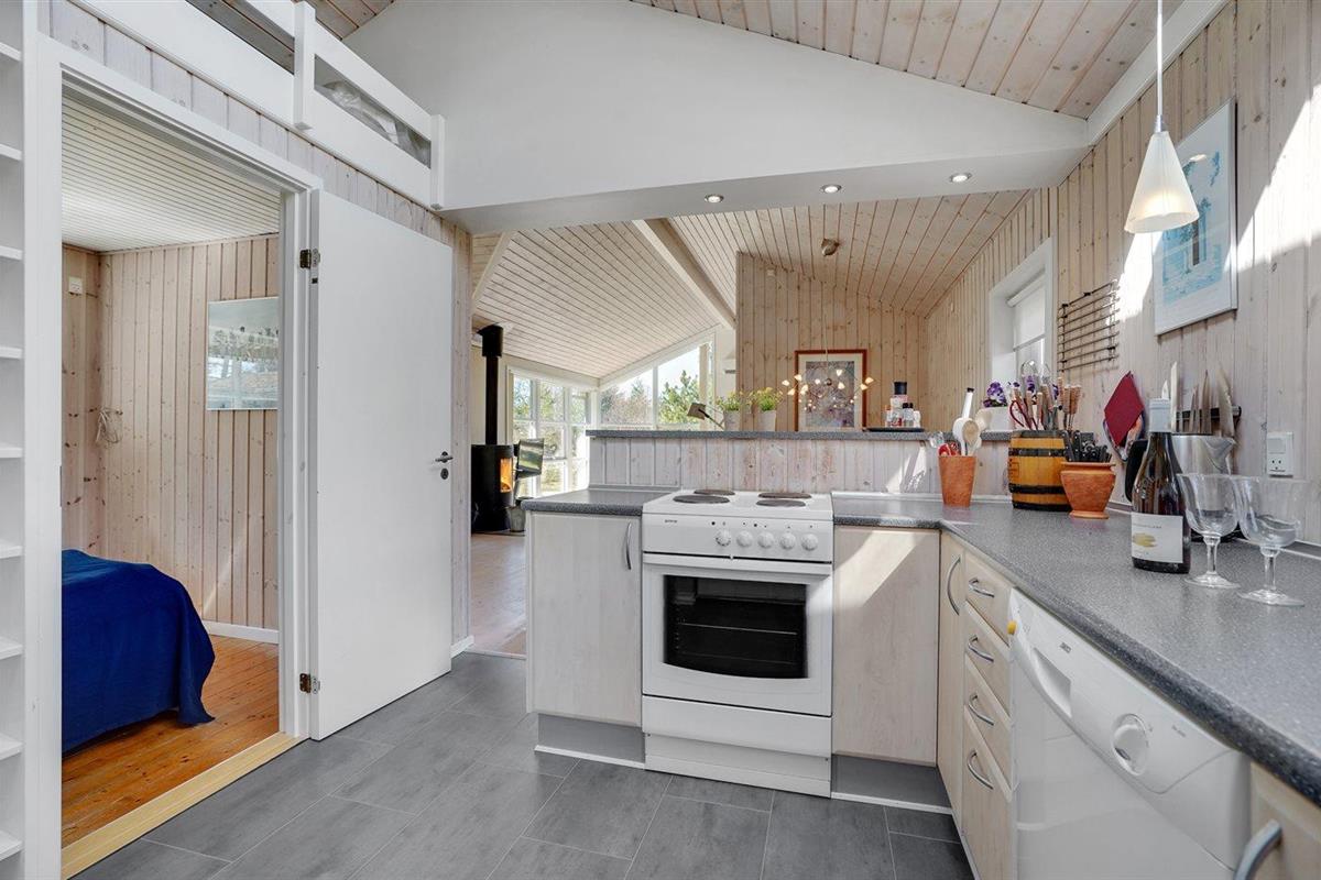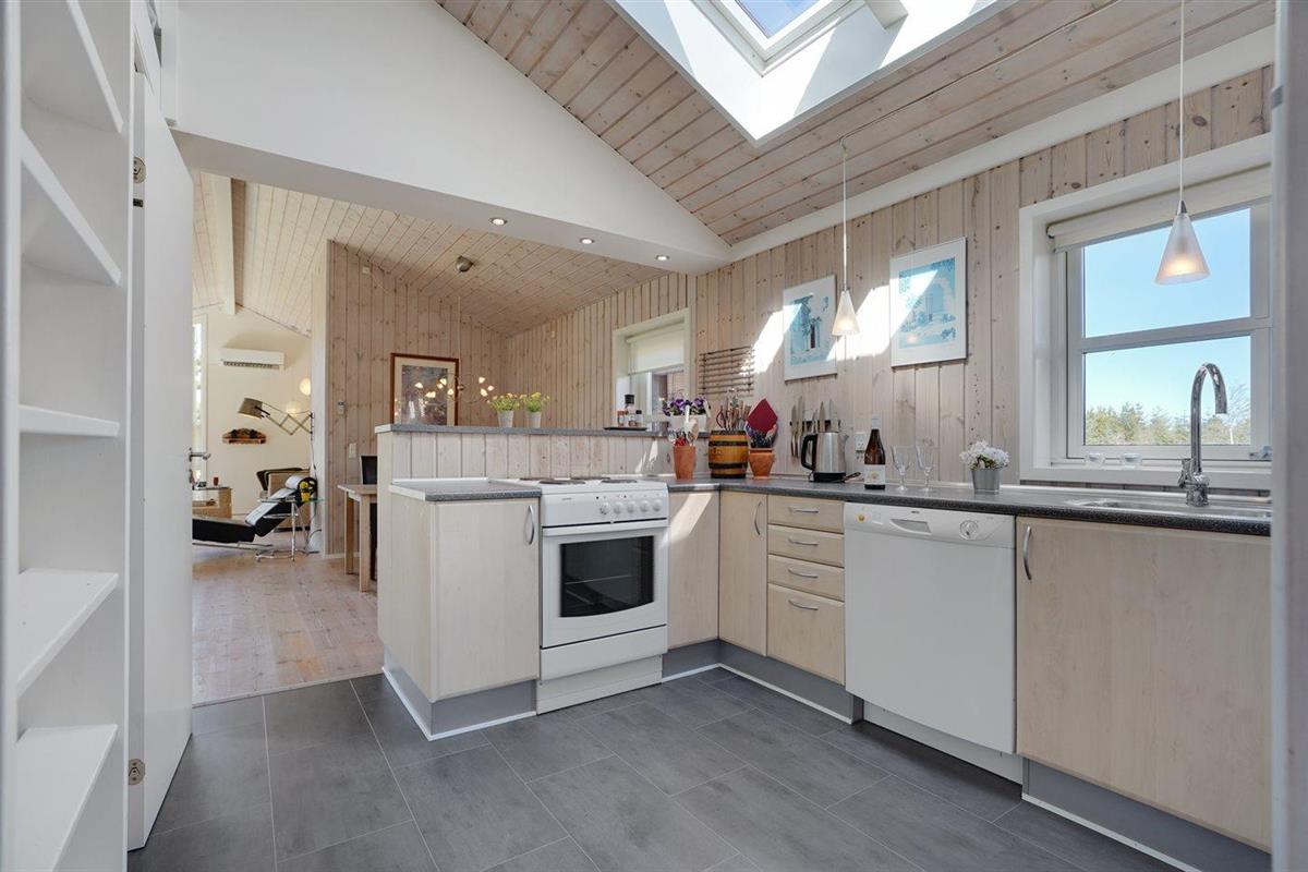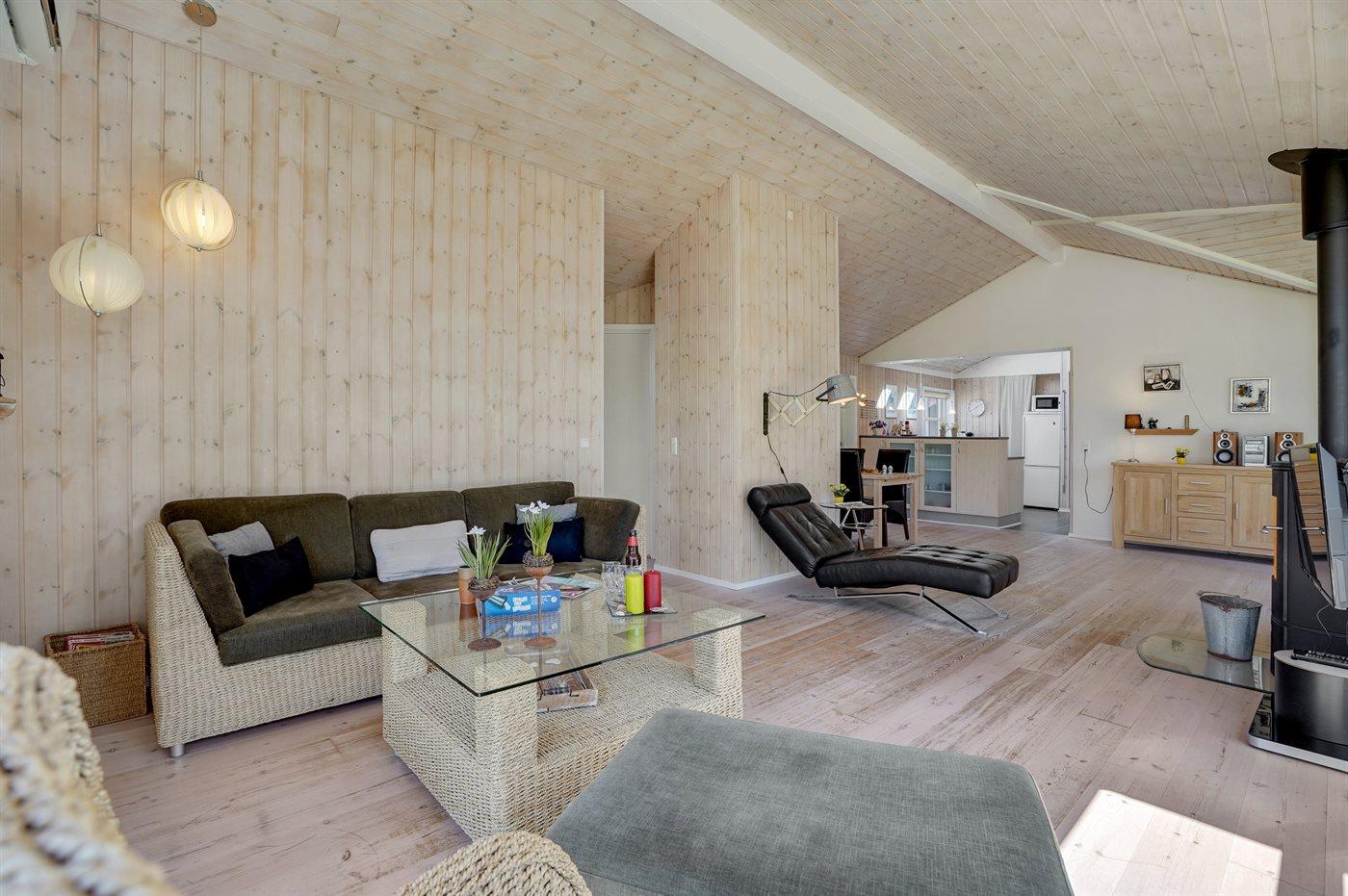 Ruim vakantiehuis in Blokhus met houtkachel, terras, en kindvriendelijke voorzieningen.