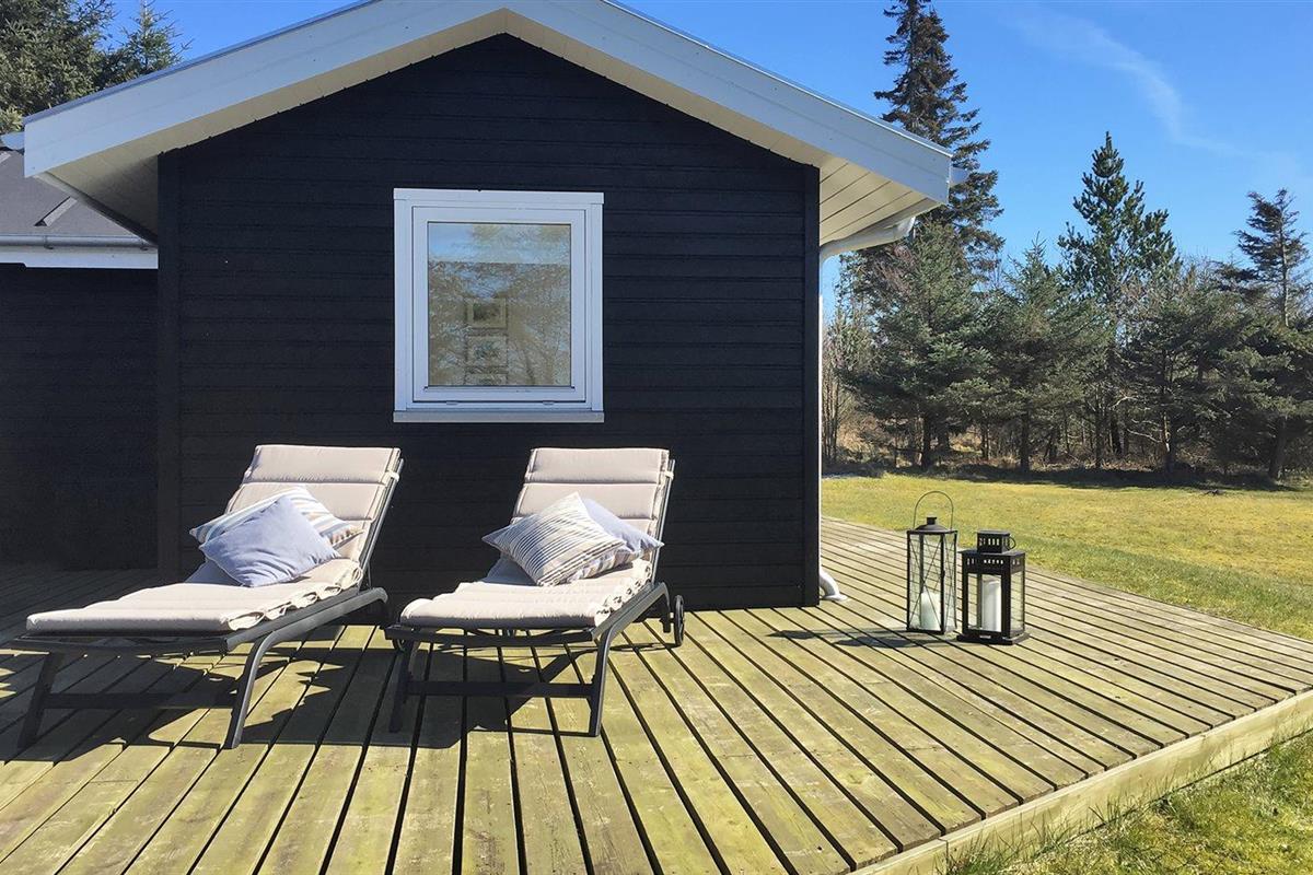 De vakantiewoning is gelegen op een 2500 m² groot natuural grond. Afstand tot de zee 1700 m. Dichtstbijzijnde winkel 1100 m. Bij de vakantiewoning hoort 90 m² terras. Daarnaast is er een 6 m² groot overdekt terras. Schommel. Zandbak.Vuurplaats. Parkeerplaats bij het huis.