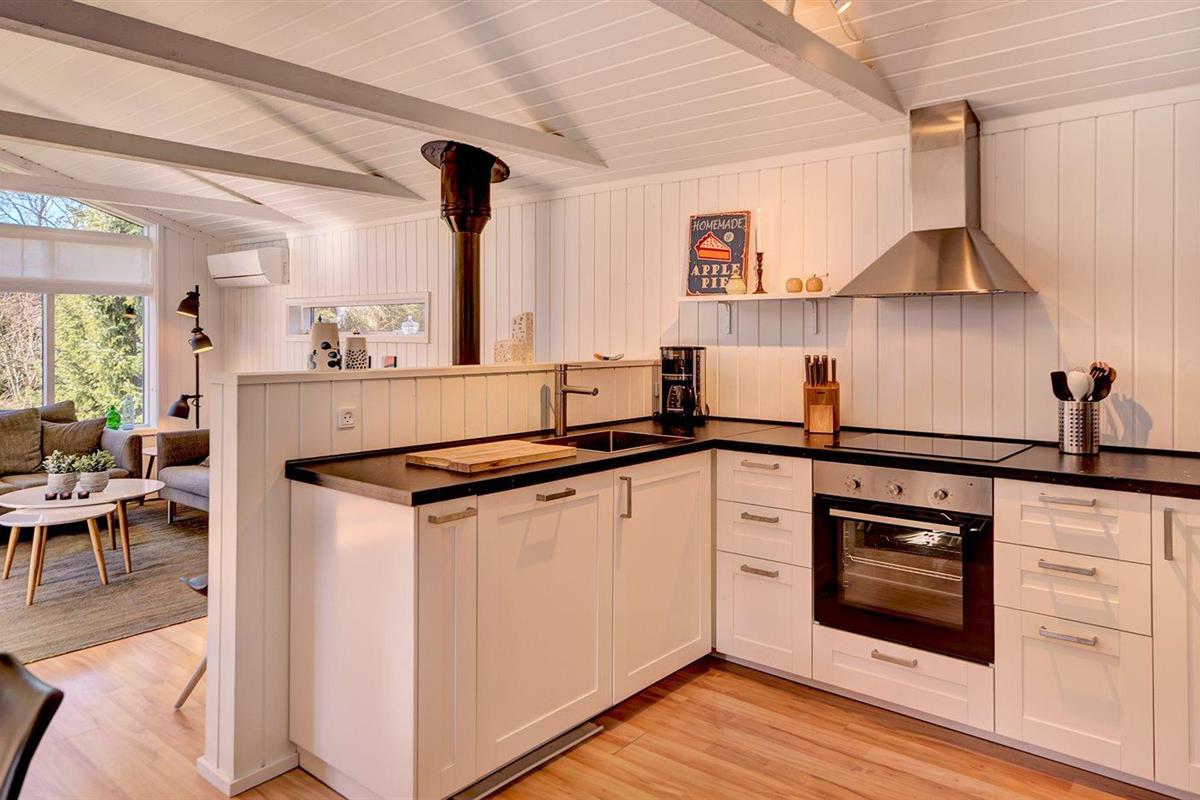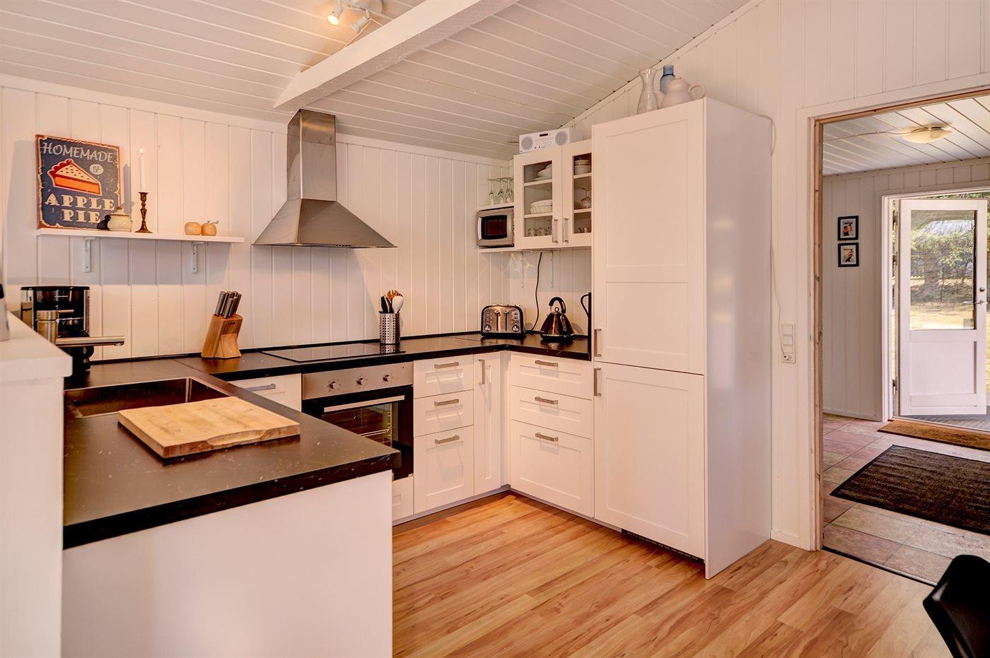 De keuken is uitgerust met koelkast Er is 4 inductiekookplaten, heteluchtoven, magnetron en vaatwasser.