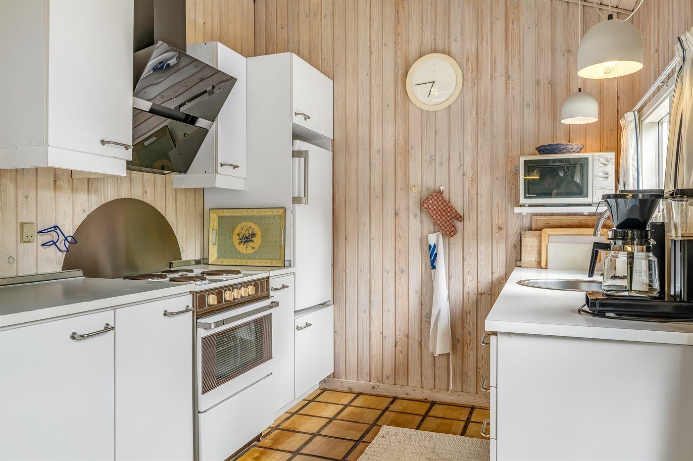 De keuken is uitgerust met koelkast Er is 4 elektrische kookplaten, heteluchtoven, magnetron en vaatwasser.