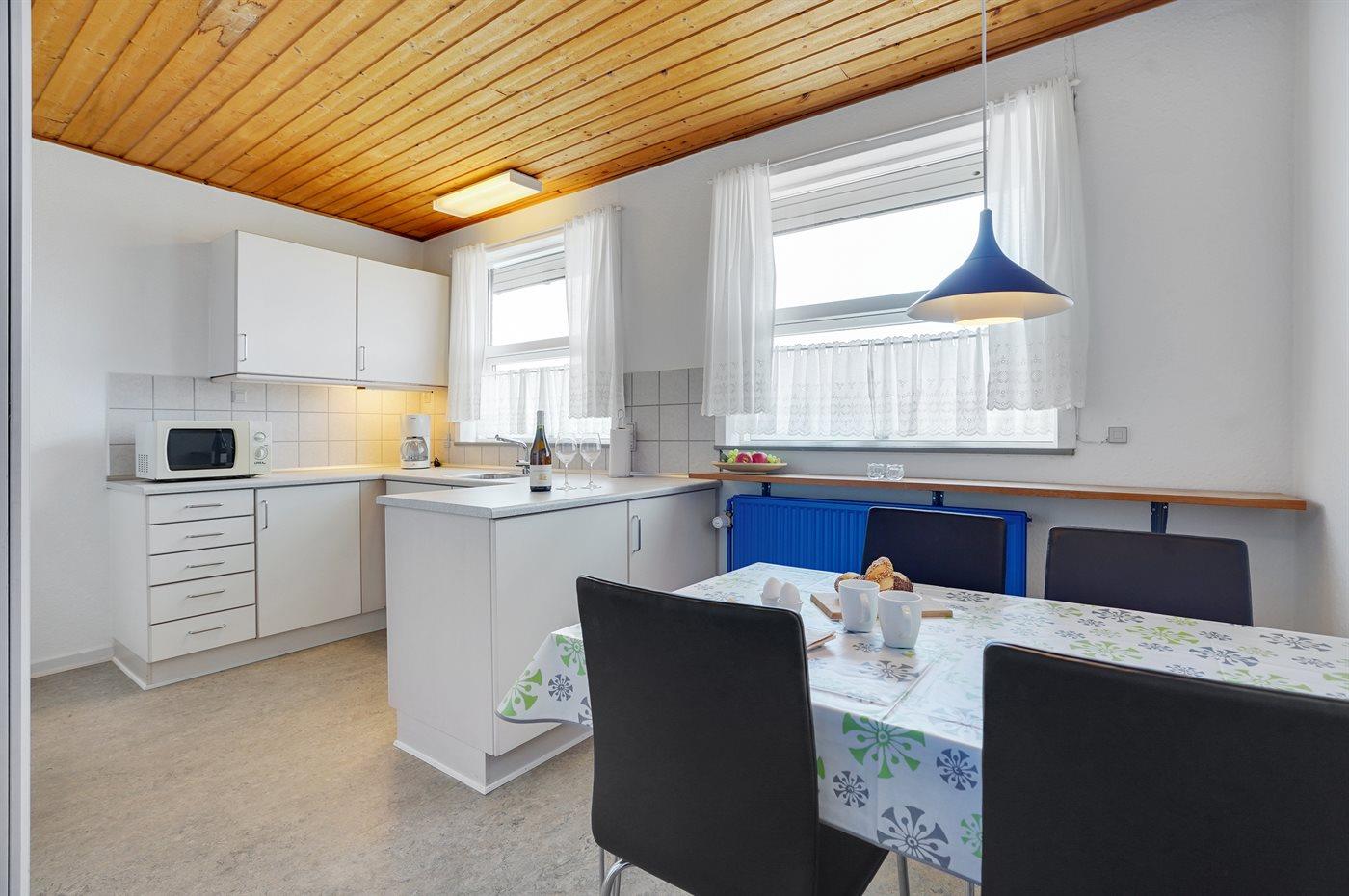 De keuken is uitgerust met koelkast Er is 4 elektrische kookplaten, bakoven, magnetron.