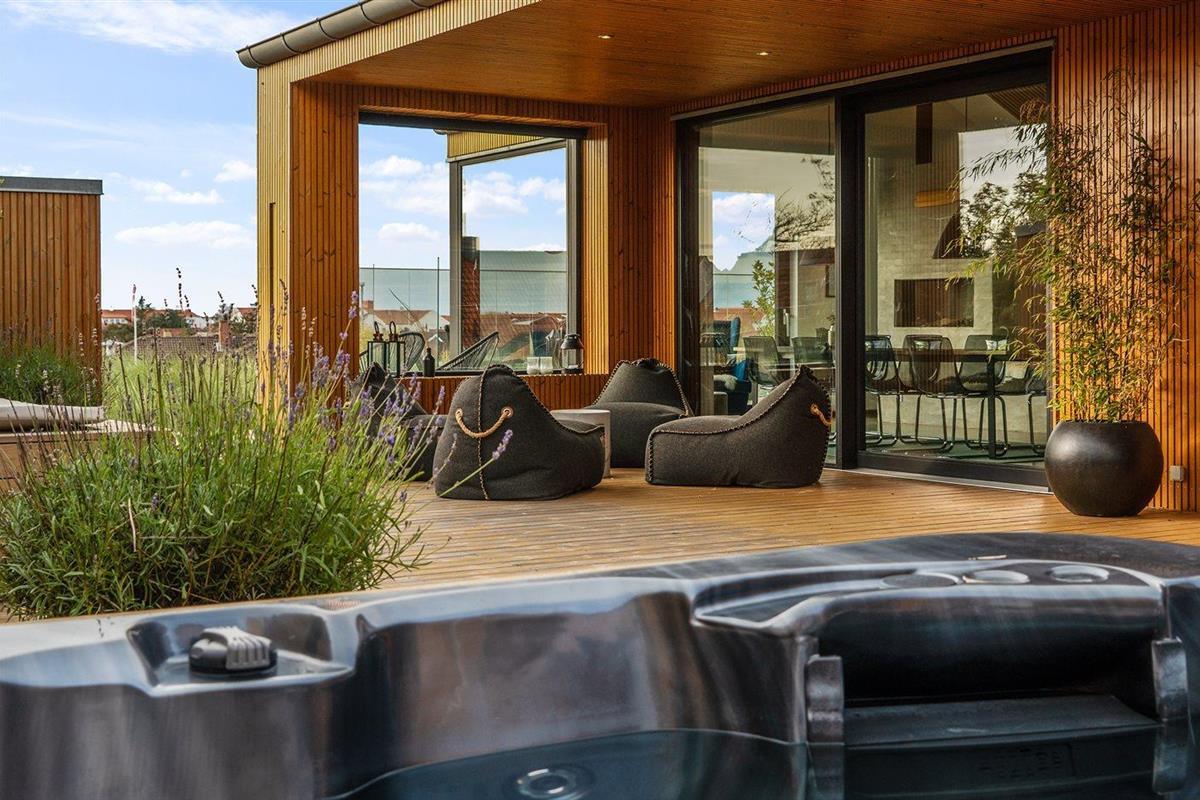 Modern vakantiehuis in Blokhus, dichtbij zee en winkels, met sauna en speelvoorzieningen voor kinderen.