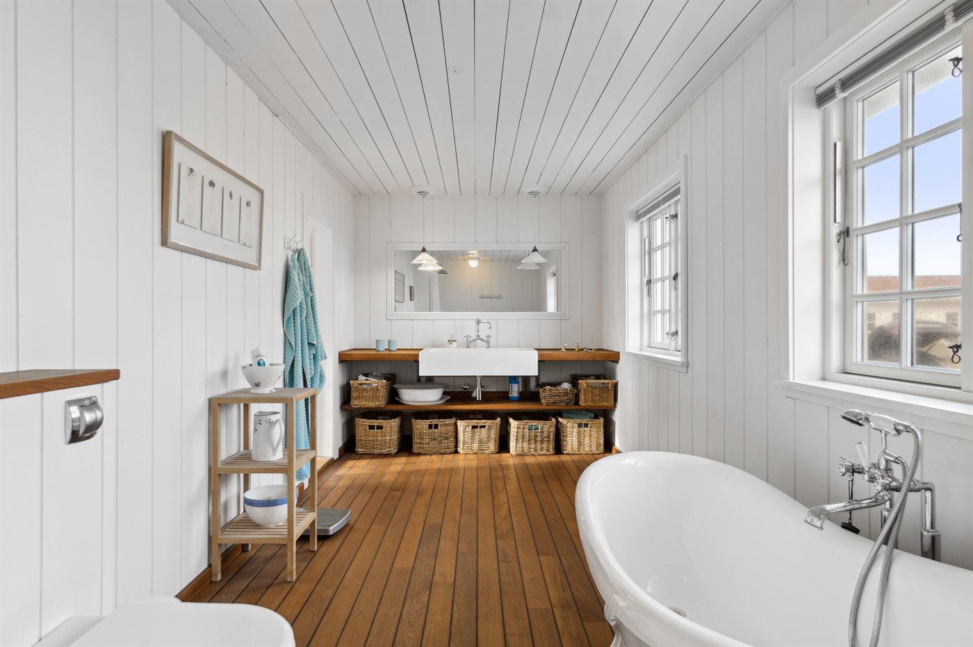 Er is 2 badkamers met douchehok en 3 toiletten, waarvan 1 gastentoilet. Er is vloerverwarming in 2 van de badkamers.. Badkuip.