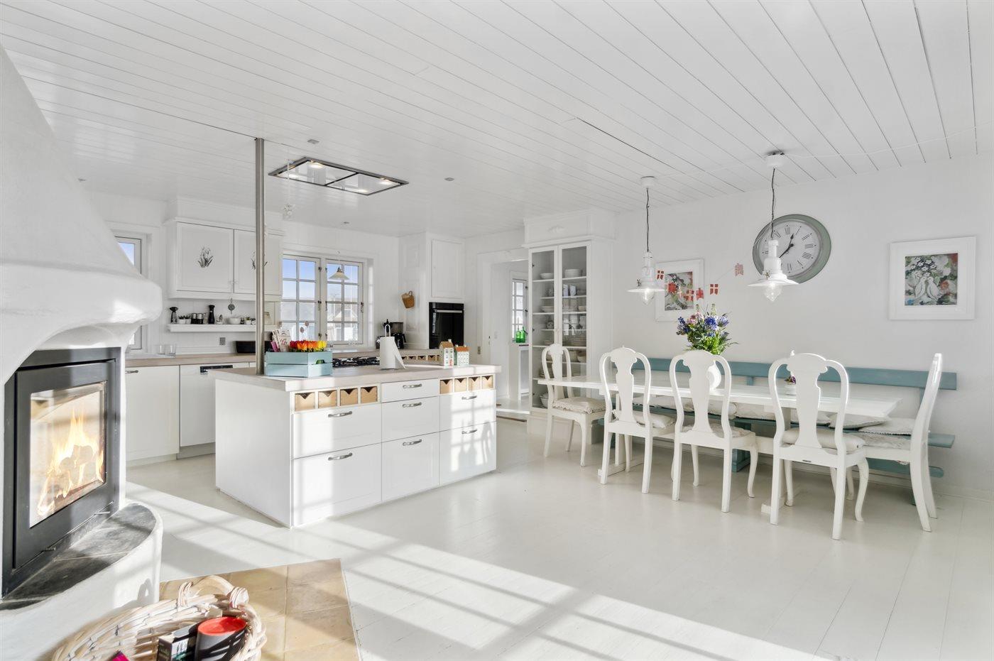 De keuken is uitgerust met amerikaanse koelkast Es is 4 gaspitten, heteluchtoven, magnetron en vaatwasser.