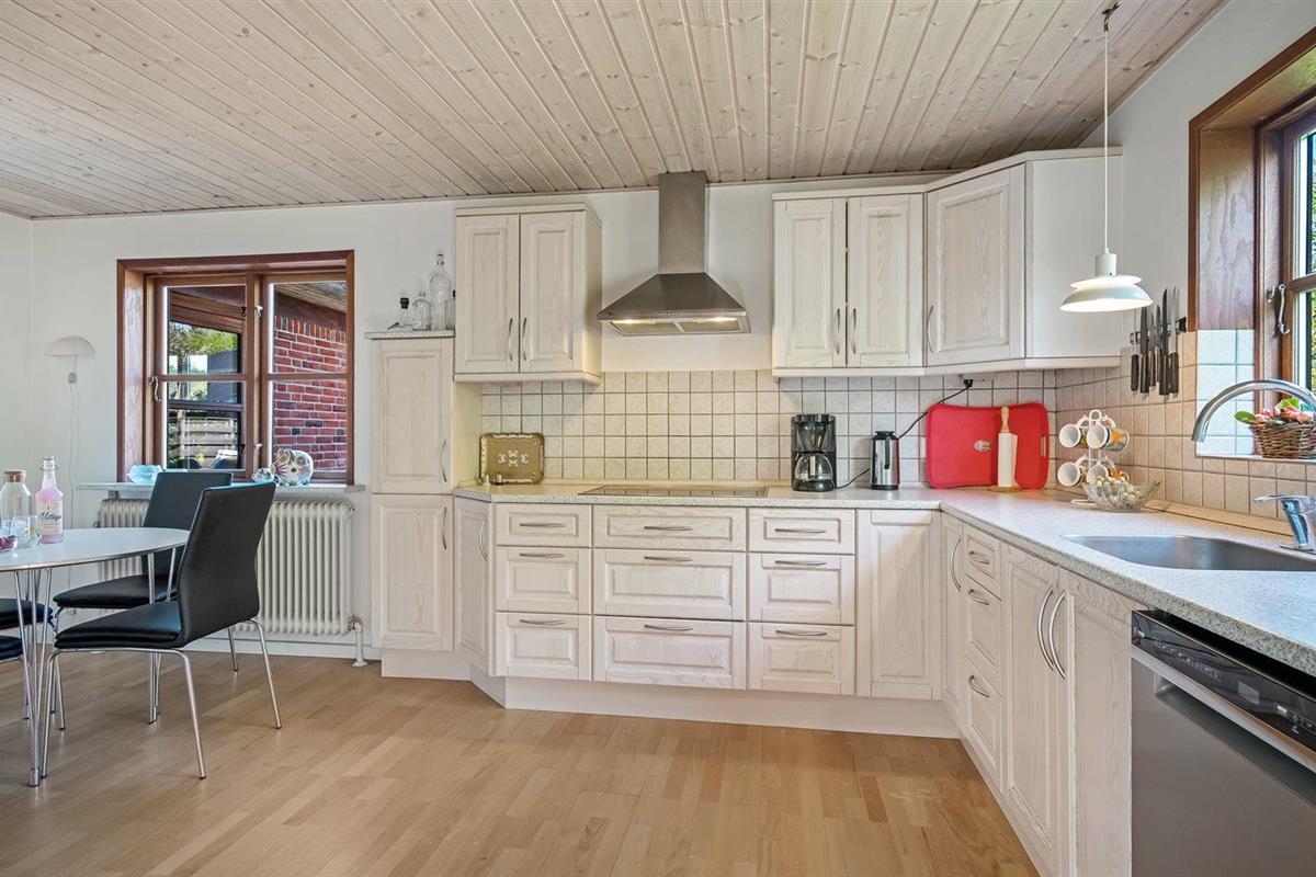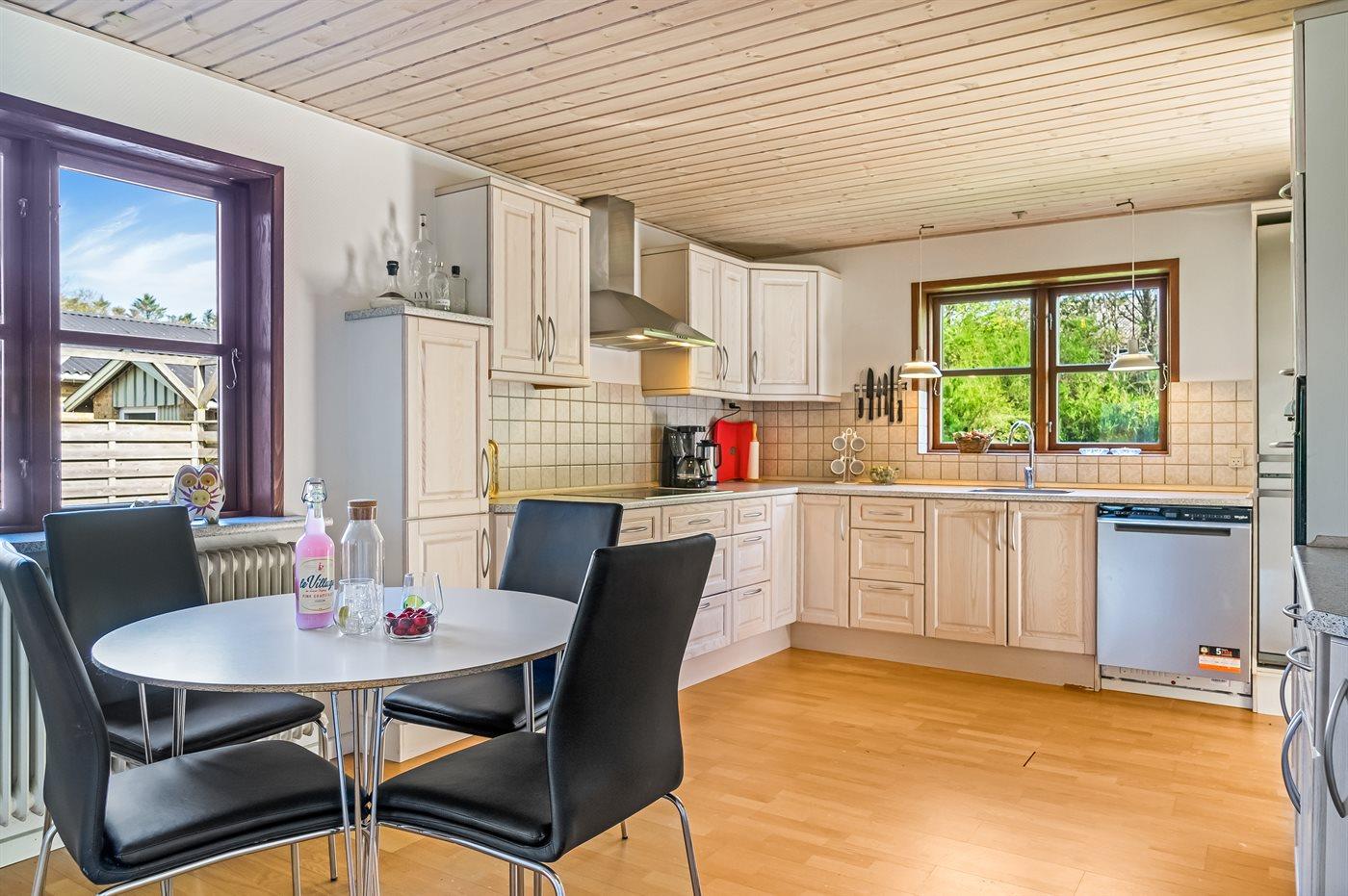 Ruim vakantiehuis in Blokhus met groot terras, moderne keuken en vloerverwarming, ideaal voor gezinnen en huisdieren.