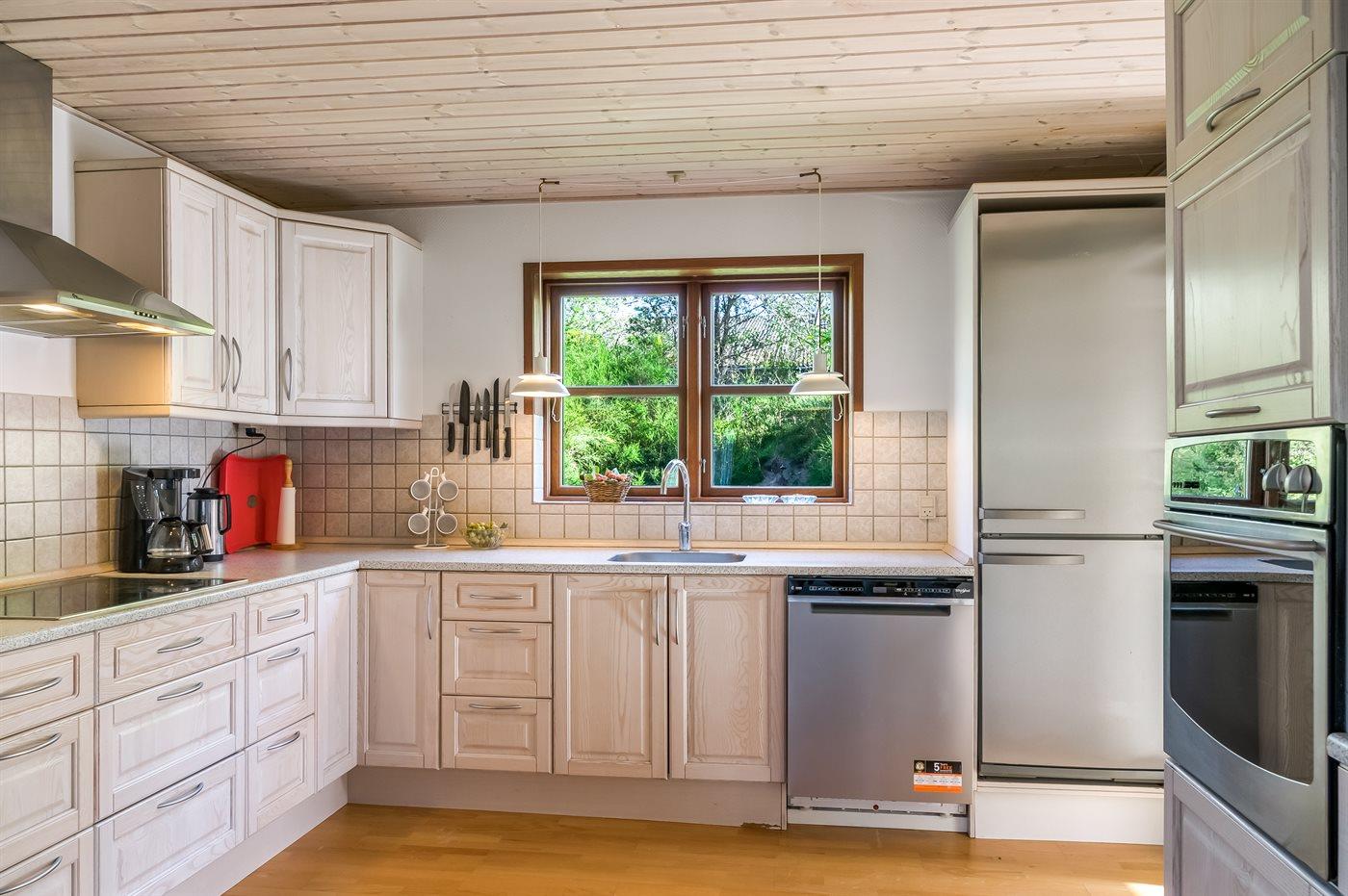 De keuken is uitgerust met koelkast Er zijn 4 keramische kookplaten, heteluchtoven, magnetron en vaatwasser.