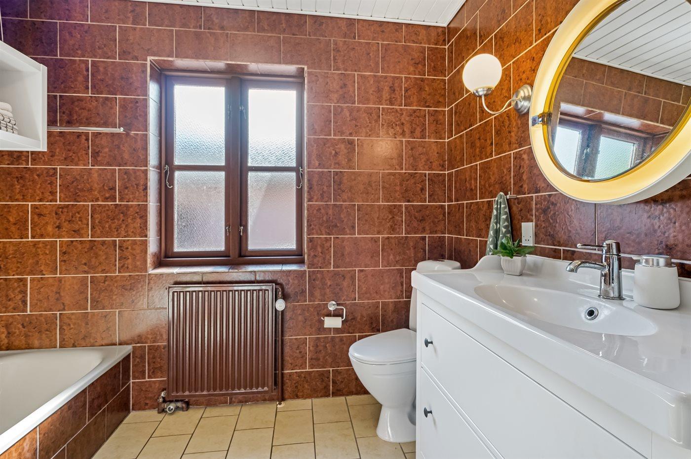 Er is 1 badkamers met vloerverwarming, toilet, douchehok en badkuip.