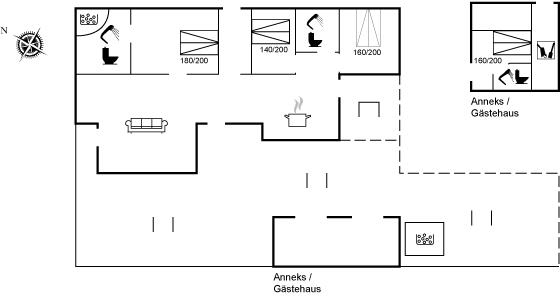 De vakantiewoning is gelegen op een 778 m² groot natuural grond. Afstand tot de zee 100 m. Dichtstbijzijnde winkel 700 m. Er is een golfbaan op een afstand van 3000 m. Bij de vakantiewoning hoort terras. Daarnaast is er een overdekt terras. Tevens heeft u de beschikking over een serre. Gereedschapsruimte. Barbecue. Parkeerplaats bij het huis.