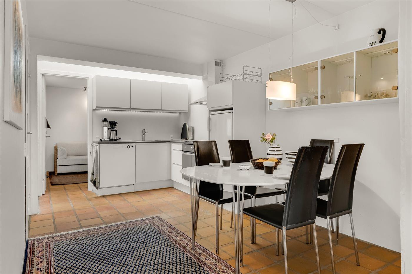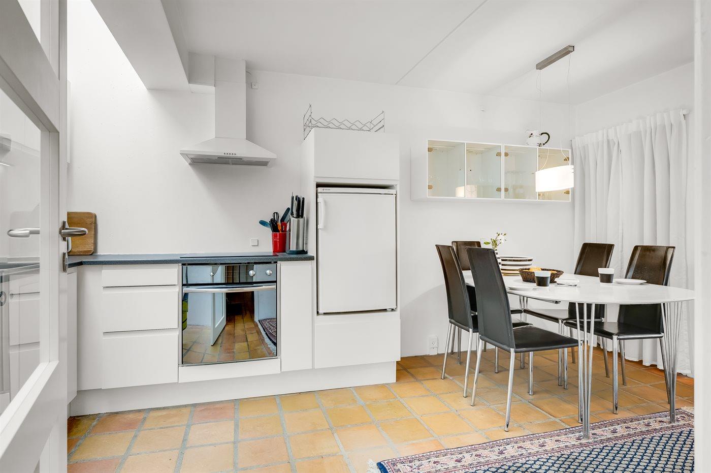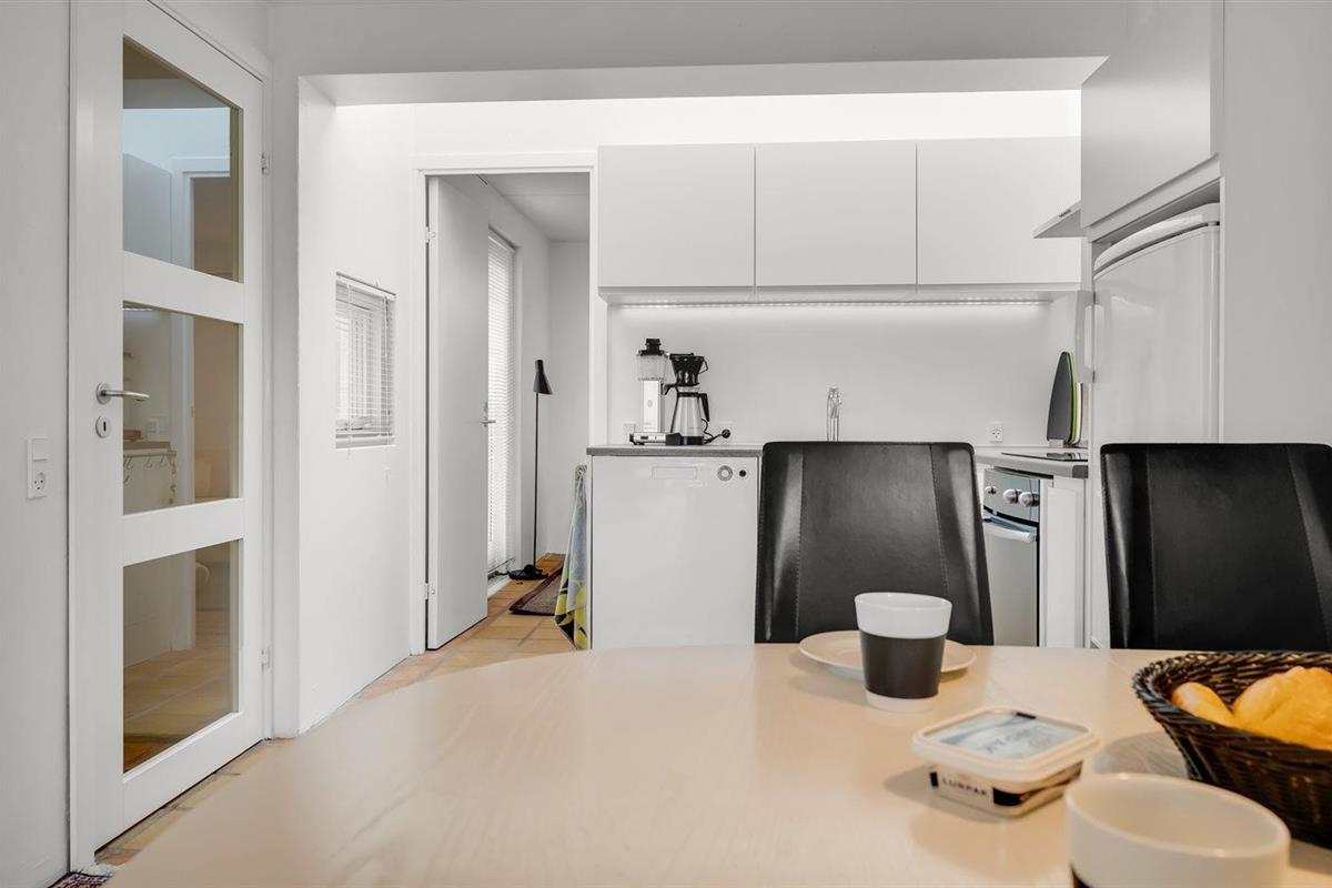 De keuken is uitgerust met koelkast Er is 4 inductiekookplaten, heteluchtoven, magnetron en vaatwasser.