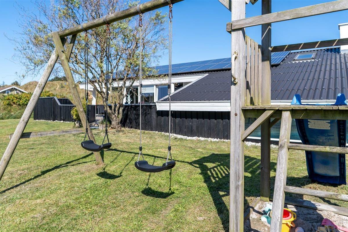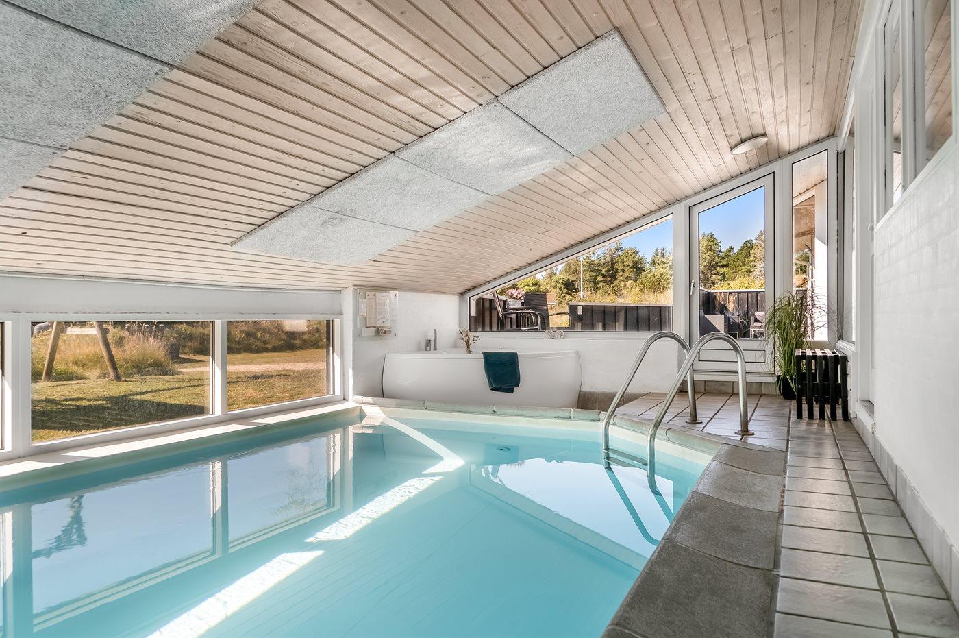 Ruim vakantiehuis met binnenzwembad, bubbels en speelruimte in Blokhus, ideaal voor gezinnen en huisdieren.