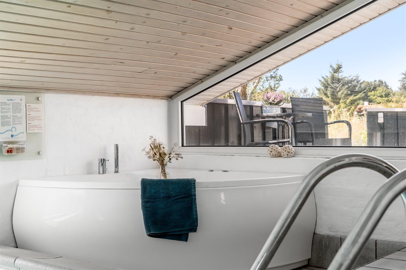 Het binnenbubbelbad (vulwater) biedt ontspanning aan 2 personen.