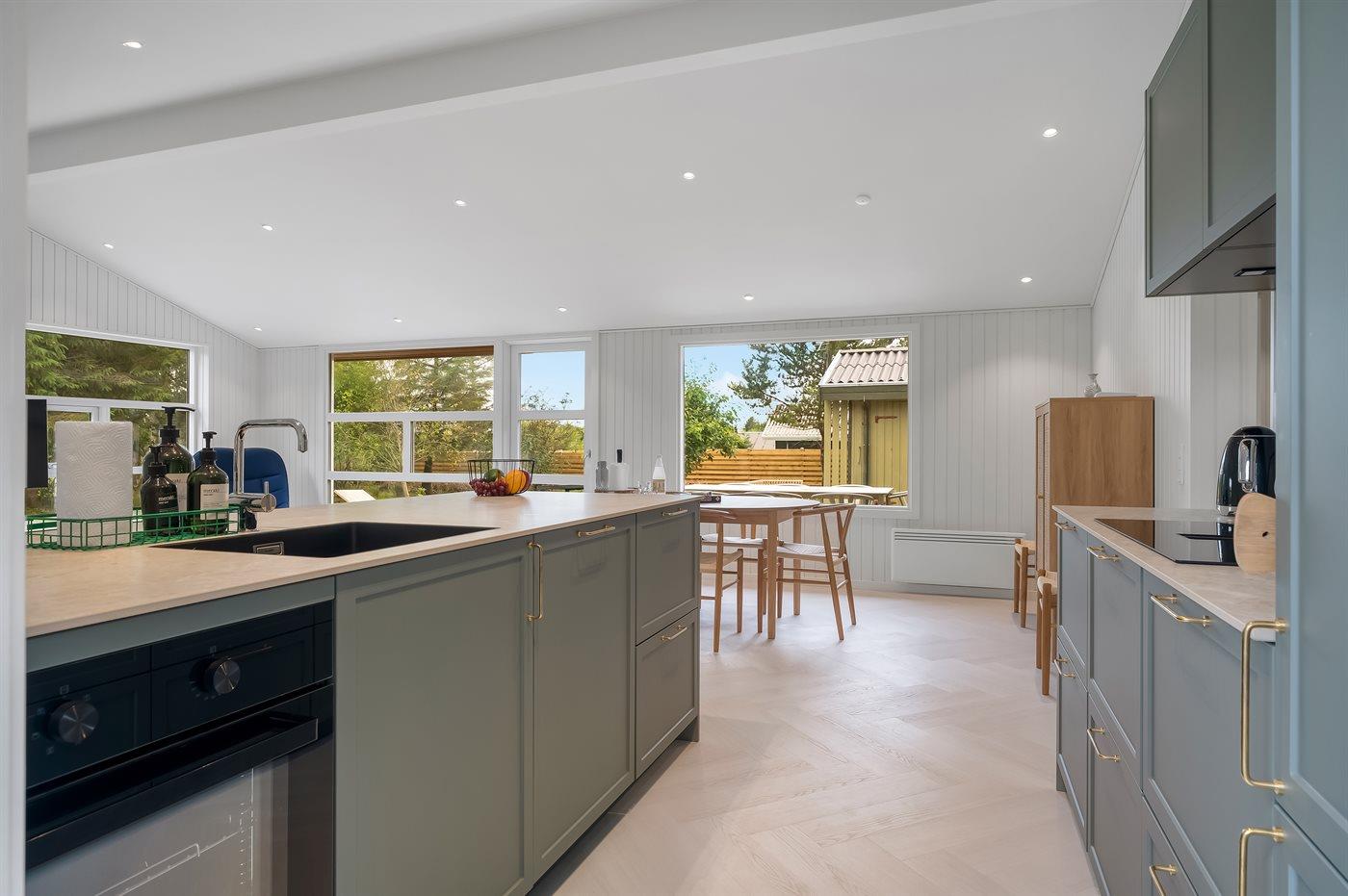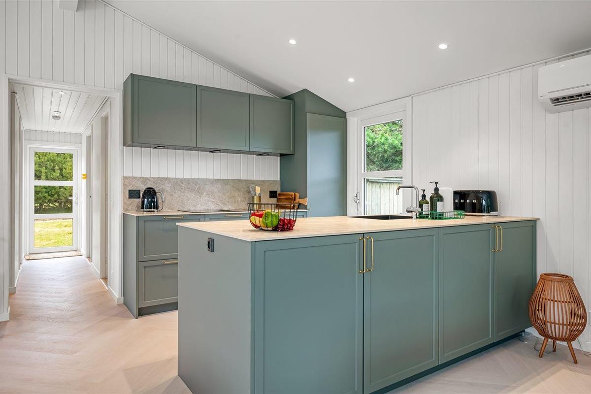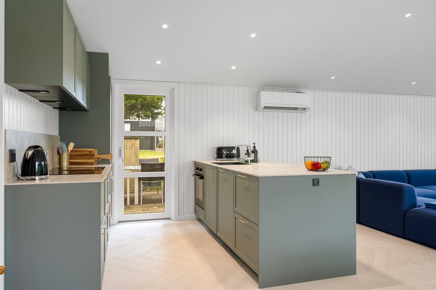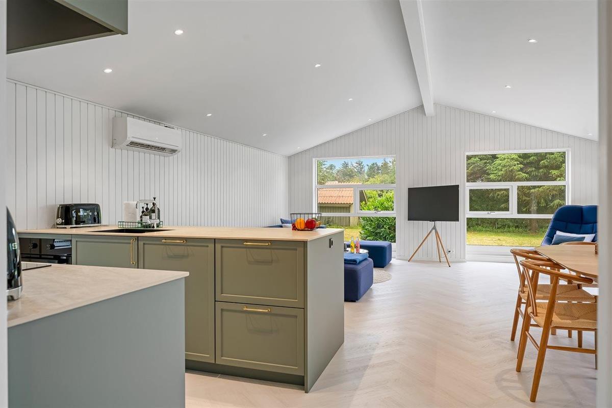 Modern vakantiehuis in Blokhus met 3 slaapkamers, 2 badkamers, terras en energiezuinige warmtepomp.
