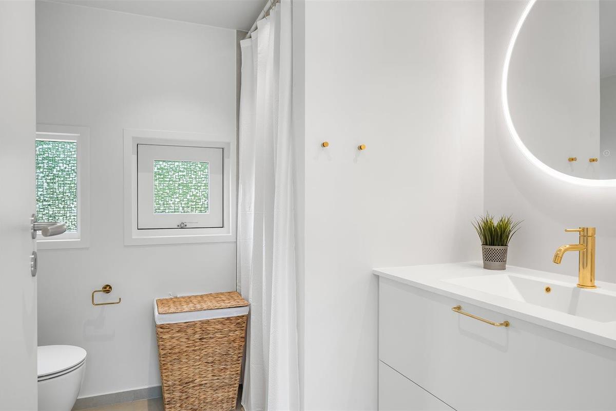Er is 2 badkamers met douchehok en 2 toiletten. Er is vloerverwarming in 2 van de badkamers.