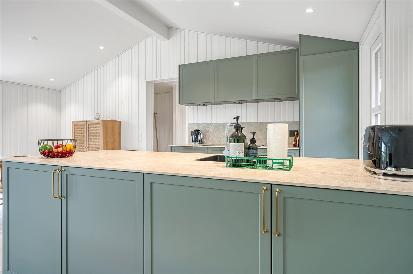 De keuken is uitgerust met koelkast Er is 4 inductiekookplaten, heteluchtoven, magnetron en vaatwasser.