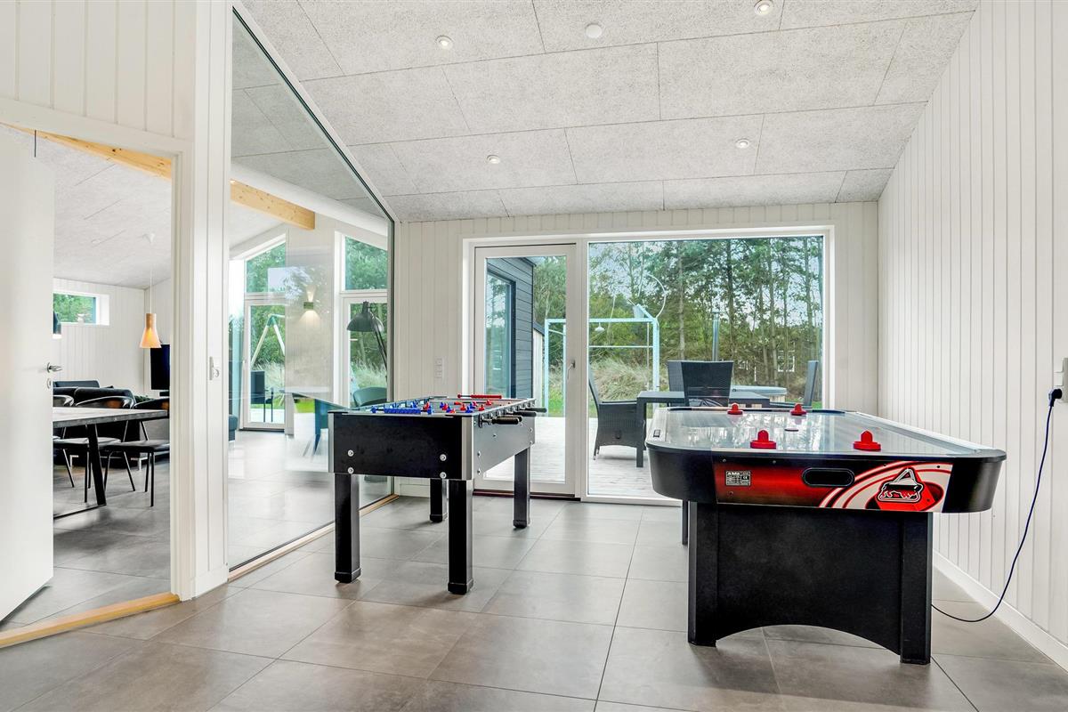 Modern vakantiehuis nabij Blokhus strand met sauna, activiteitenruimte en ruime tuin voor het hele gezin.