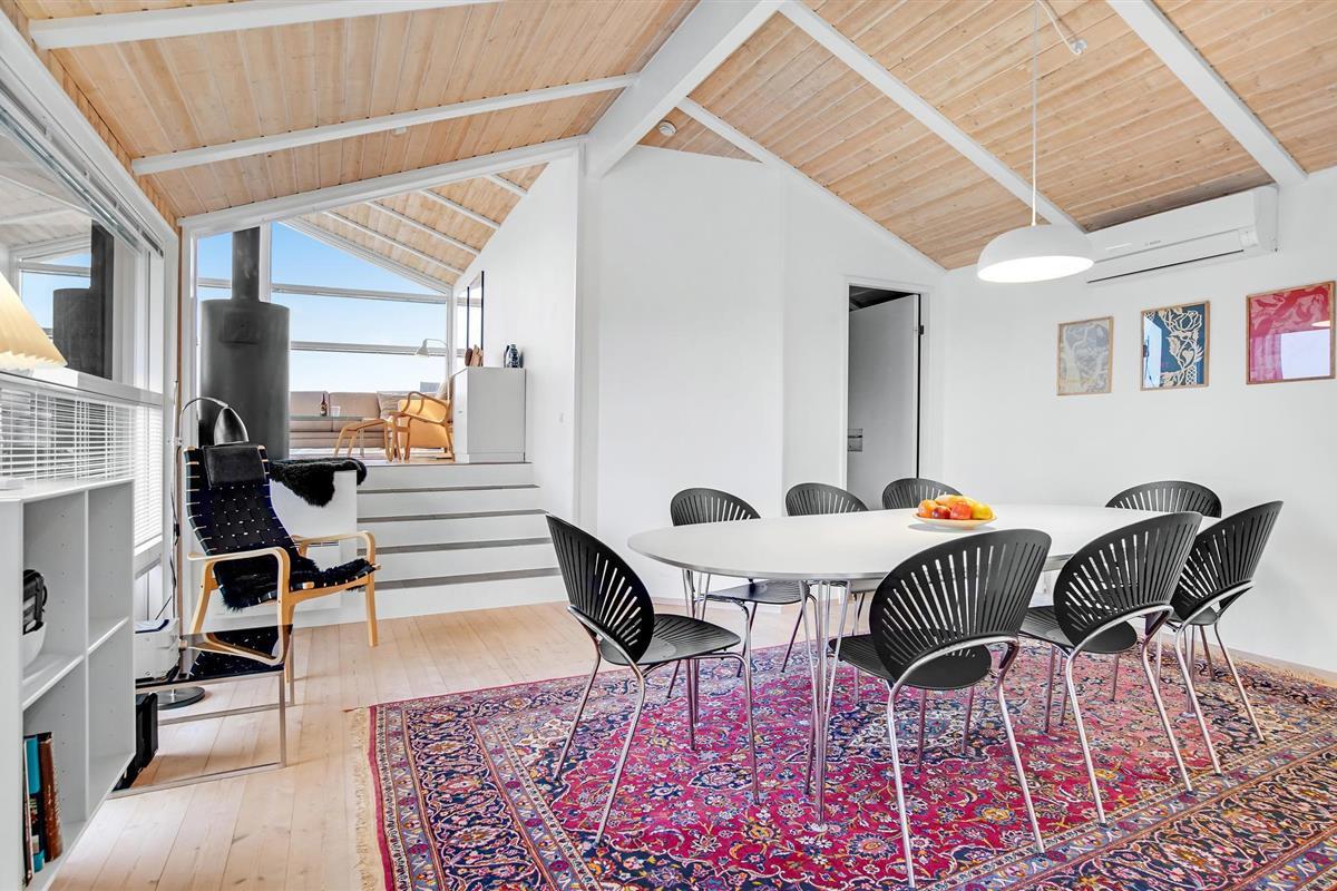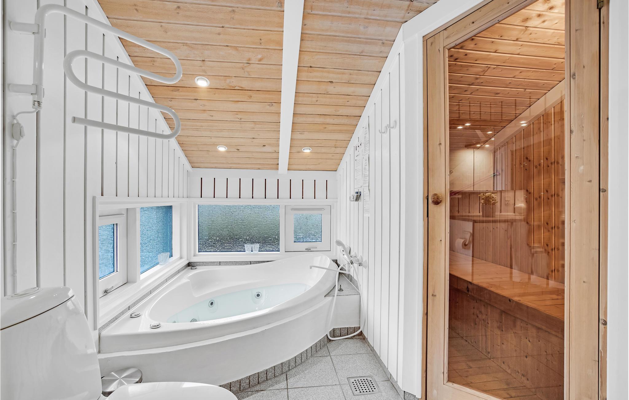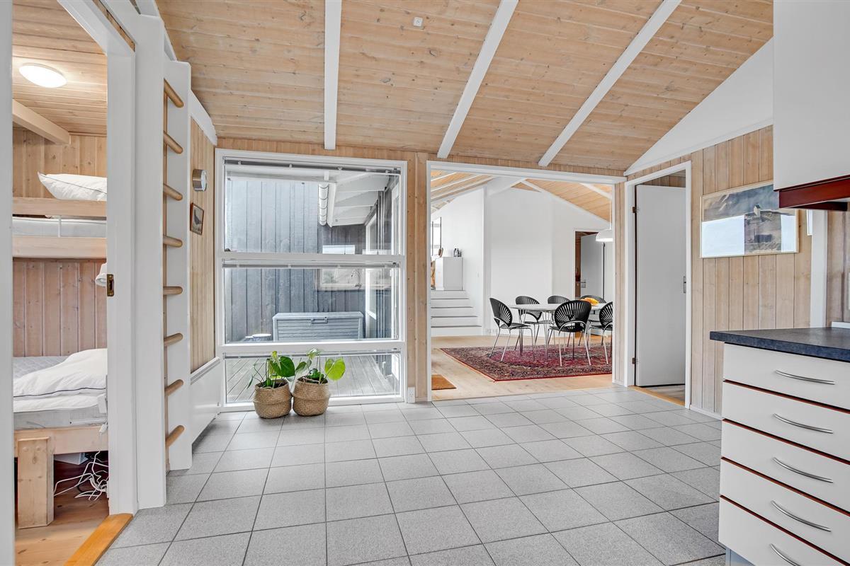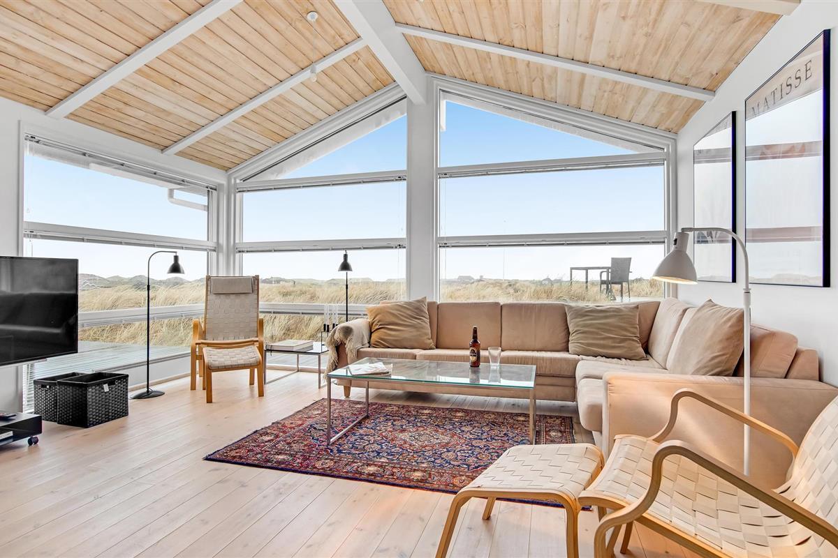 Hoog in de duinen gelegen biedt dit huis u uitzicht op de ruisende Noordzee. Het biedt levendige slaapkamers, een grote woonkamer en een lichtovergoten salon. De terrassen nodigen u uit om te genieten van de zonsondergang en het verhoogde terras met buitenspa biedt u een plek voor uw welverdiende ontspanning. Het huis is naar wens ingericht, zodat u optimaal van uw vakantie kunt genieten. Op een paar km afstand vindt u geweldige mogelijkheden zoals een golfbaan, vismeer, Faarup Sommerland, Blokhus Gateway en natuurlijk vooral een van de mooiste zandstranden van Noord-Europa.