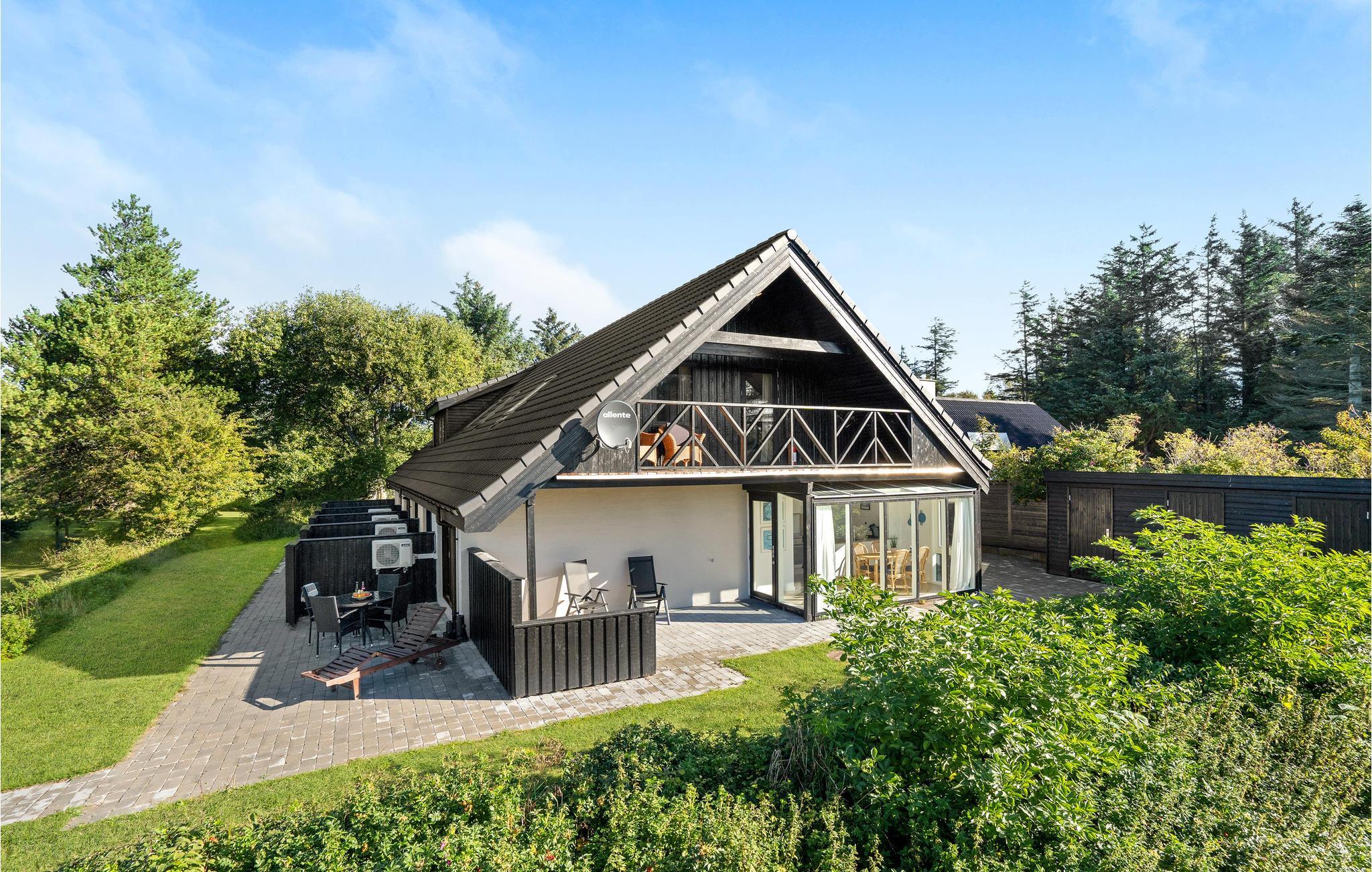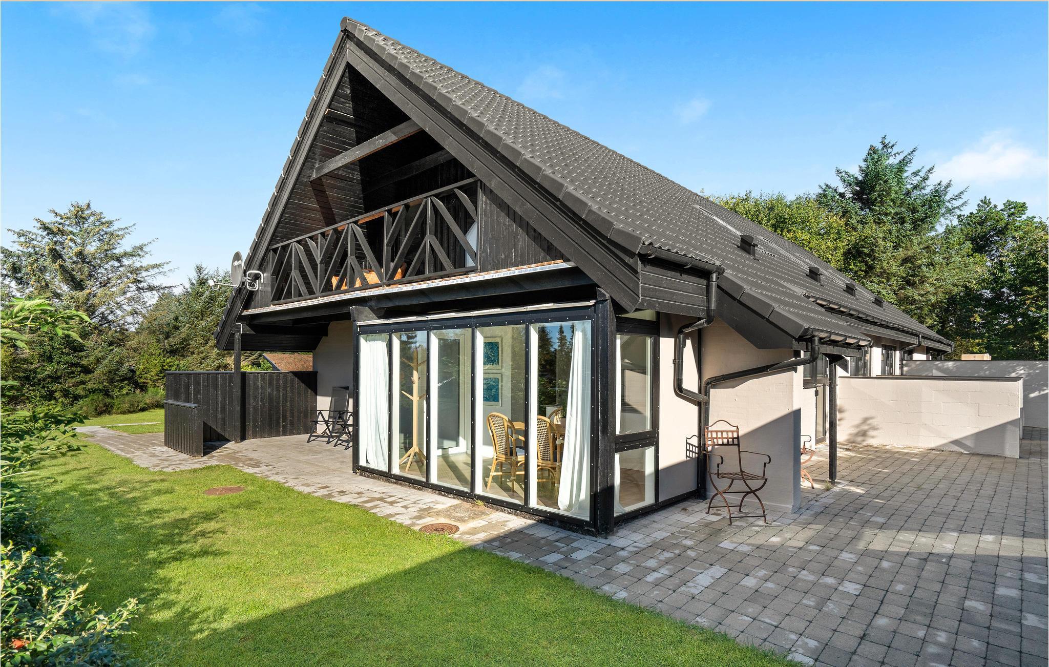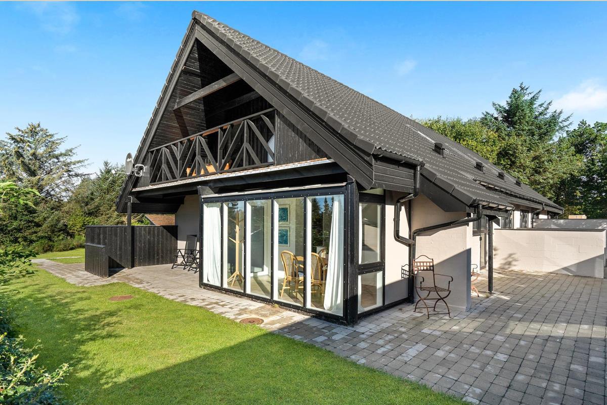 Modern hoekhuis met serre, balkon en tuin nabij zee in Blokhus, perfect voor een ontspannen vakantie.