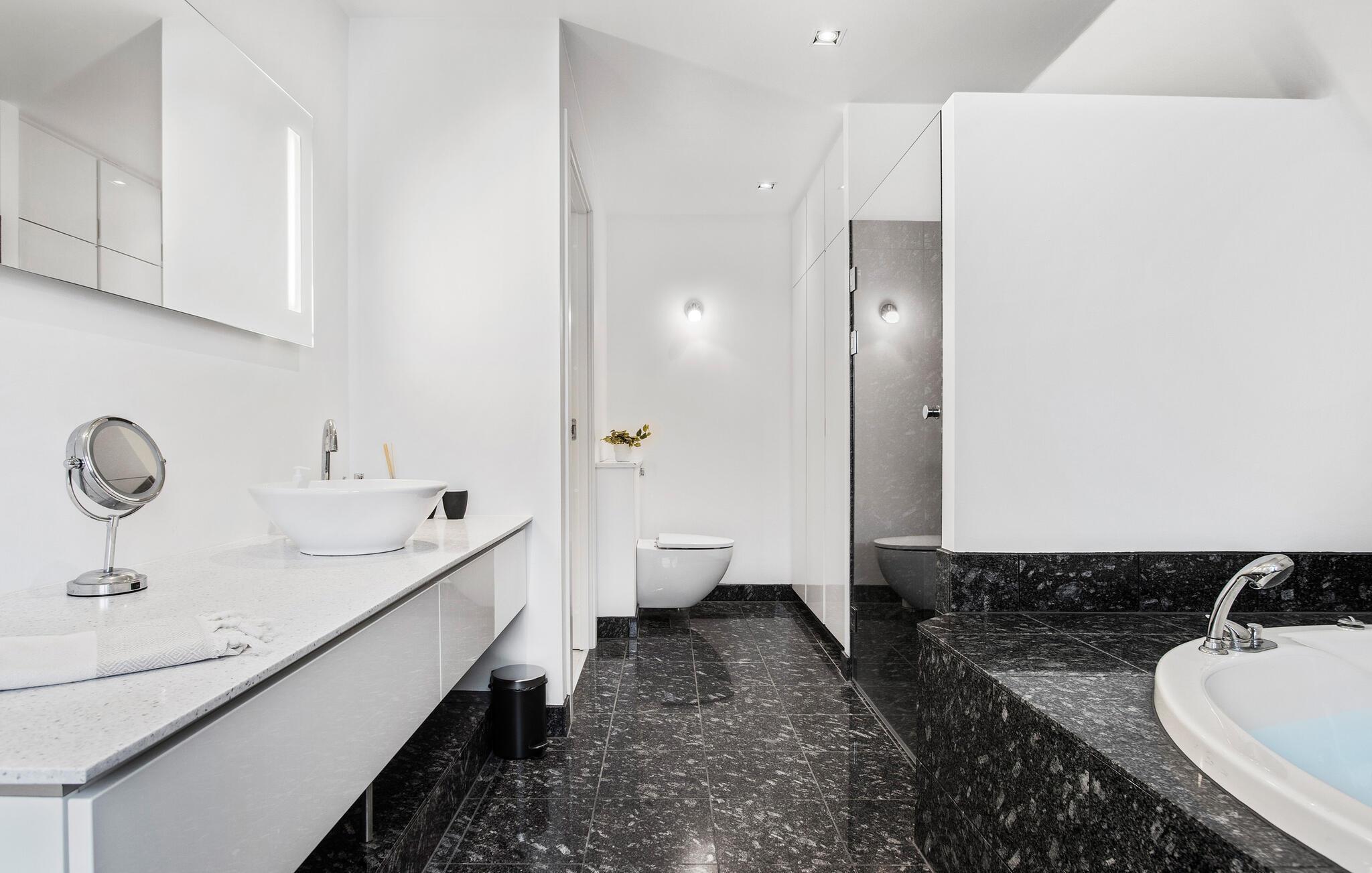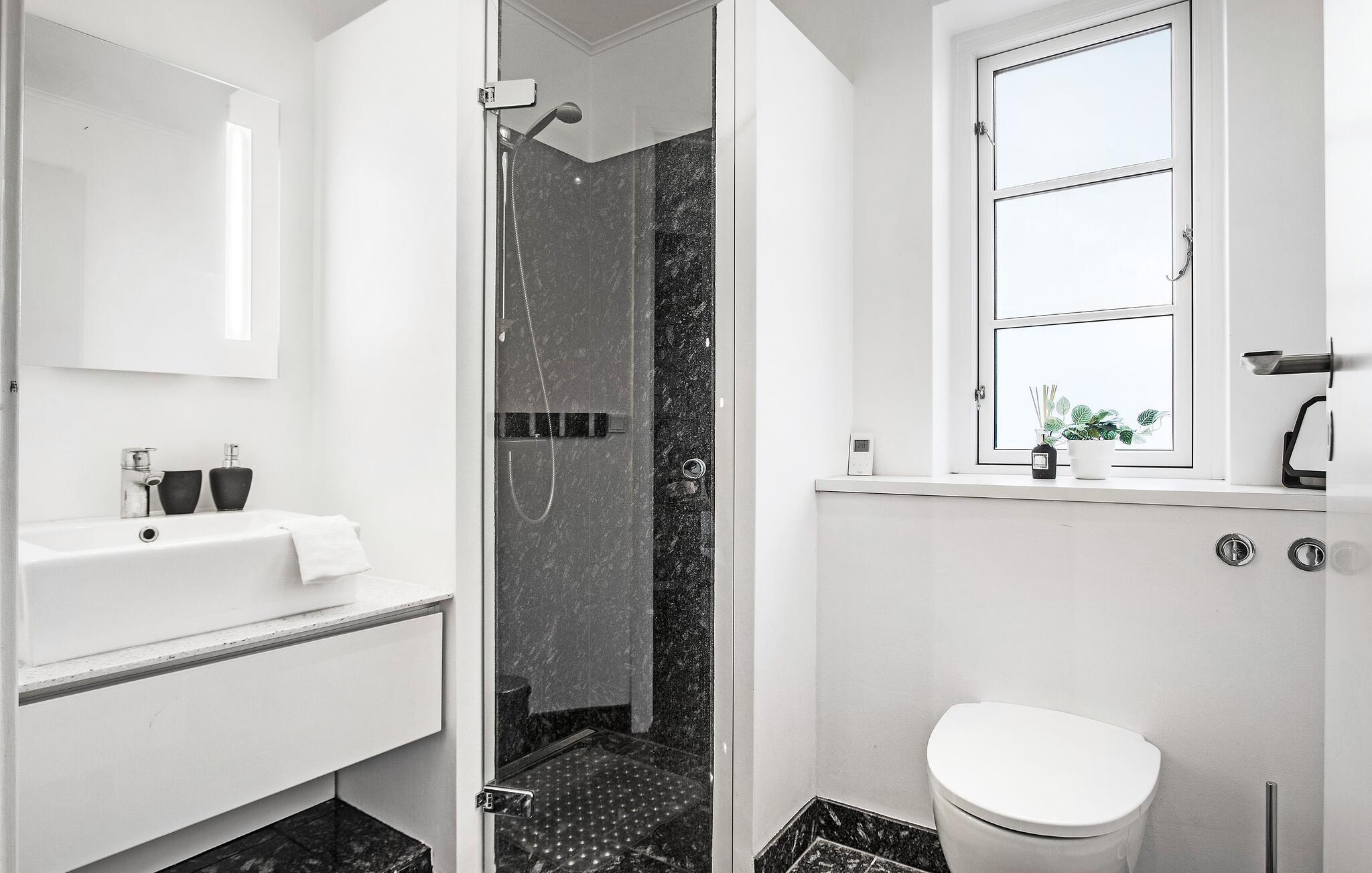 Badkamer (nr. 1) - Toilet: warm en koud water. Douche