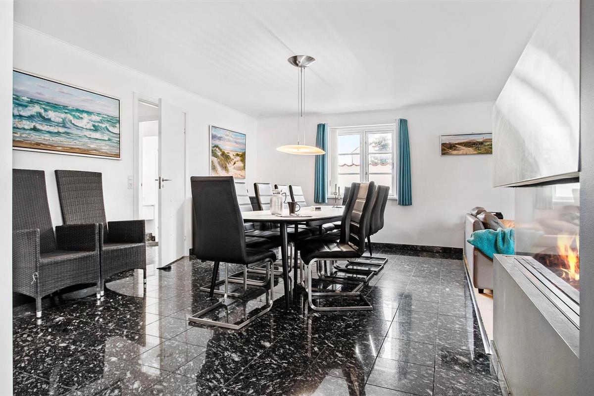 Verheug je op dit grote bakstenen huis in het centrum van Blokhus met een omheinde tuin. Geniet binnen van het mooie samenspel van lichtgekleurde muren met donkere stenen vloeren of mooie houten vloeren en voel je thuis in de comfortabele kamers. De grote en zeer goed uitgeruste keuken, met veel keukenapparatuur, maakt koken een fluitje van een cent. De gezellige sfeer van de woonkamer, die wordt gekenmerkt door de gashaard, nodigt uit tot gezellige uurtjes ontspannen en relaxen.