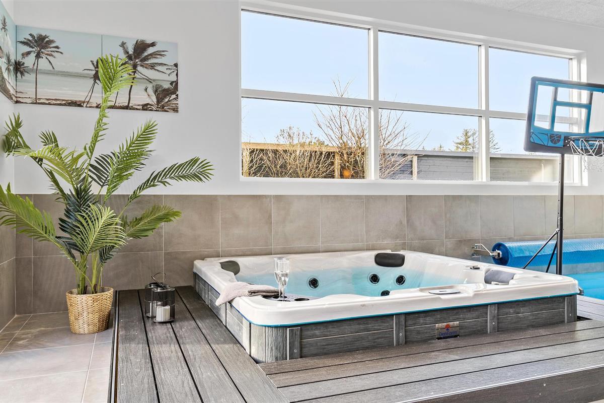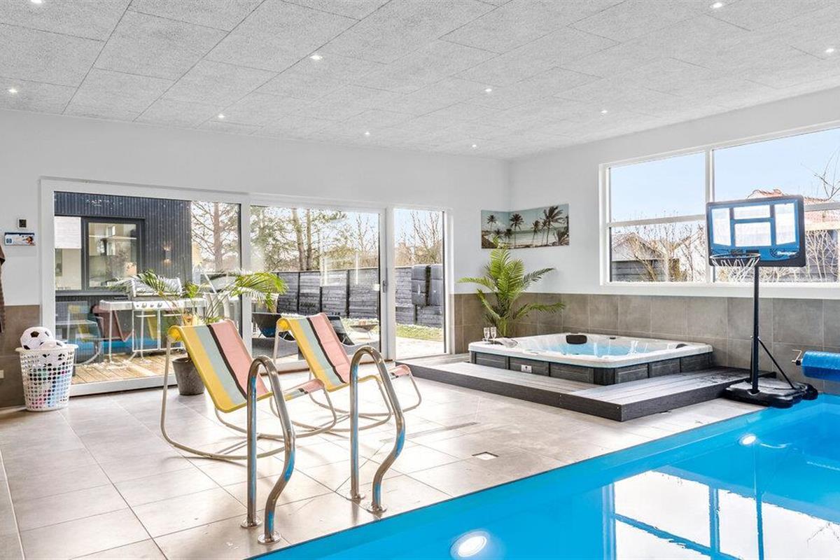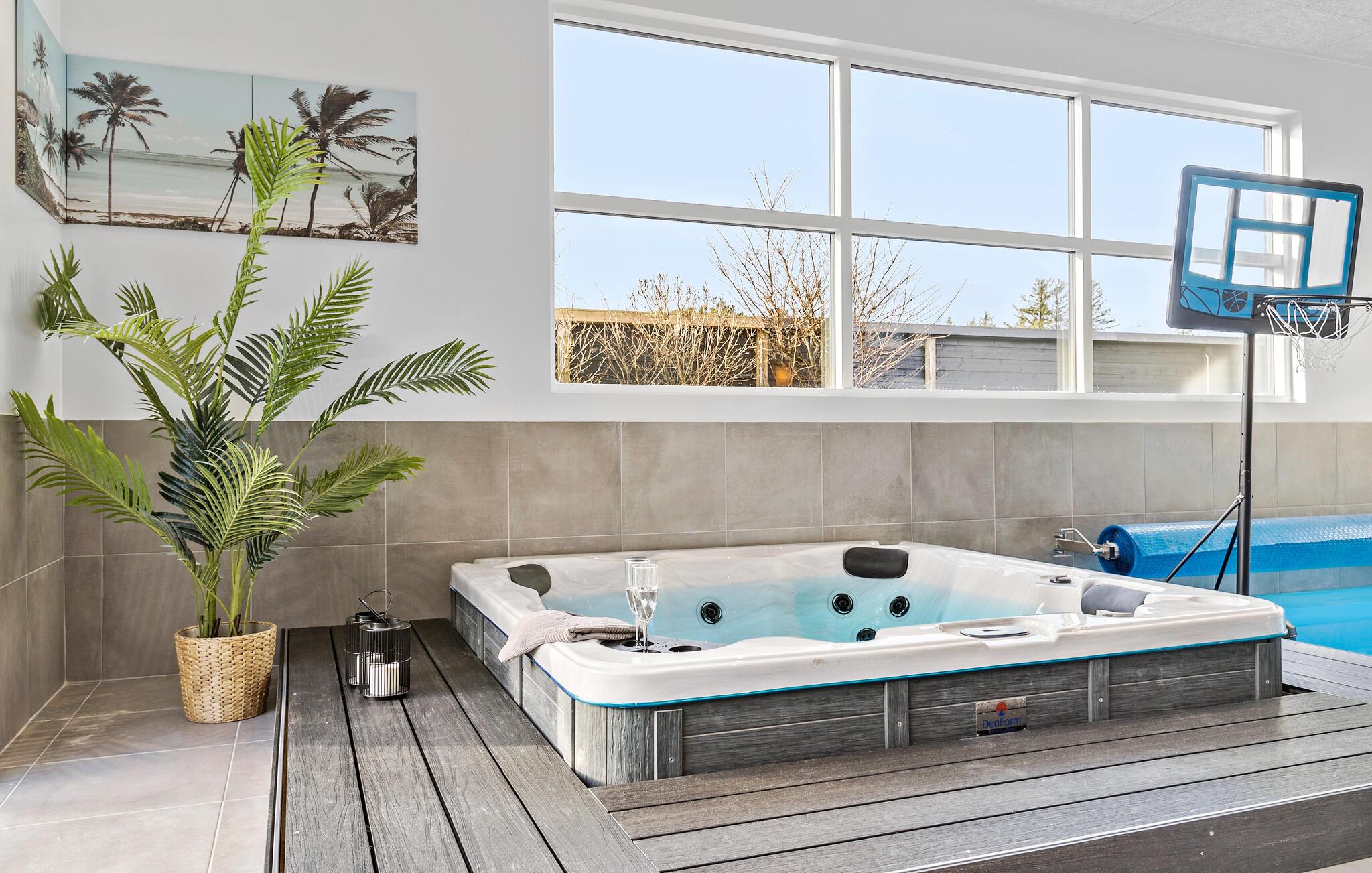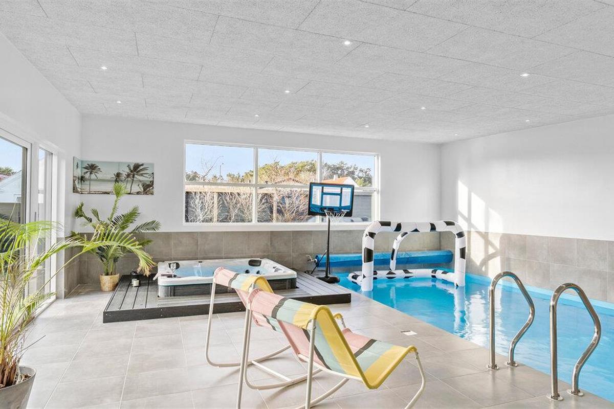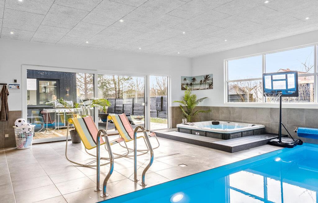 Geniet van comfort en luxe in dit ruime vakantiehuis met binnenzwembad en wellnessfaciliteiten in Blokhus.
