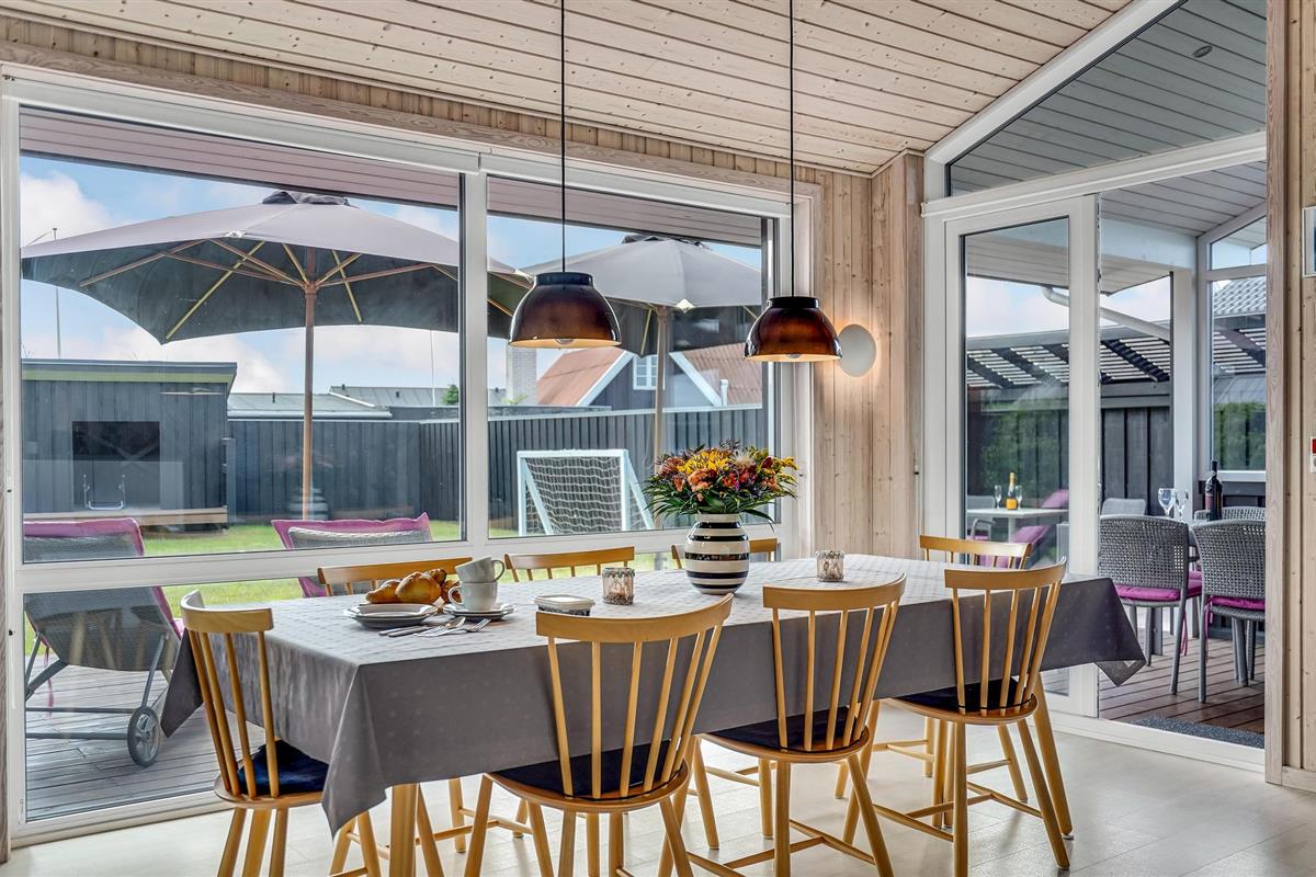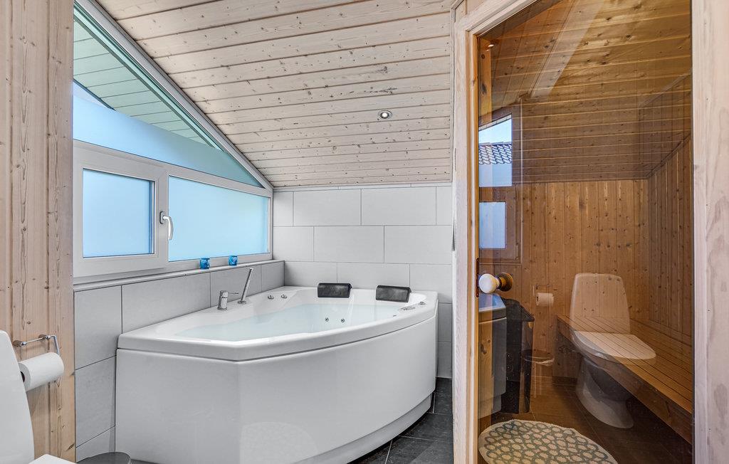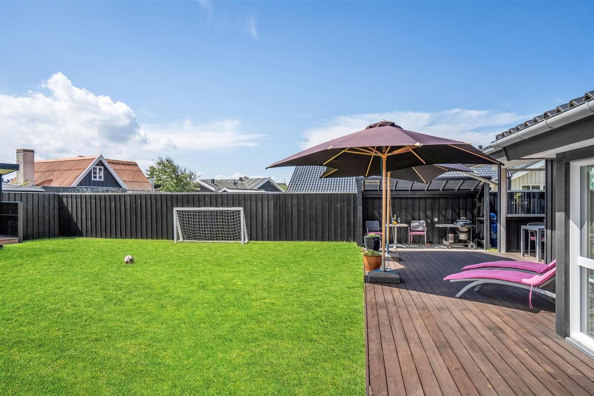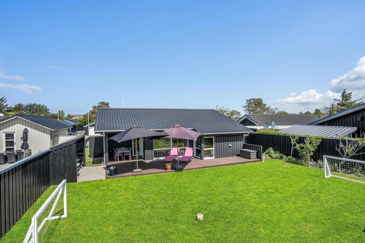 Geniet van een stijlvol vakantiehuis in Blokhus met sauna, whirlpool en tuin dichtbij het strand.