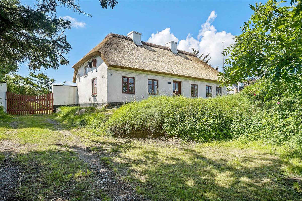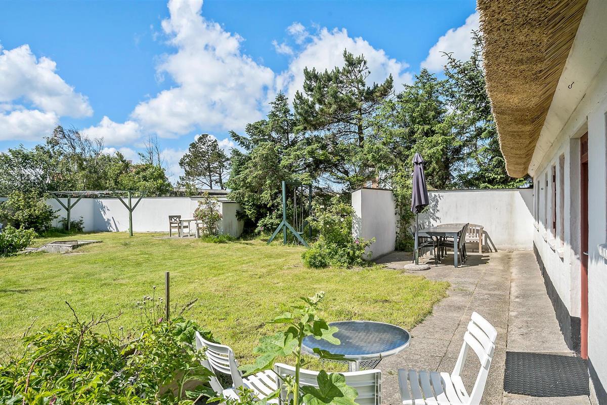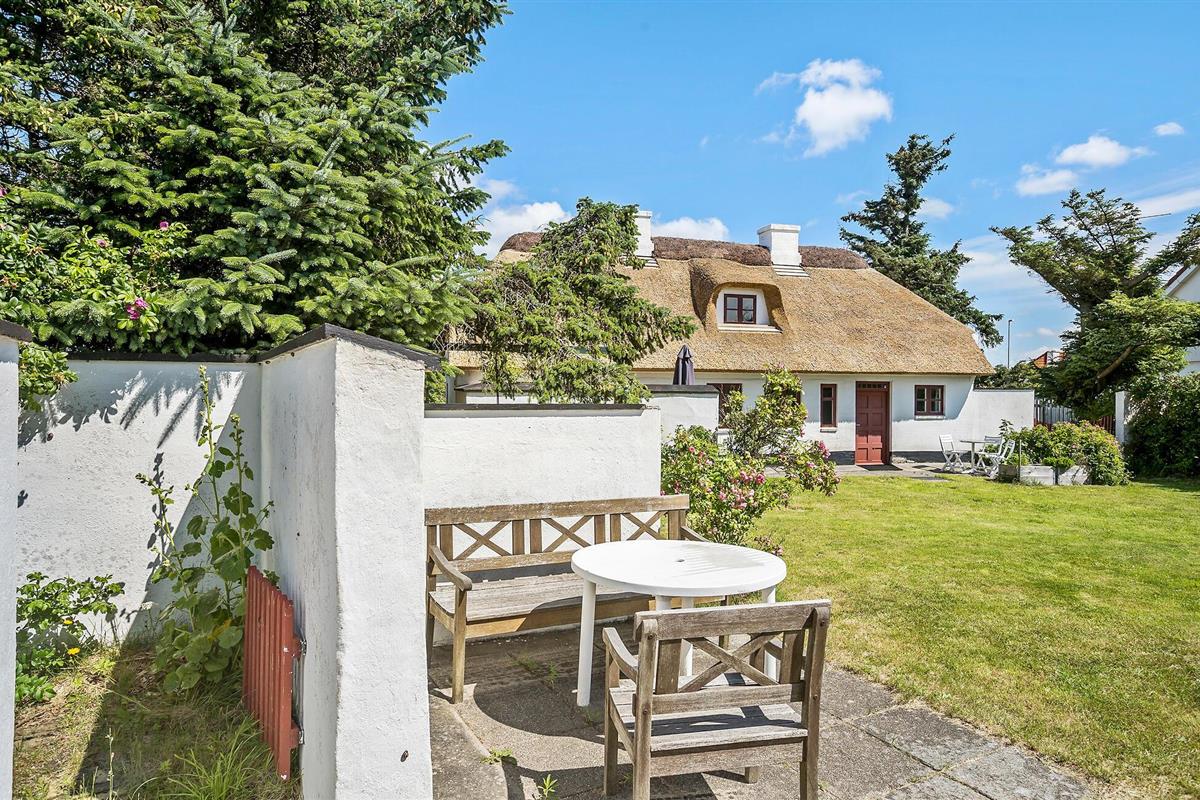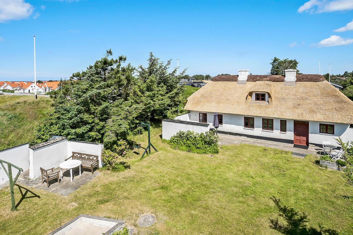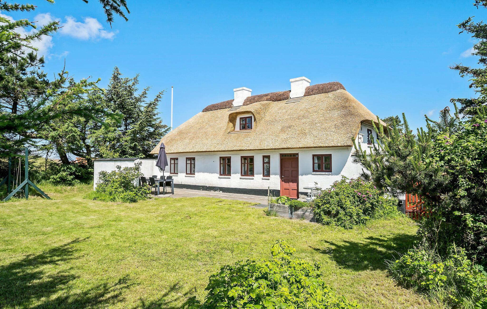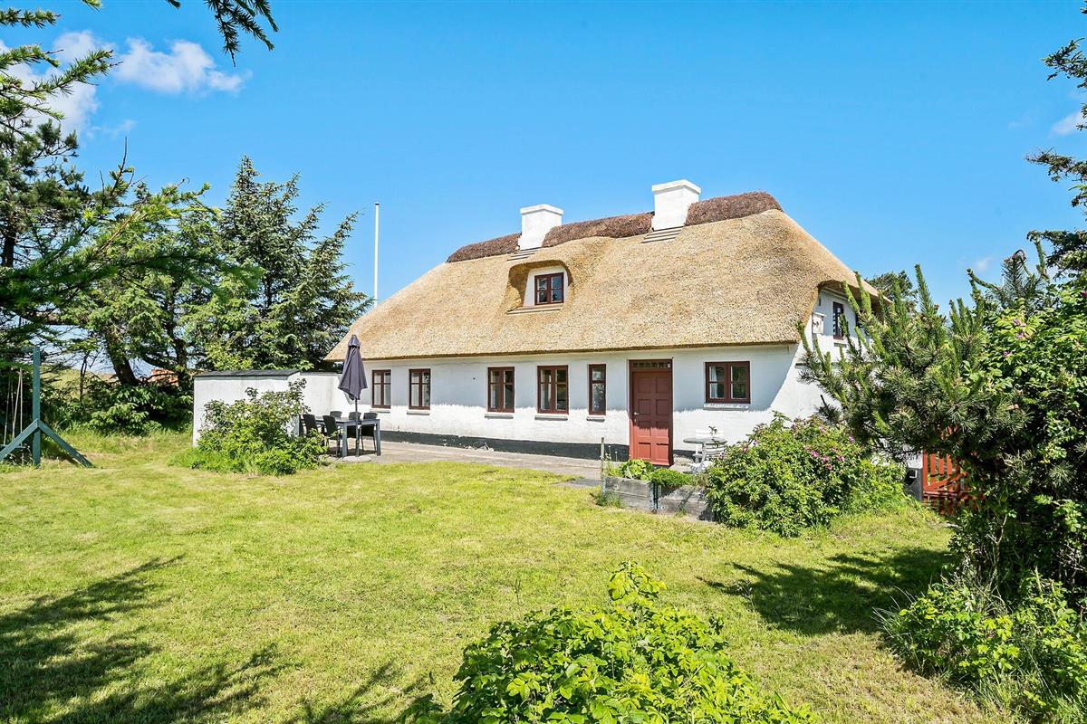 Charmant rieten vakantiehuis in Blokhus, dichtbij strand en familieplezier, met gezellige houtkachel en ruime tuin.