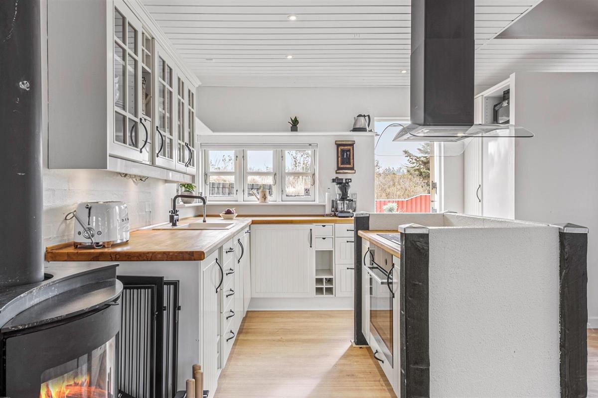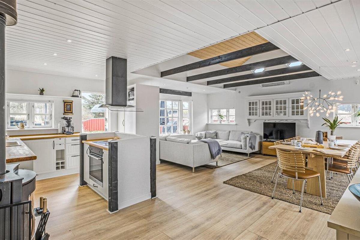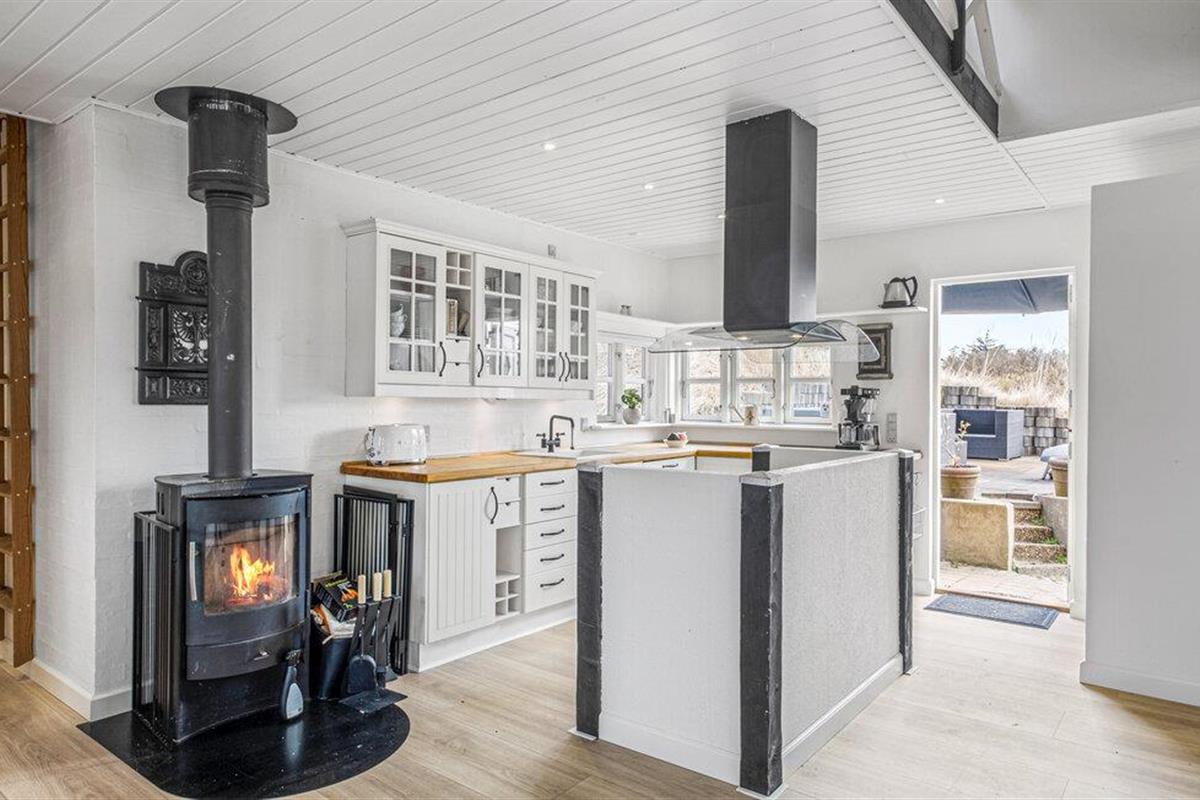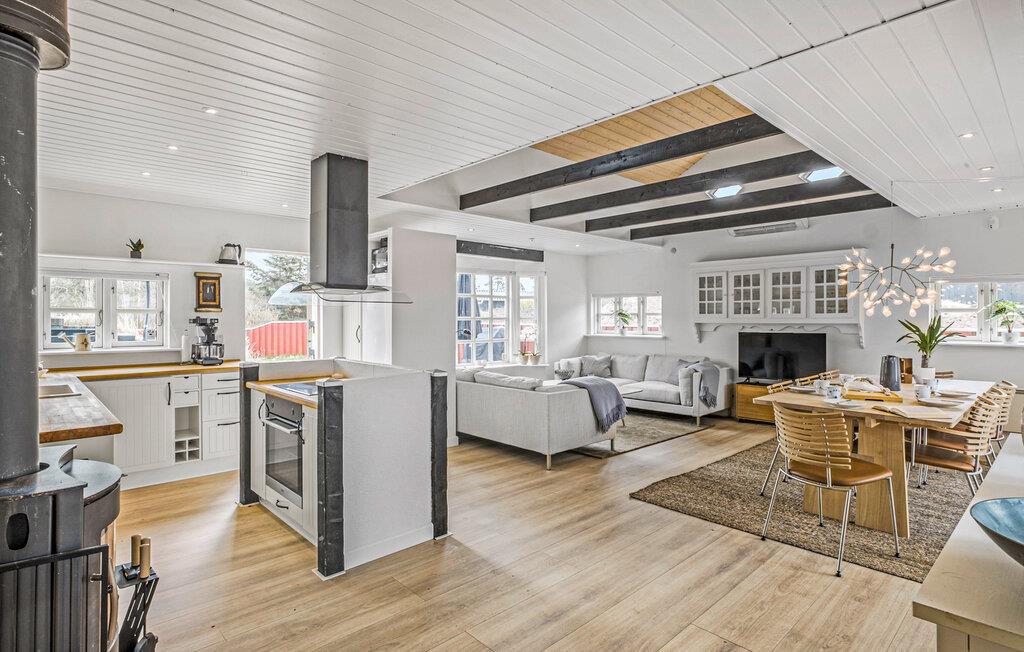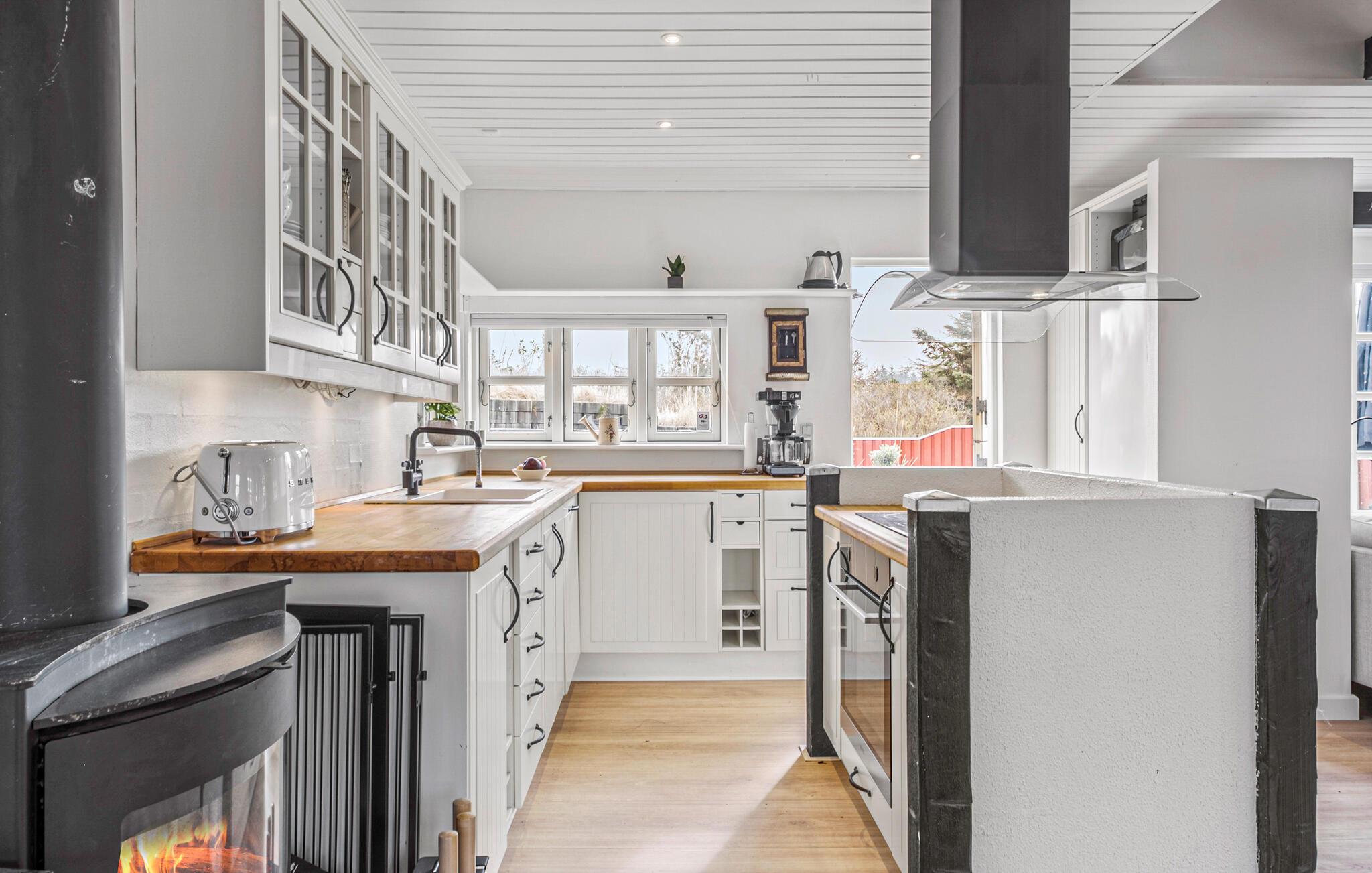 Je lichte vakantiehuis verwelkomt je en biedt de ideale omgeving voor een ontspannen vakantie met familie of vrienden. Geniet van de vriendelijke sfeer, die wordt benadrukt door veel natuurlijk licht en heldere kleuren. Maak het jezelf gemakkelijk in de gezellige zithoek, verwarm jezelf bij de houtkachel of kom samen voor een maaltijd aan de grote eettafel. Bereid moeiteloos je favoriete gerechten in de open keuken, zelfs op vakantie.