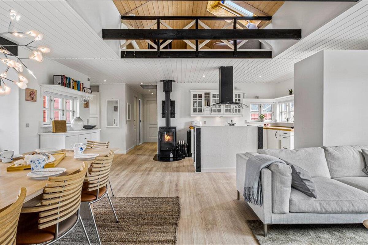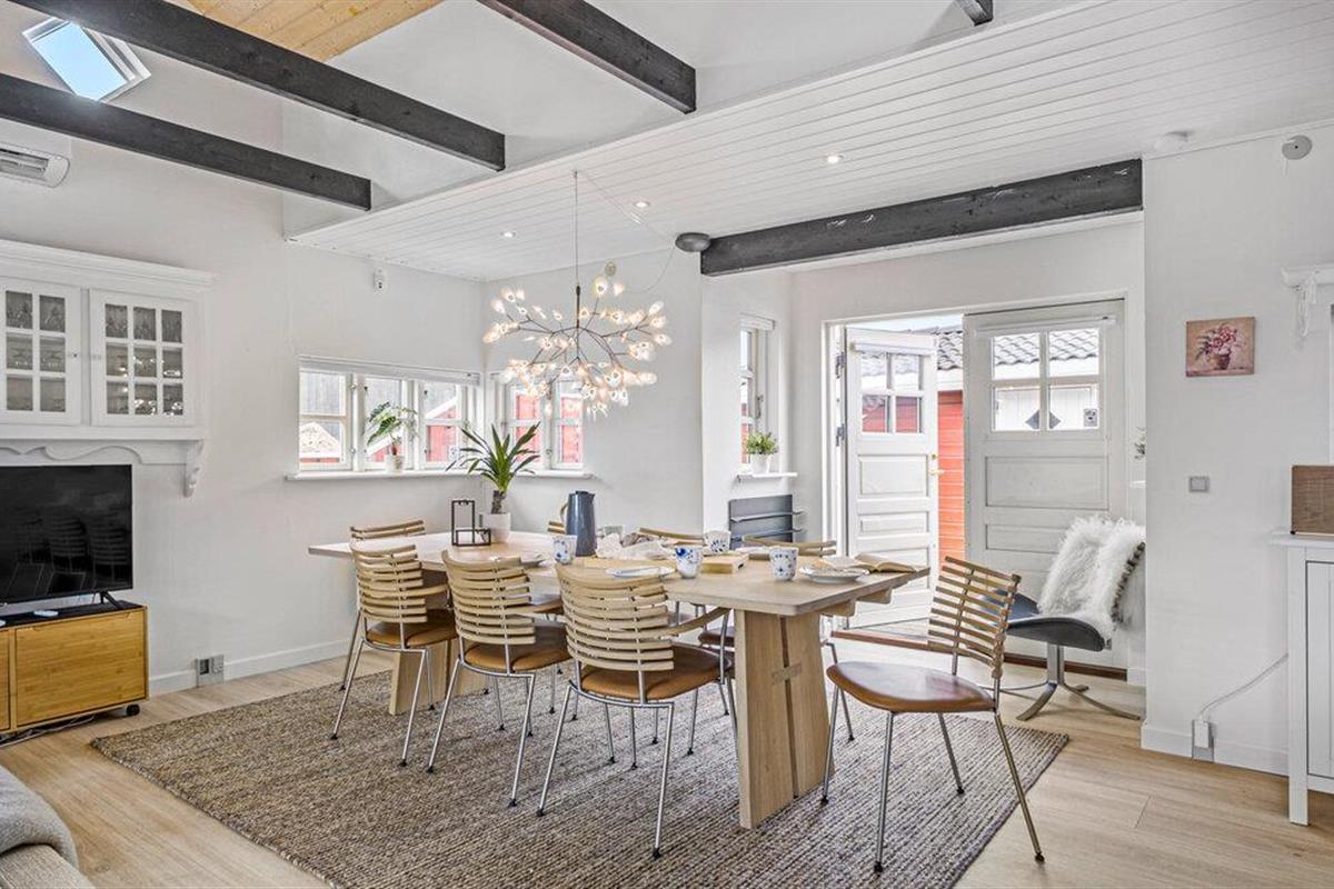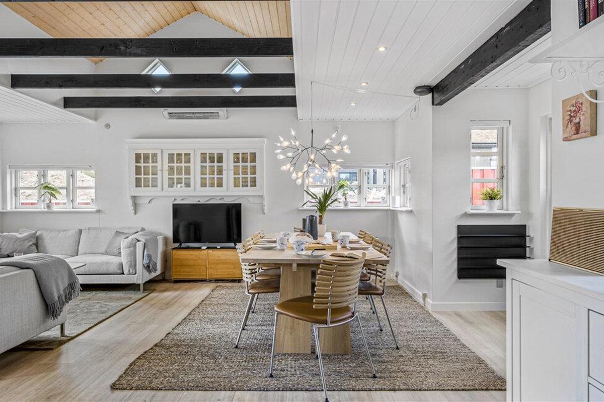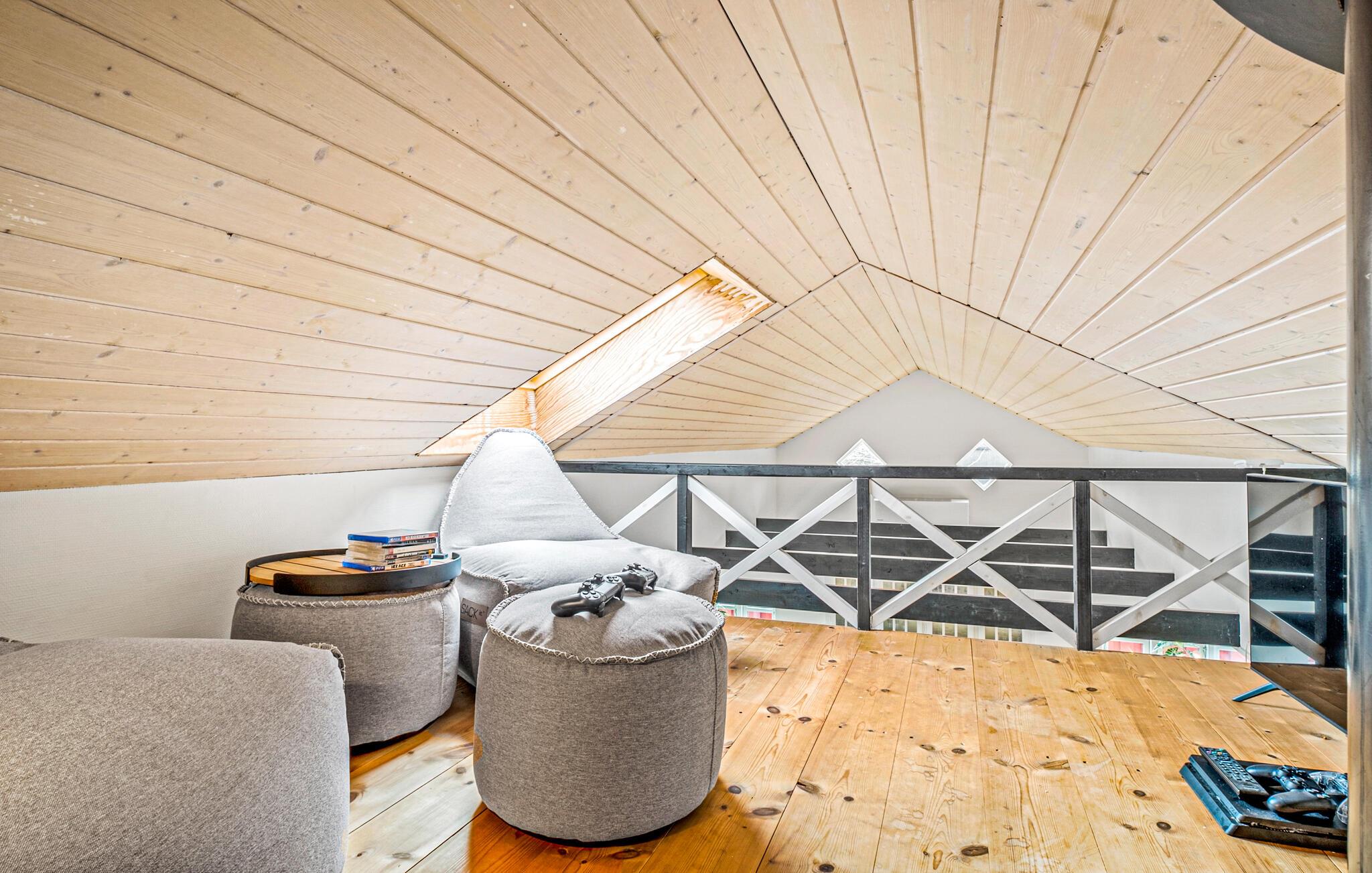 Je lichte vakantiehuis verwelkomt je en biedt de ideale omgeving voor een ontspannen vakantie met familie of vrienden. Geniet van de vriendelijke sfeer, die wordt benadrukt door veel natuurlijk licht en heldere kleuren. Maak het jezelf gemakkelijk in de gezellige zithoek, verwarm jezelf bij de houtkachel of kom samen voor een maaltijd aan de grote eettafel. Bereid moeiteloos je favoriete gerechten in de open keuken, zelfs op vakantie.