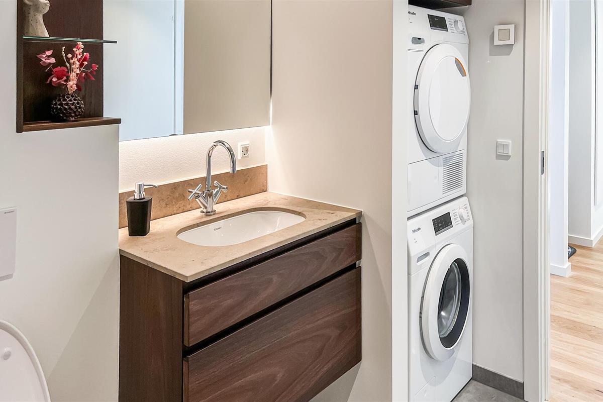 Deze prachtige flat is ontworpen om een rustige sfeer te creëren met veel licht, strakke lijnen en warme houttinten. In de woonkamer wachten grote ramen, een comfortabele bank en een tv op je voor heerlijk ontspannen uren. Als je wilt, kun je verse maaltijden bereiden in de moderne keuken en de dag afsluiten aan de ronde eettafel in goed gezelschap.