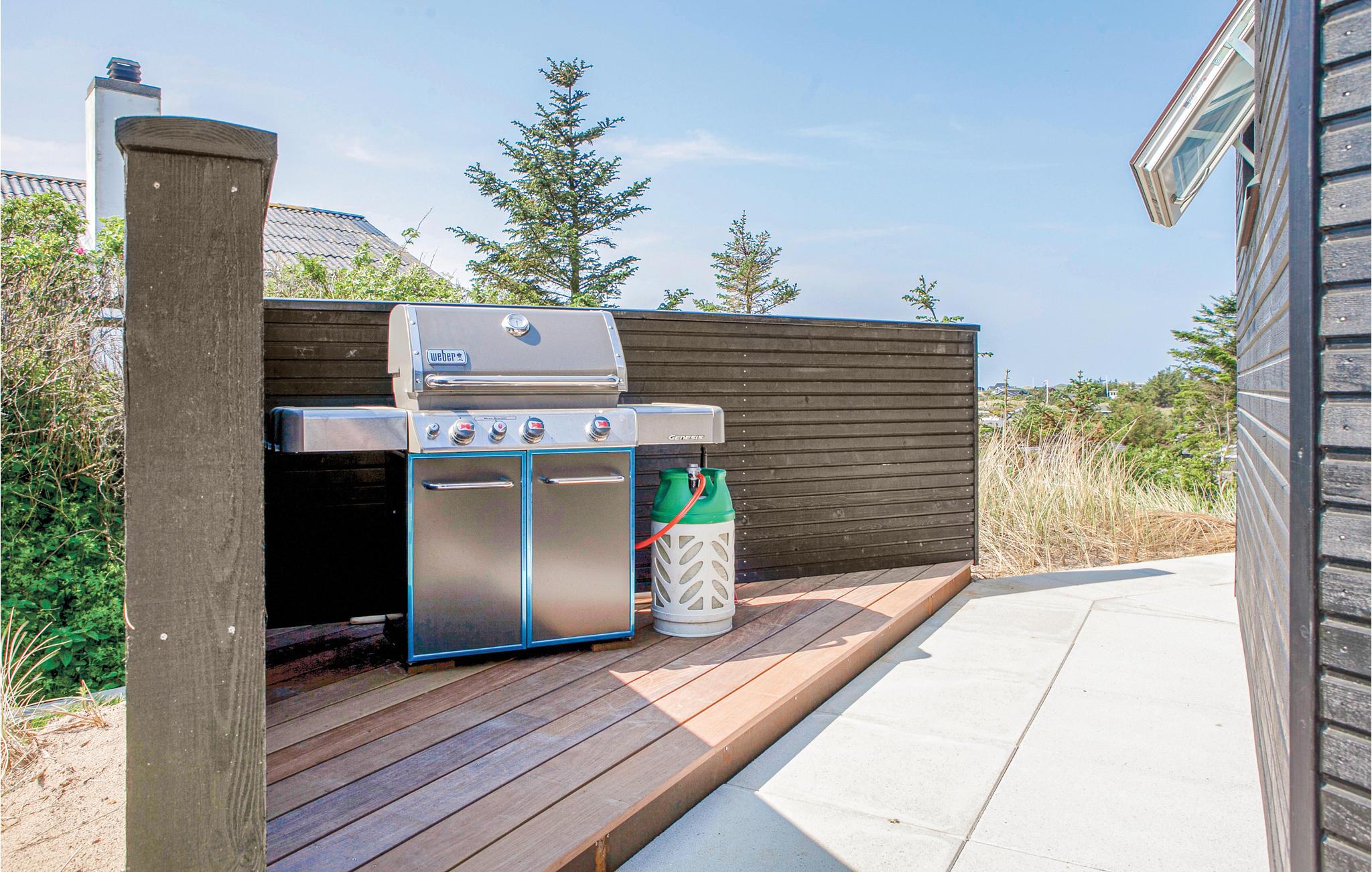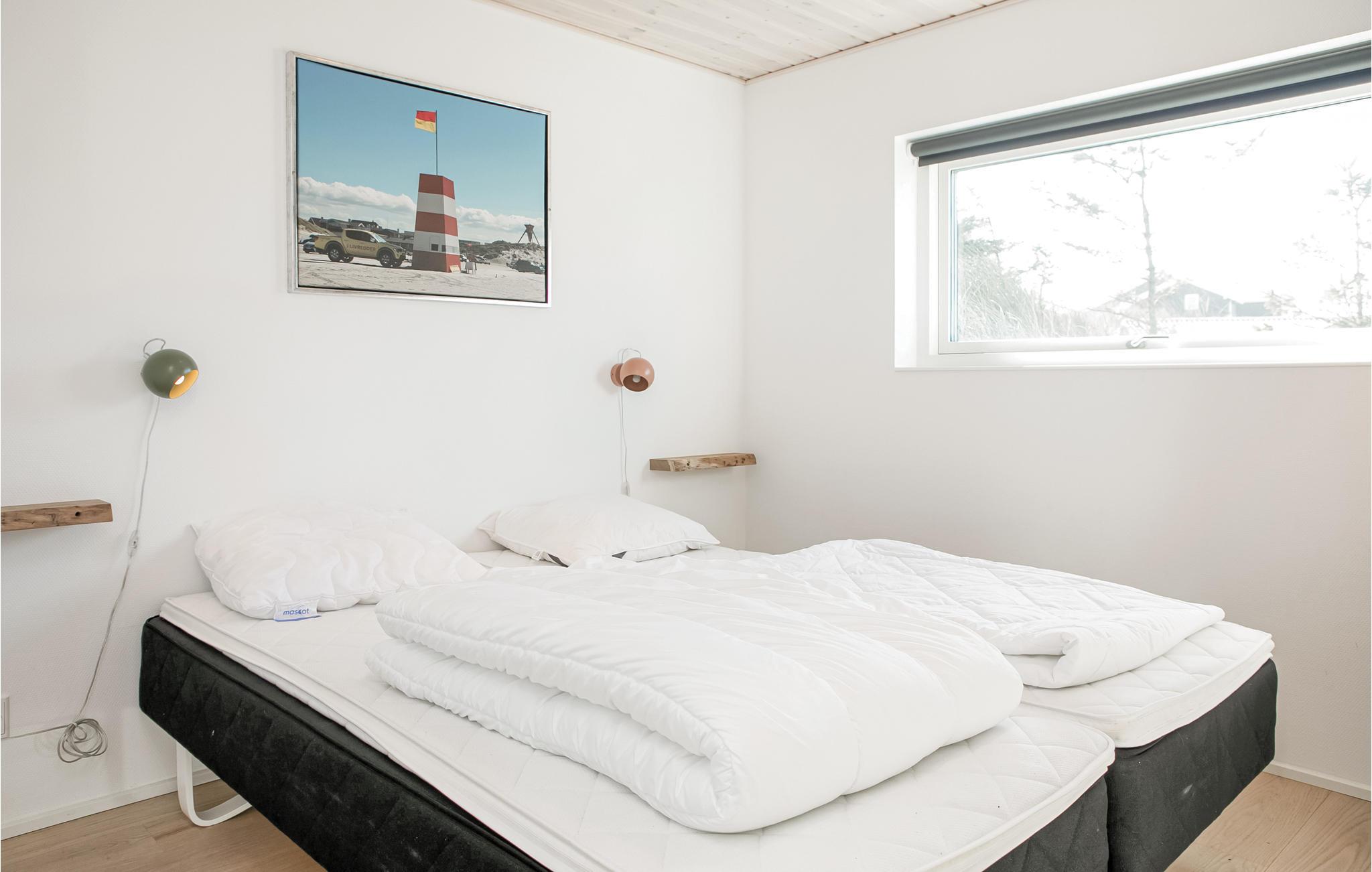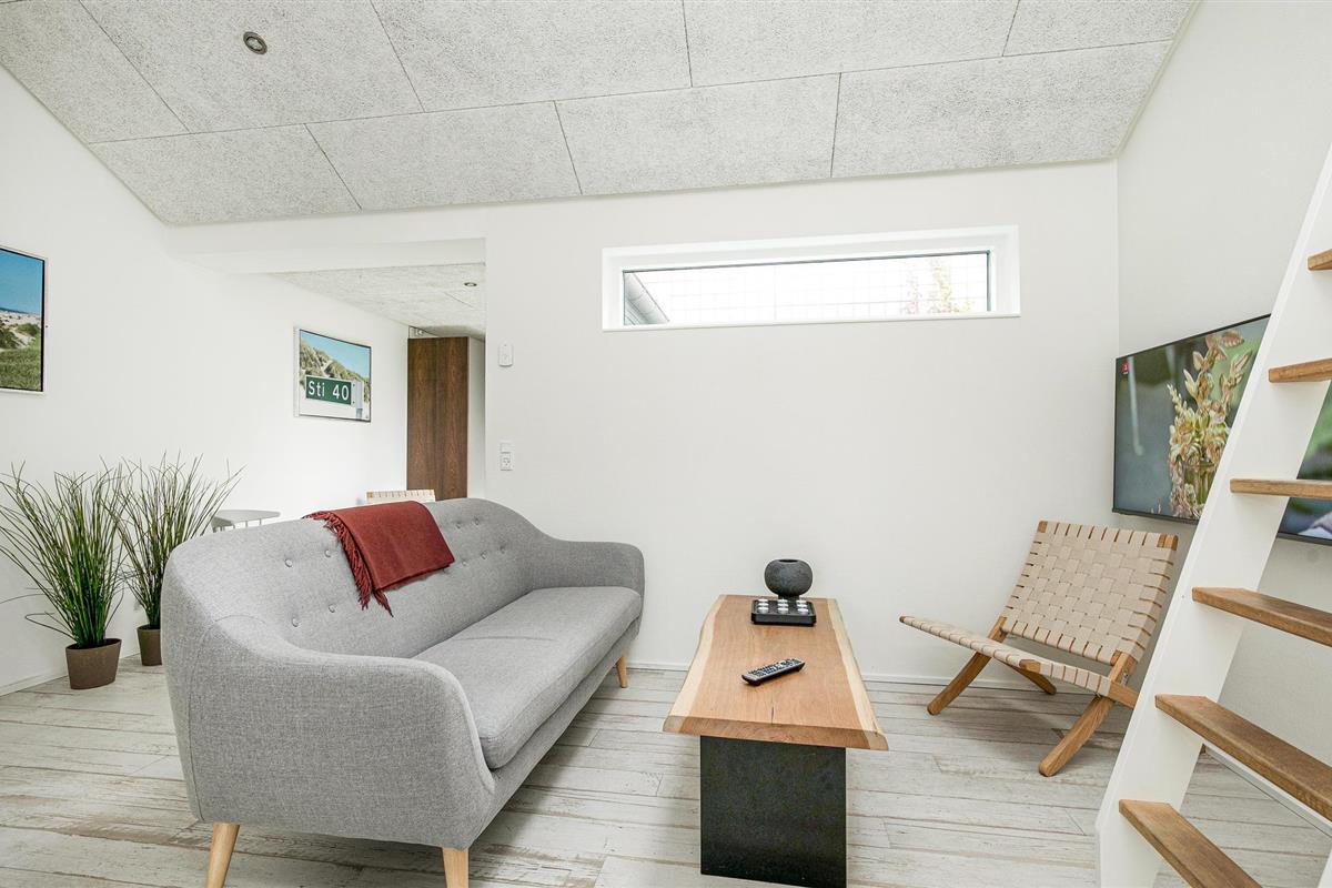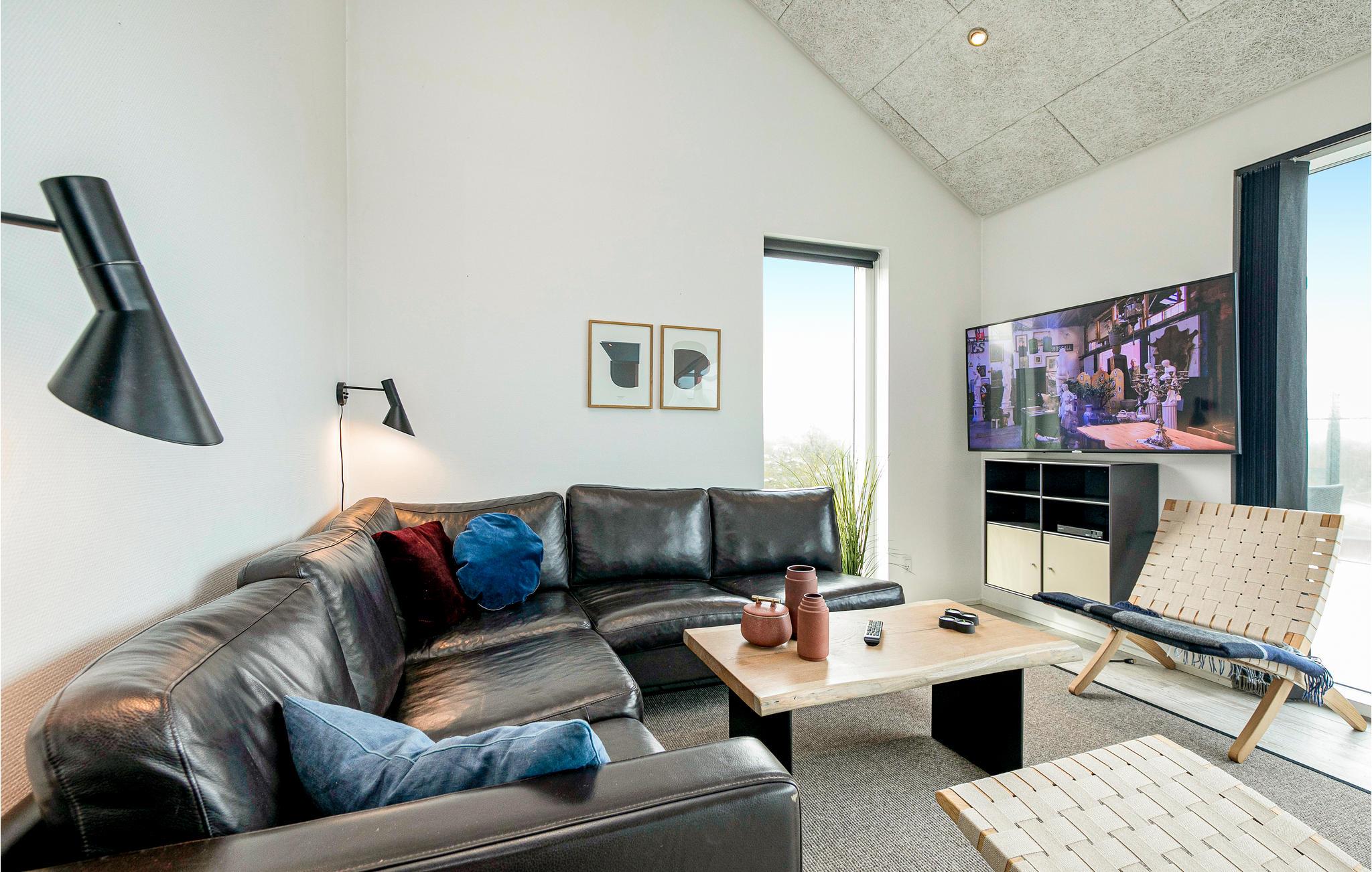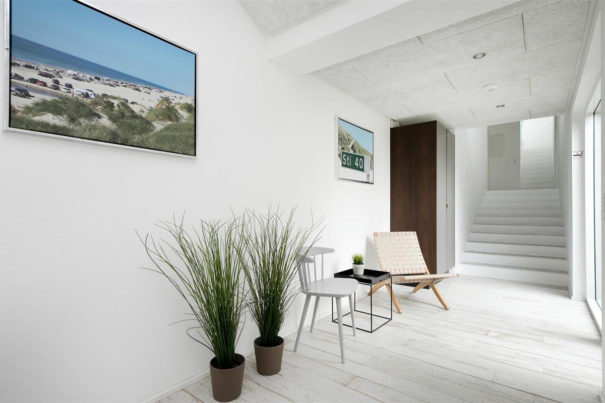 Het wacht op u hoog op een natuurlijk perceel in een rustige wijk niet ver van het centrum van Blokhus, waar u gezellige cafés en vele winkels vindt. Het biedt u grote ramen van waaruit het uitnodigende huis wordt overspoeld met licht.