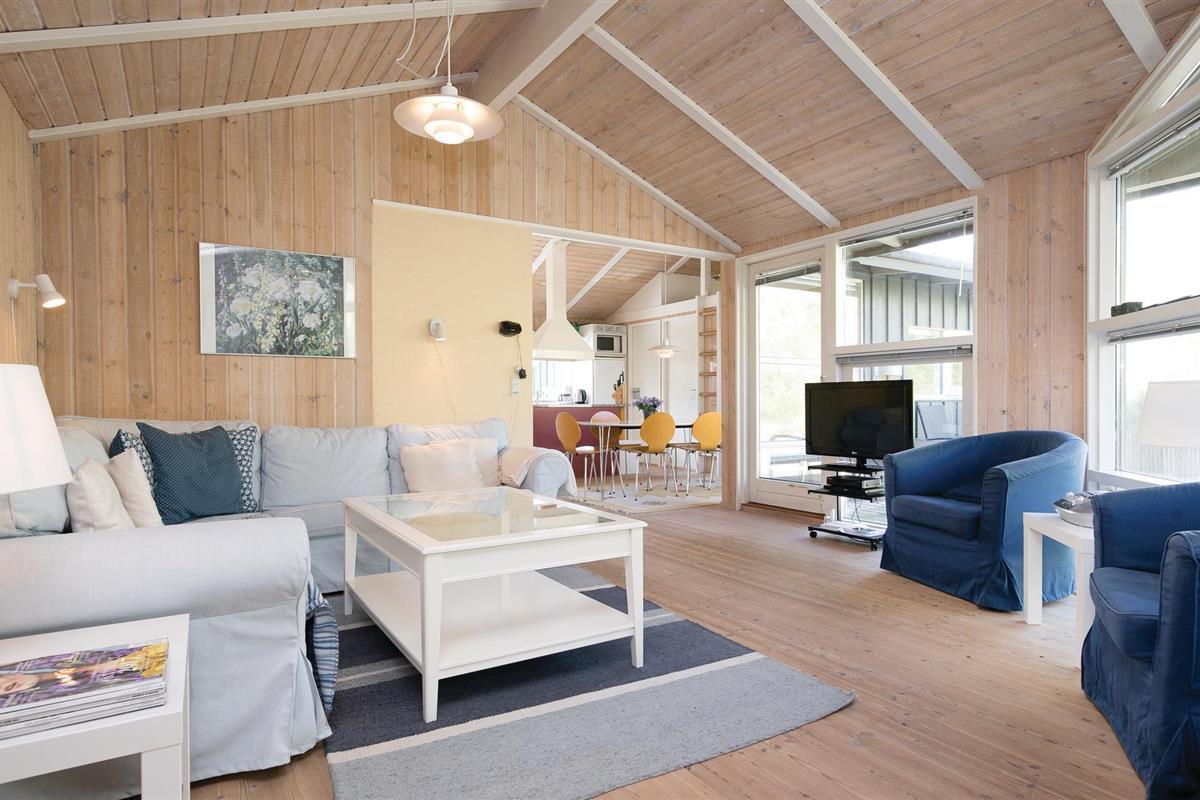 Dit vakantiehuis verwelkomt je op een groot, mooi duingrondstuk met zacht wuivend helmgras in Blokhus. Het samenspel van lichte houten muren, grote ramen, hoge plafonds en een harmonieuze mix van koele kleuren, pasteltinten en warme kleuraccenten creëert niet alleen een lichte en ruime, maar ook een gezellige en uitnodigende sfeer die de zee weerspiegelt. De woonkamer is de natuurlijke ontmoetingsplaats voor het hele gezin. Probeer nieuwe recepten uit in de goed uitgeruste keuken, speel kaart aan de eettafel of geniet 's avonds van een leuke film. Ook wellness wordt niet verwaarloosd, met zowel een whirlpool als een sauna tot je beschikking.