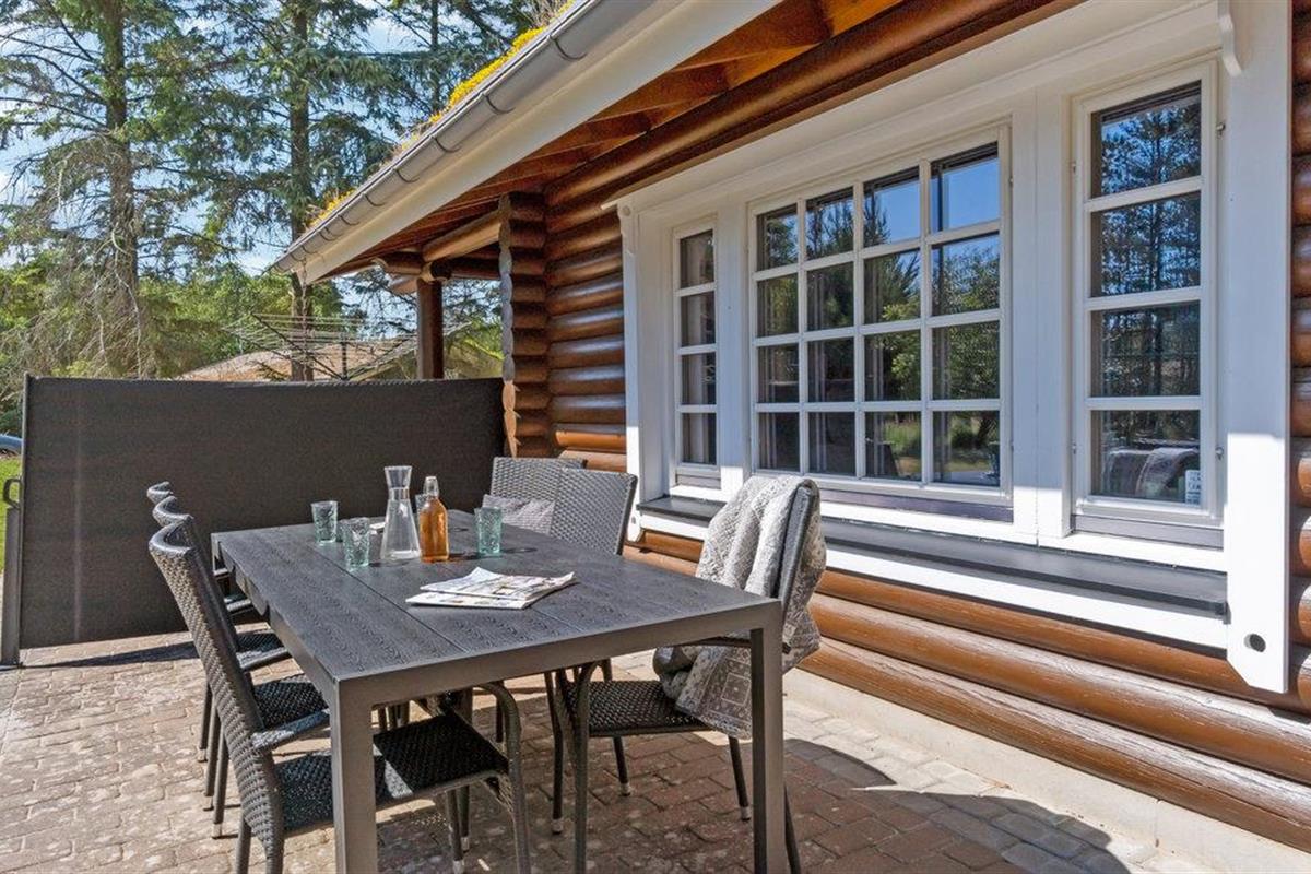 Ontdek deze energiezuinige blokhut van Fins hout, vlakbij het strand en Fårup Sommerland in Noord-Jutland.