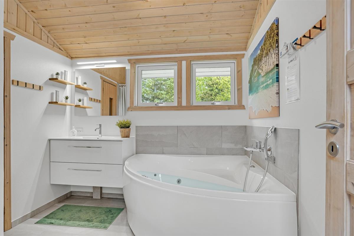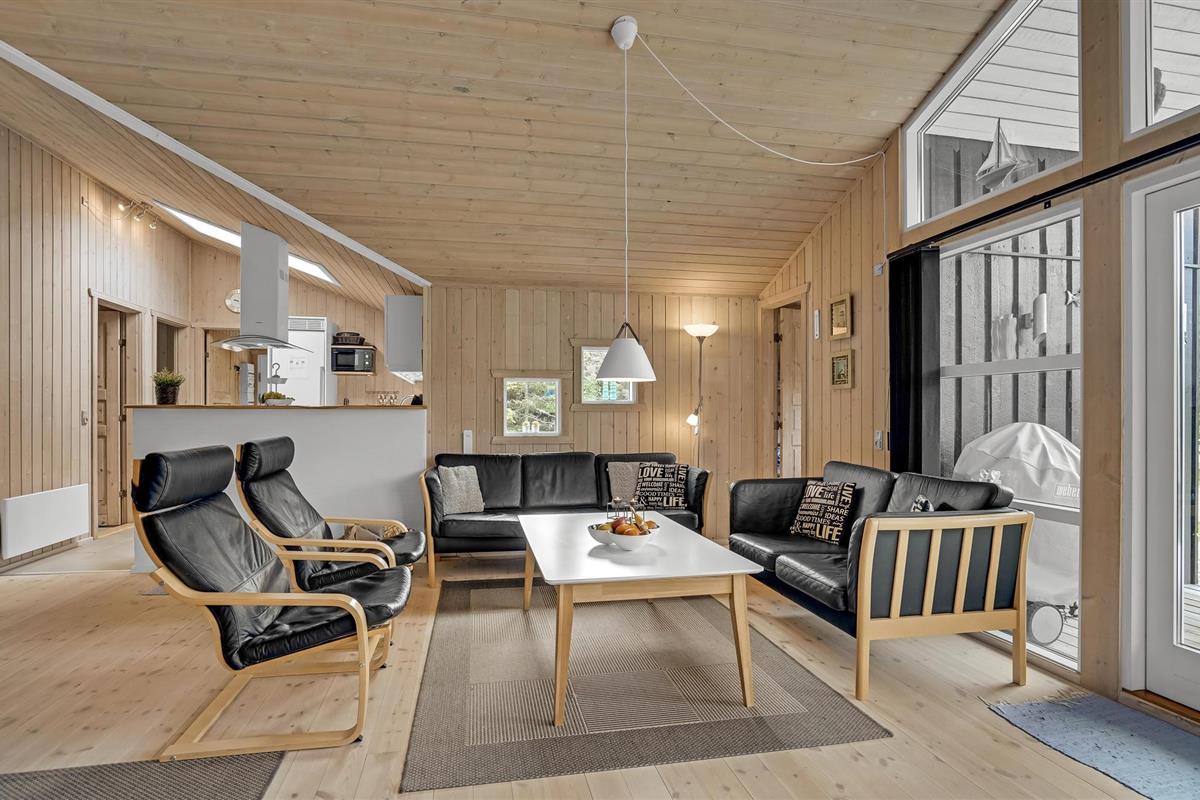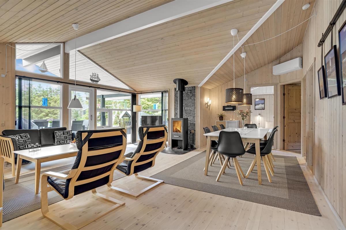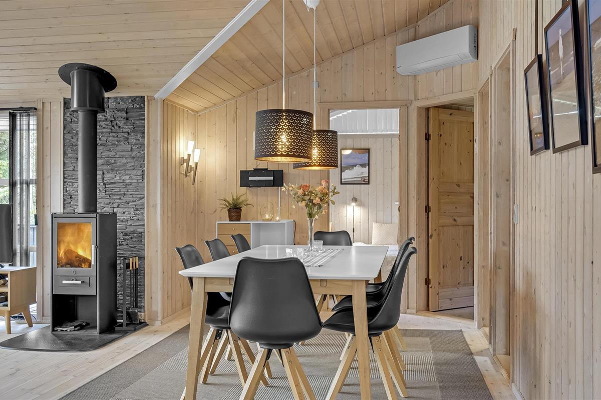Verheug u op een fantastische vakantie in dit prachtige vakantiehuis midden in de natuur. Hier kunt u een aangename tijd doorbrengen met veel van uw favoriete mensen. De kamers, bekleed met licht hout, stralen een aangename sfeer uit, die alleen maar wordt versterkt door de open haard. Hier kunt u het uzelf comfortabel maken op de koele zomeravonden en luisteren naar het geknetter van het vuur. Gebruik de enorme buitenruimte om de kinderen rond te laten rennen, of zit samen bij de open haard en maak stokbrood. Het terras is ook een geweldige plek om op bijna elk moment van de dag in de frisse lucht te zitten en in een gezellige sfeer van maaltijden te genieten.