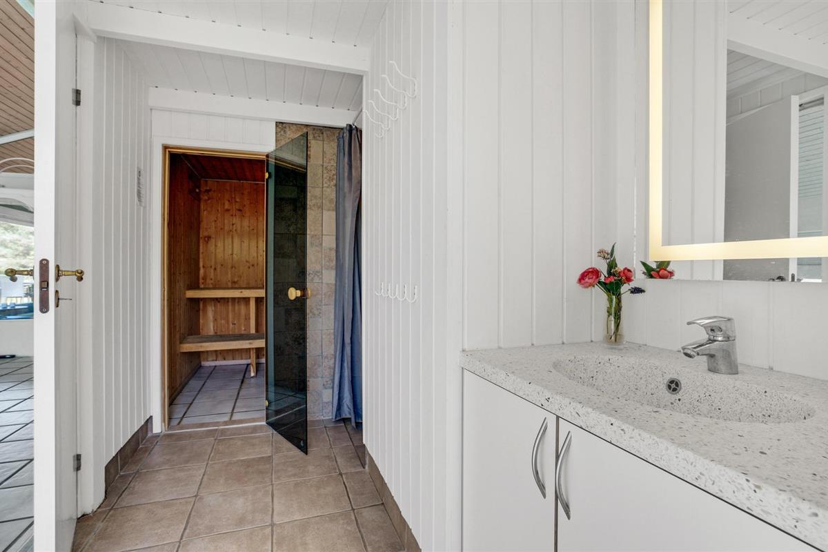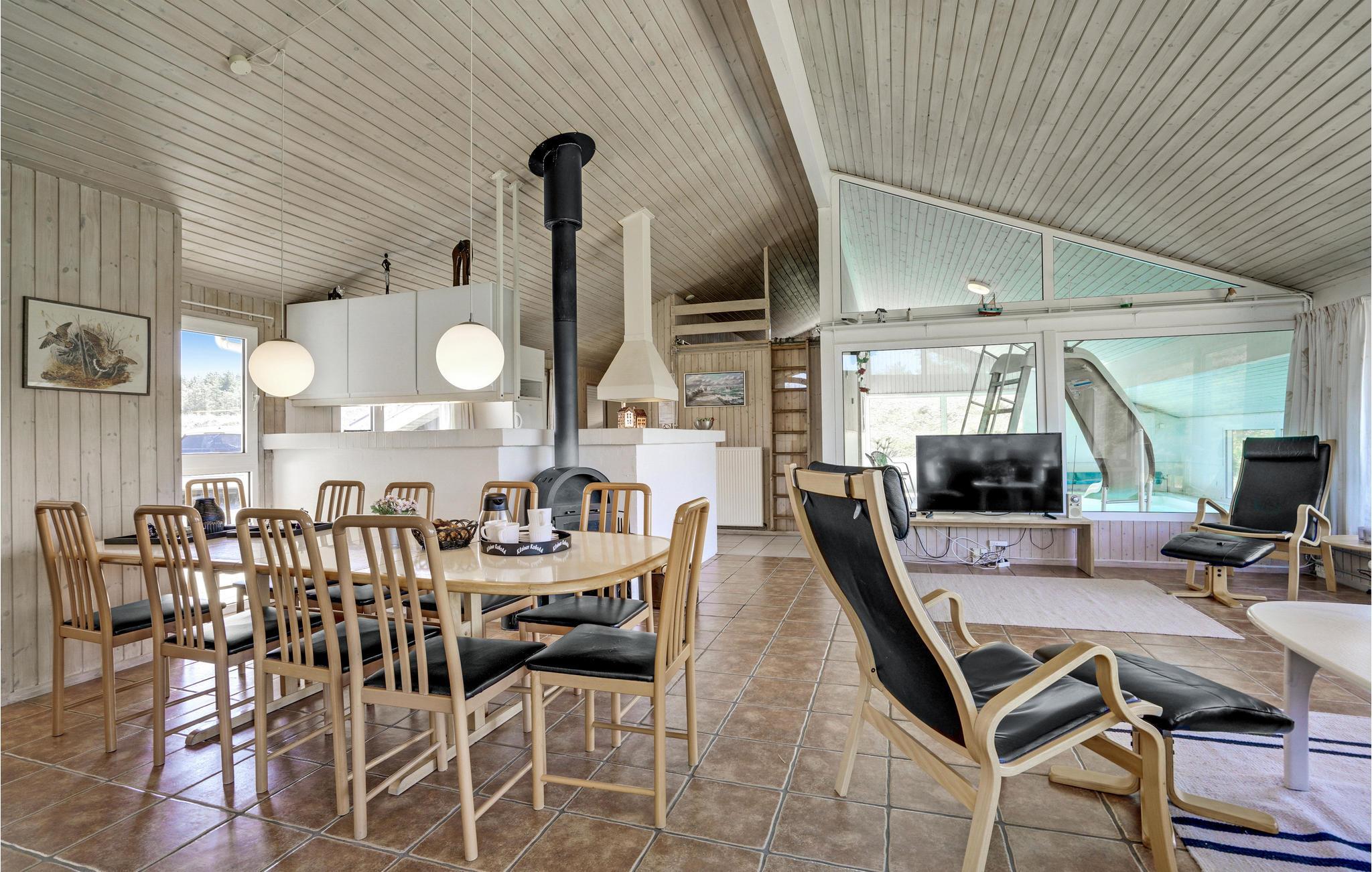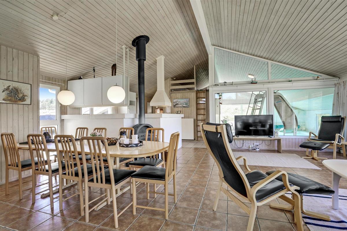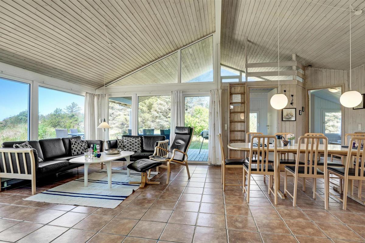 Eersteklas natuurbeleving, dat is wat je hier krijgt. Het huis ligt aan het einde van een doodlopende weg midden in een prachtig natuurgebied. Vanuit de woonkamer kunt u uw kinderen zien spelen in de biljartzaal, en tegelijkertijd krijgt u de indruk dat u buiten zit, want de panoramische ramen bieden uitzicht op de heide, de duinen en het bos. Boxer TV biedt een ruime keuze aan tv-zenders. Het is hier in elk seizoen mooi. Een uitstapje naar Fårup Sommerland is een bijzondere ervaring, met vertier voor jong en oud.