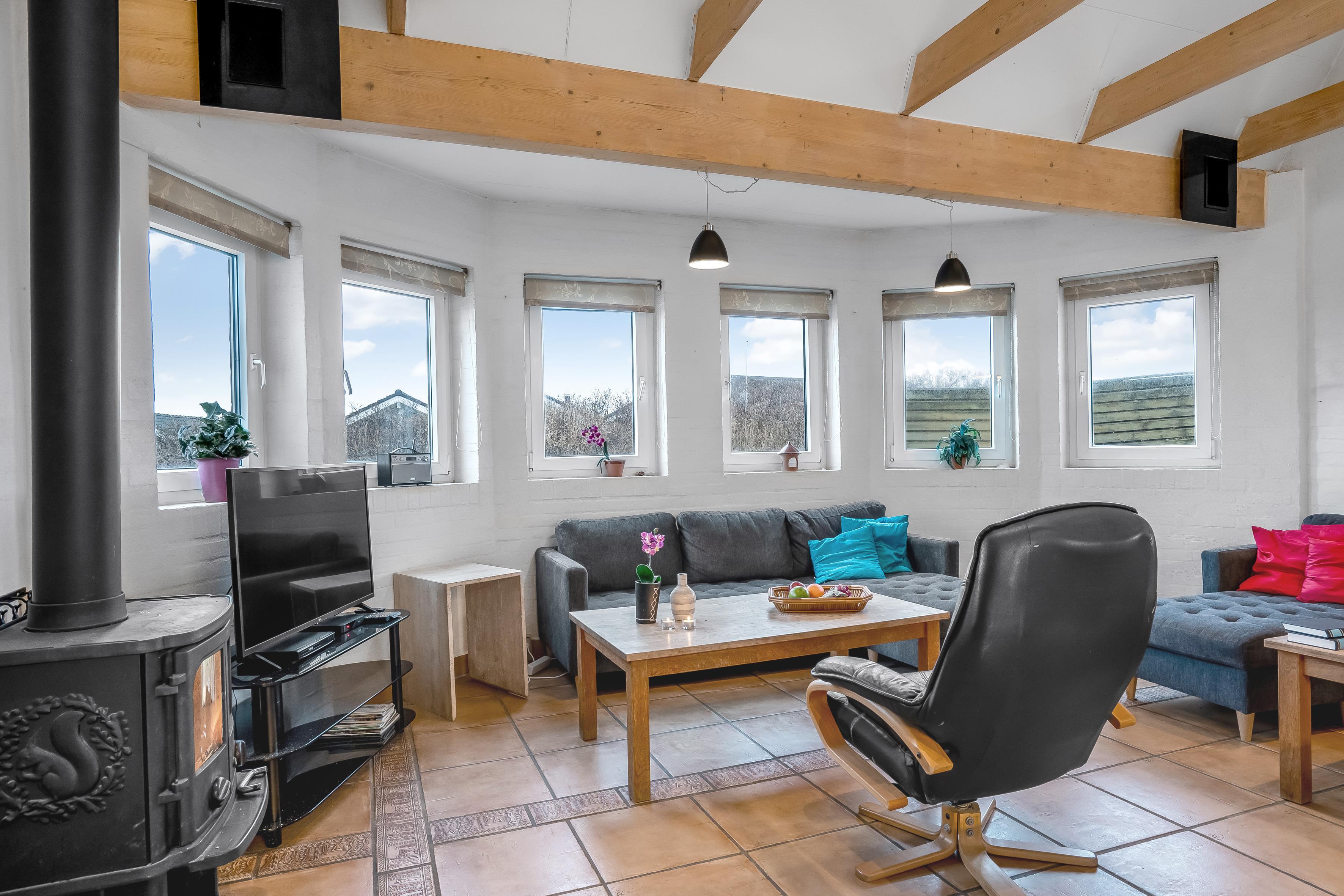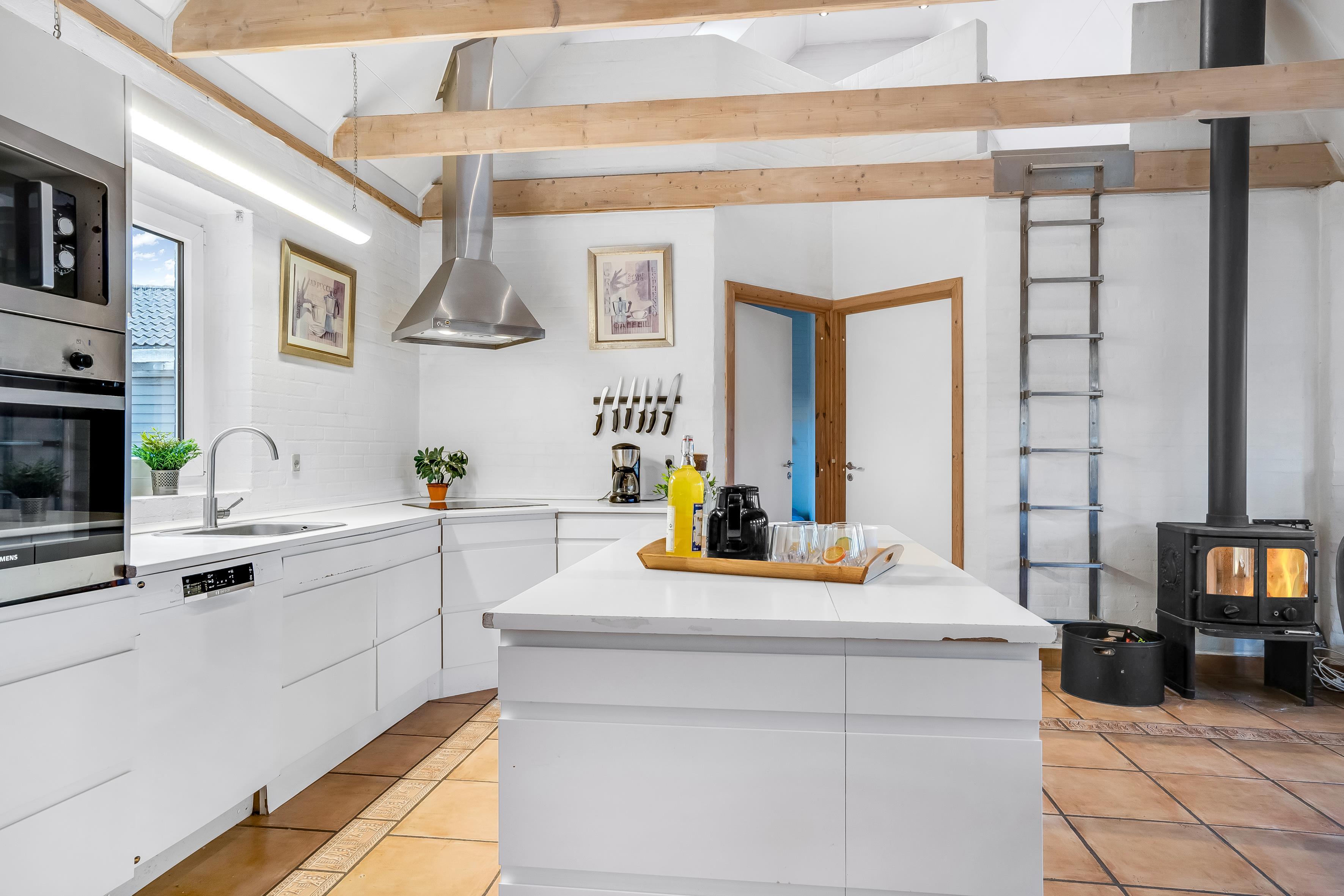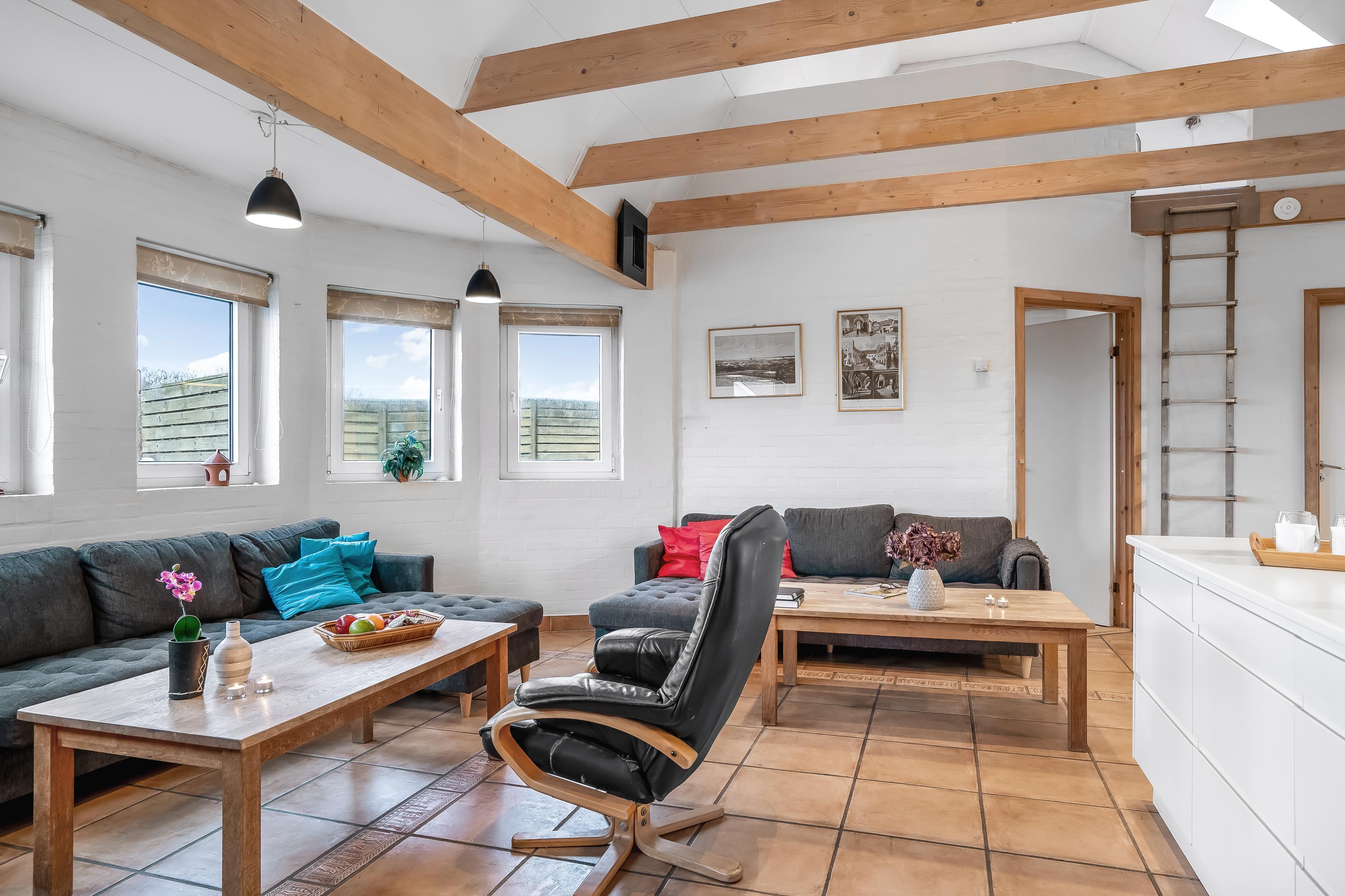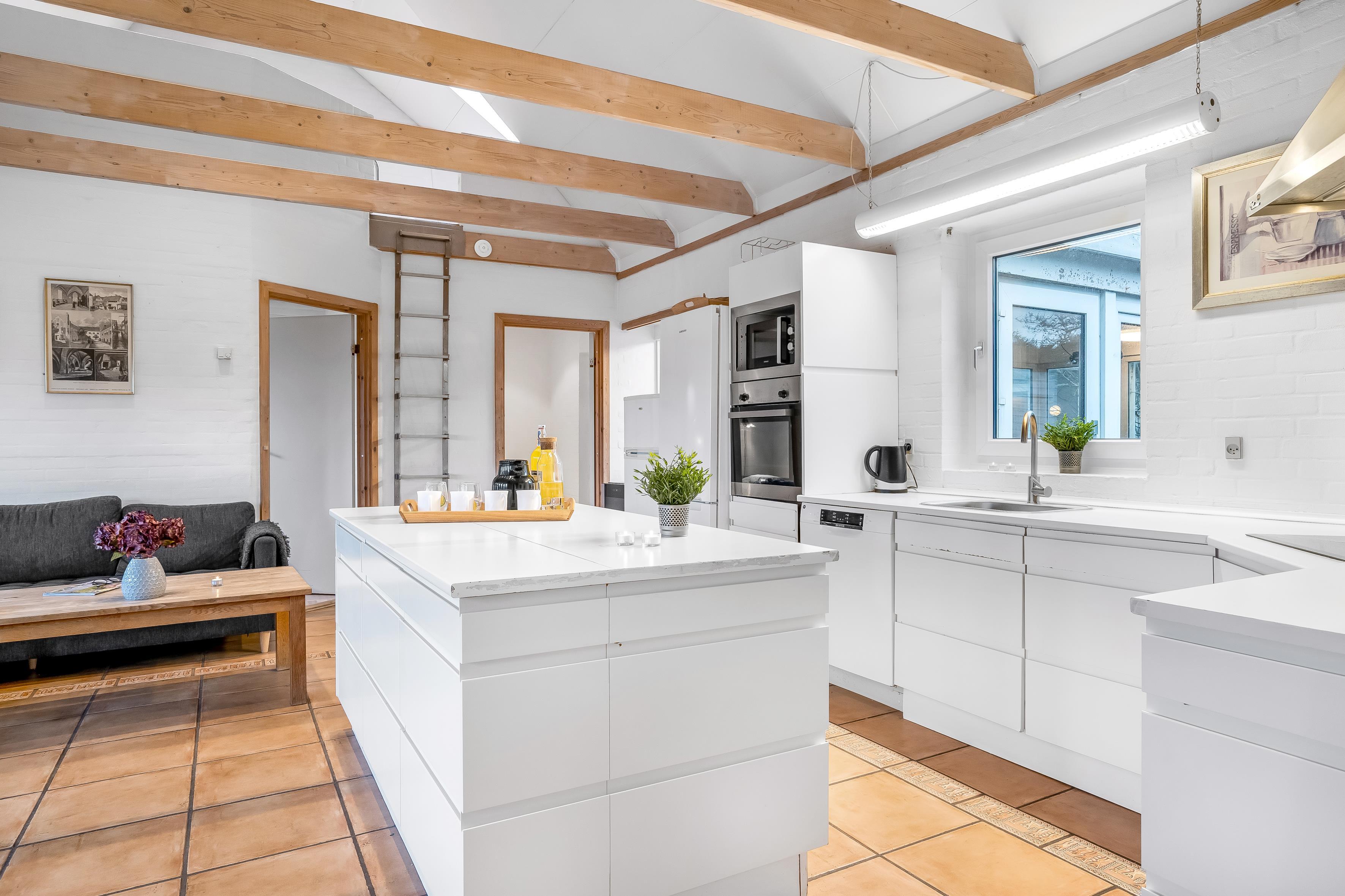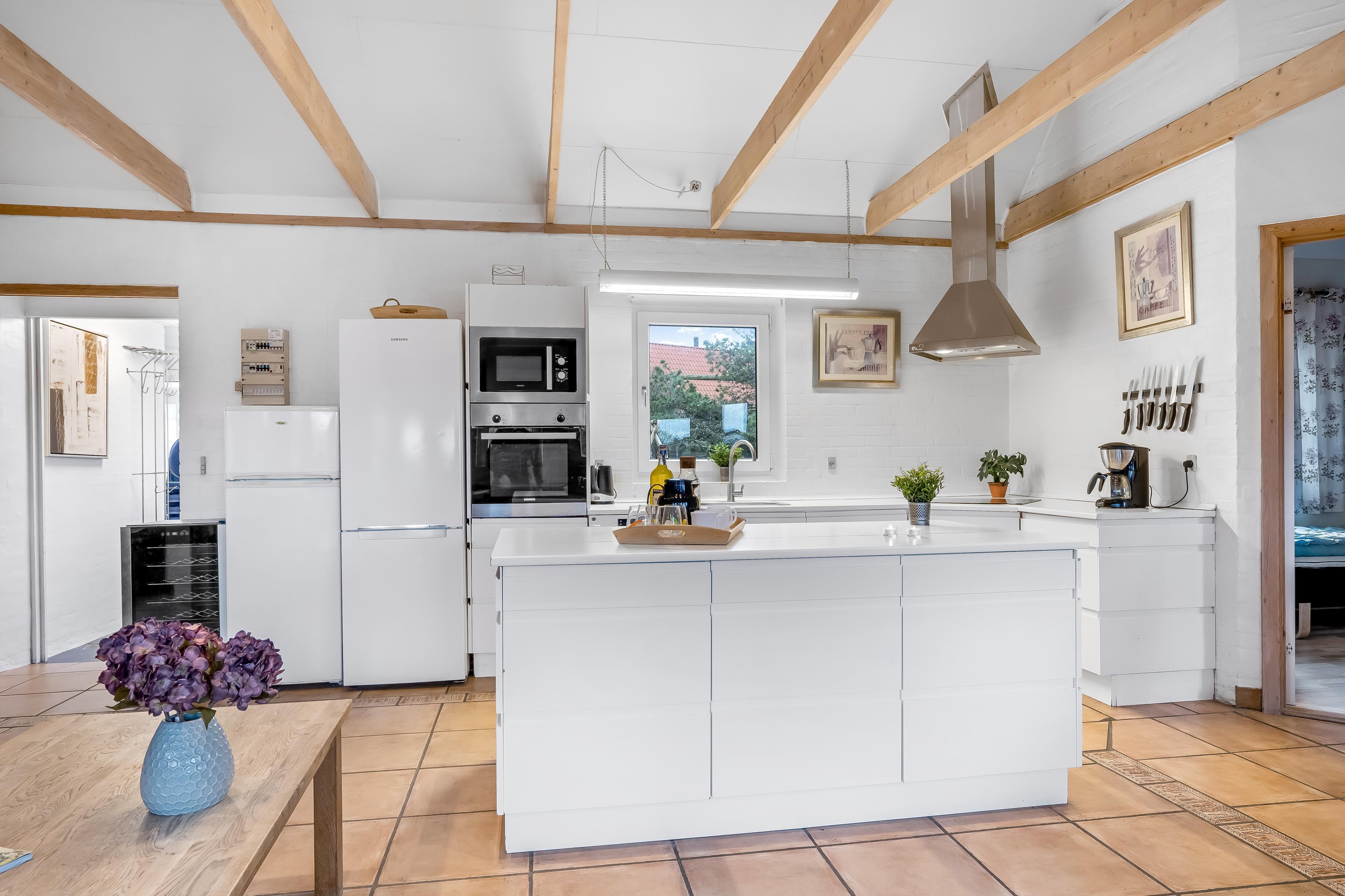 The kitchen is fully equipped with modern appliances, including microwave, oven, ceramic hob, dishwasher, fridge and freezer with a capacity of 100 litres. There is also a washing machine and tumble dryer available, making it easy to keep the house tidy during your stay. For entertainment, there is a television with both Danish and German TV, as well as wireless internet, so you can stay connected to the outside world if you wish.