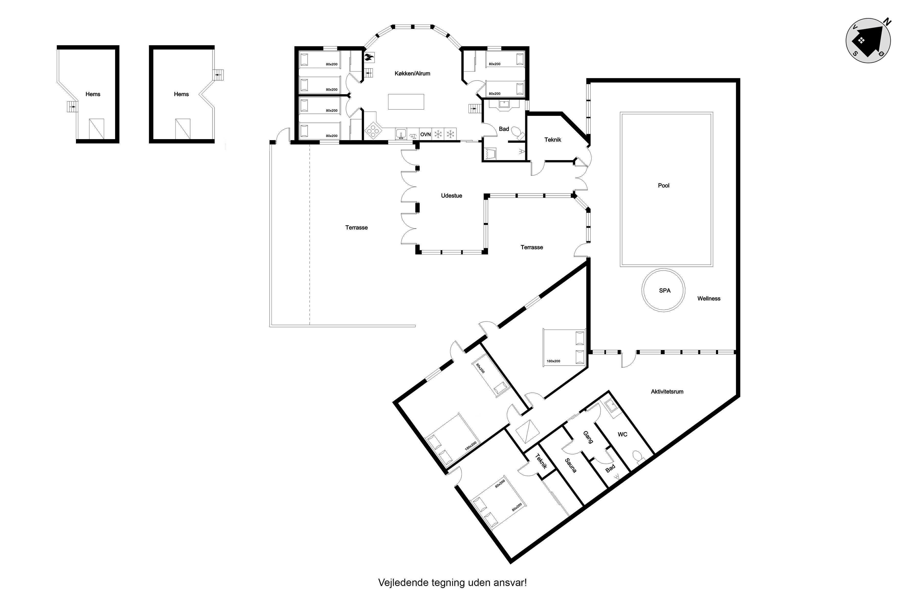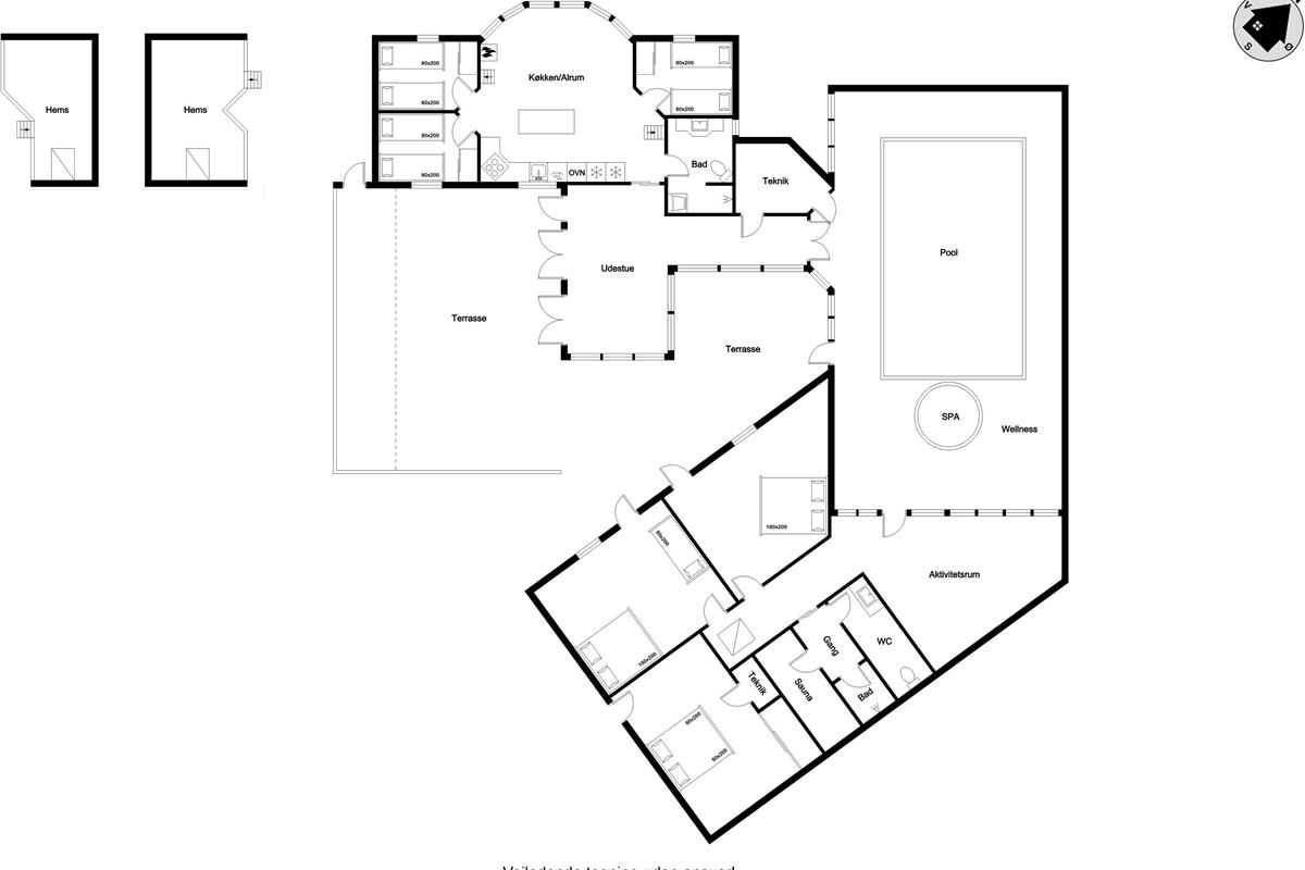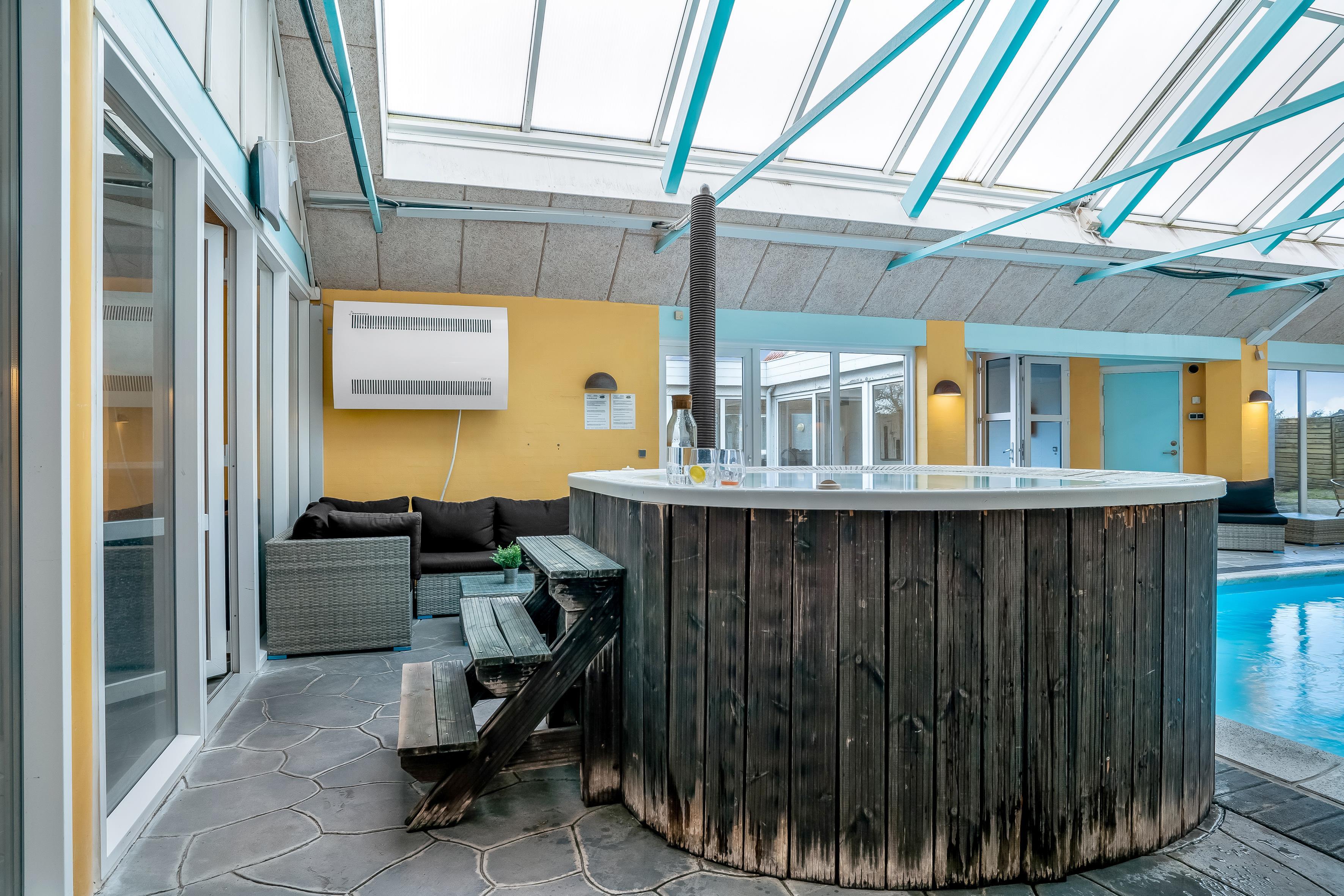 Fantastically located holiday home on klitvejen 10 in Blokhus, perfect for families and groups who want to enjoy an unforgettable holiday close to city life and the sea. The house, built in 1993, extends over a large house area of 350 square meters and is situated on a spacious plot of 700 square meters. With an ideal location only 150 meters from the water and just 50 meters from the nearest restaurant, this house is a good starting point for both relaxation and adventure.