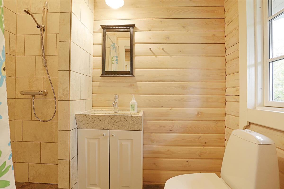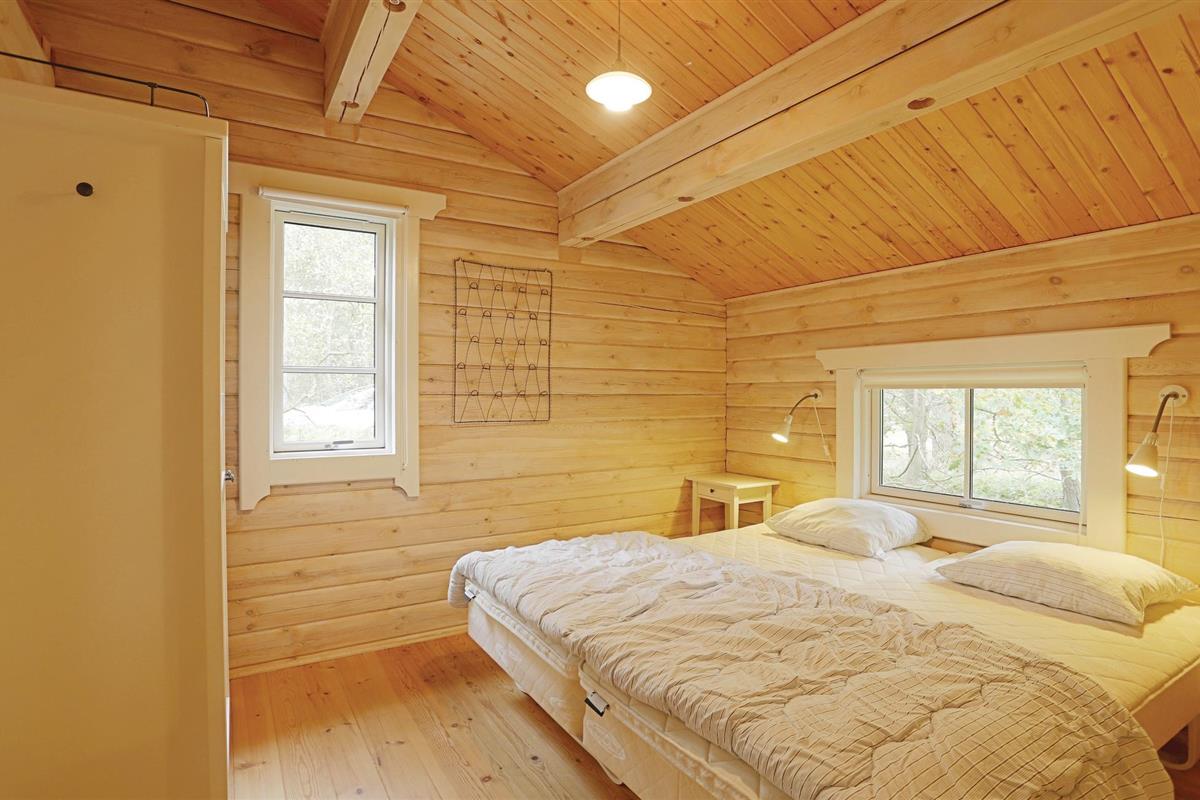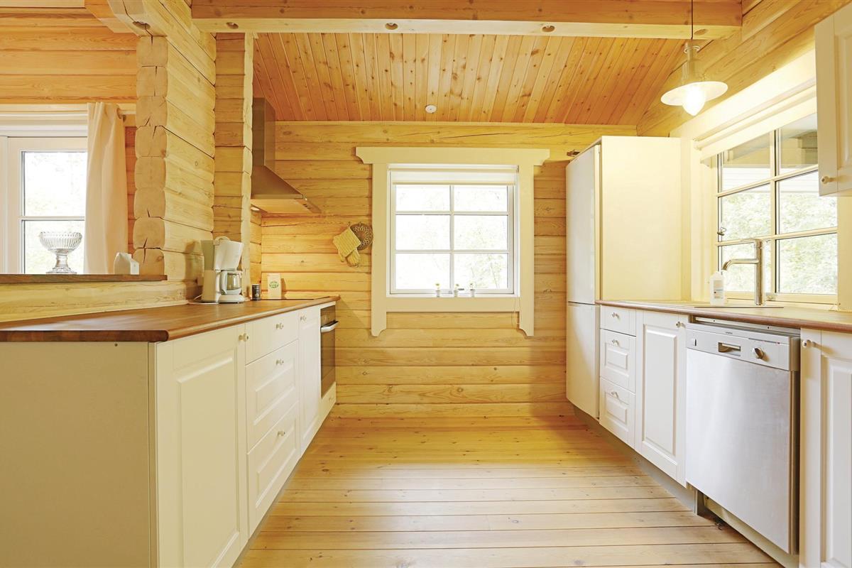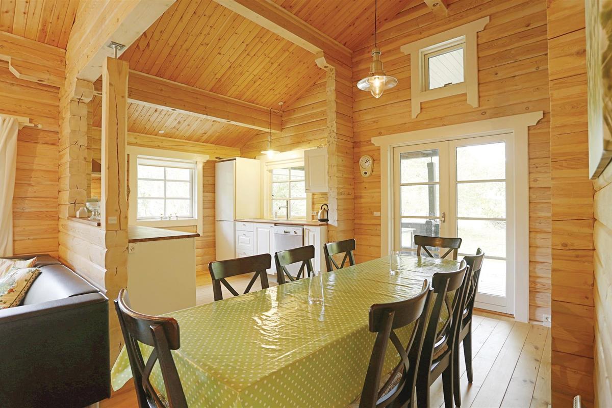 Prachtige en mooi ingerichte blokhut met veel leuke details en een zeer gezellige sfeer. De grote balken en hoge plafonds geven het huis een rustieke, zeer charmante en ruime sfeer. Een moderne inrichting met een geweldige, open en goed uitgeruste keuken en twee mooie en uitnodigende badkamers, waarvan één met een whirlpool, een moderne douchehoek en een sofa-sauna voor één persoon, zorgen ervoor dat u hier comfortabel van uw vakantie kunt genieten. Er zijn ook drie geweldige slaapkamers en in de woonkamer leidt een trap naar de gezellige en speciaal voor kinderen geschikte hangverdieping. De woonkamer is mooi ingericht met comfortabele meubels en een houtkachel en in de mooie eetkamer kunnen twee gezinnen samen eten. Gelegen op een geweldig en ongestoord natuurgrondstuk in het vakantiehuisgebied Boderne, ligt deze blokhut niet ver van een goed zandstrand, een gezellig vissersdorp en een exclusieve kledingwinkel.