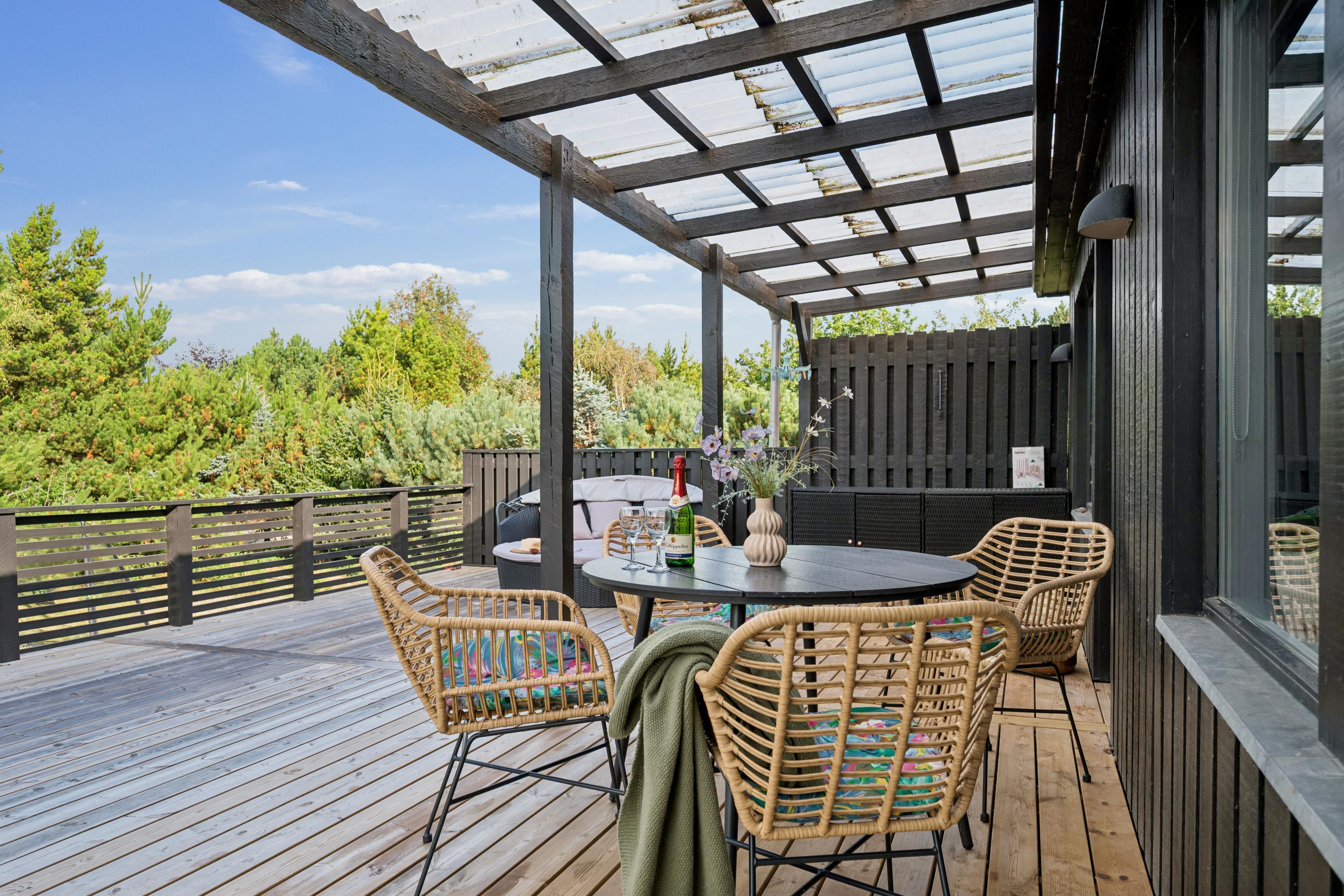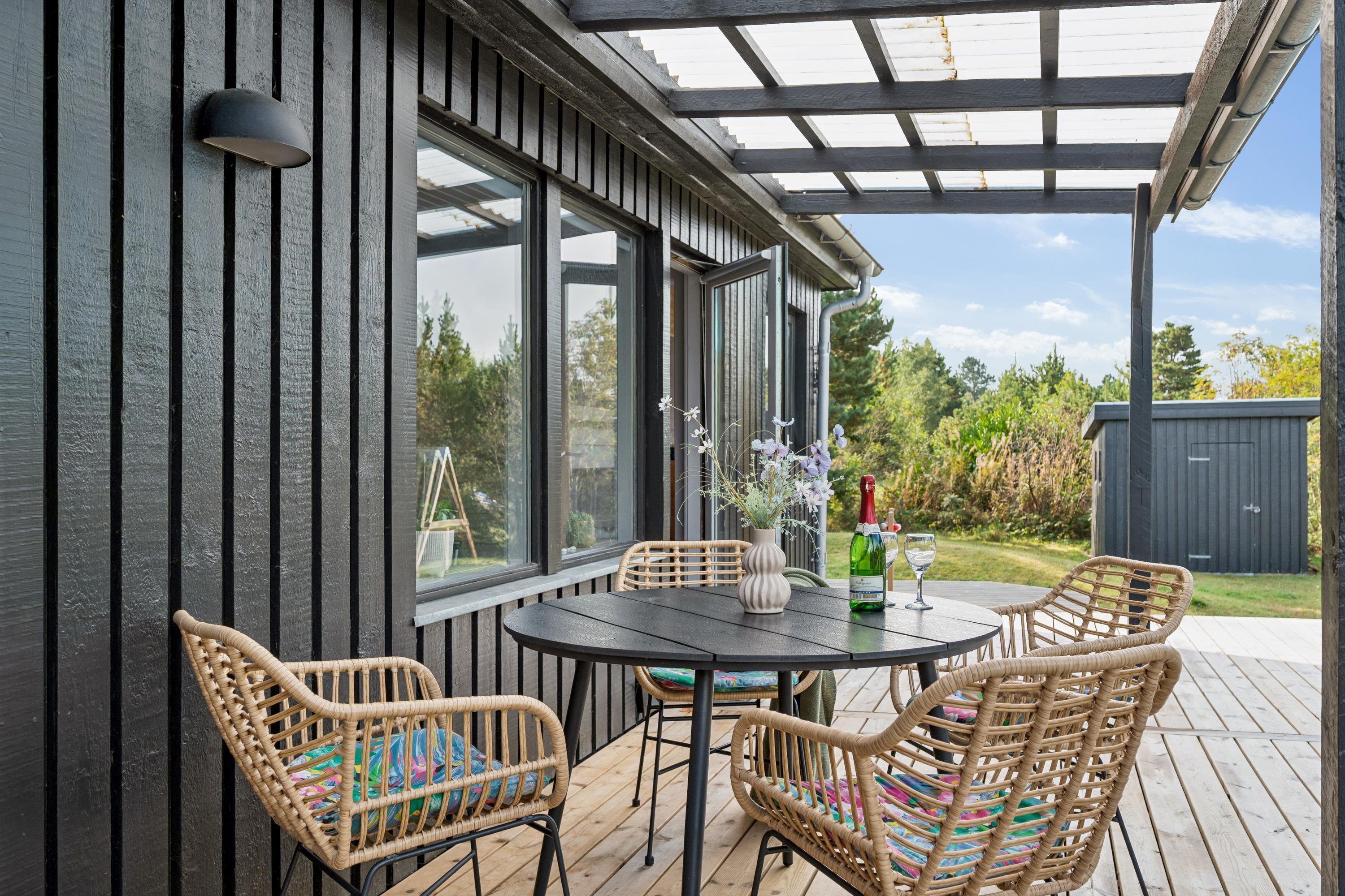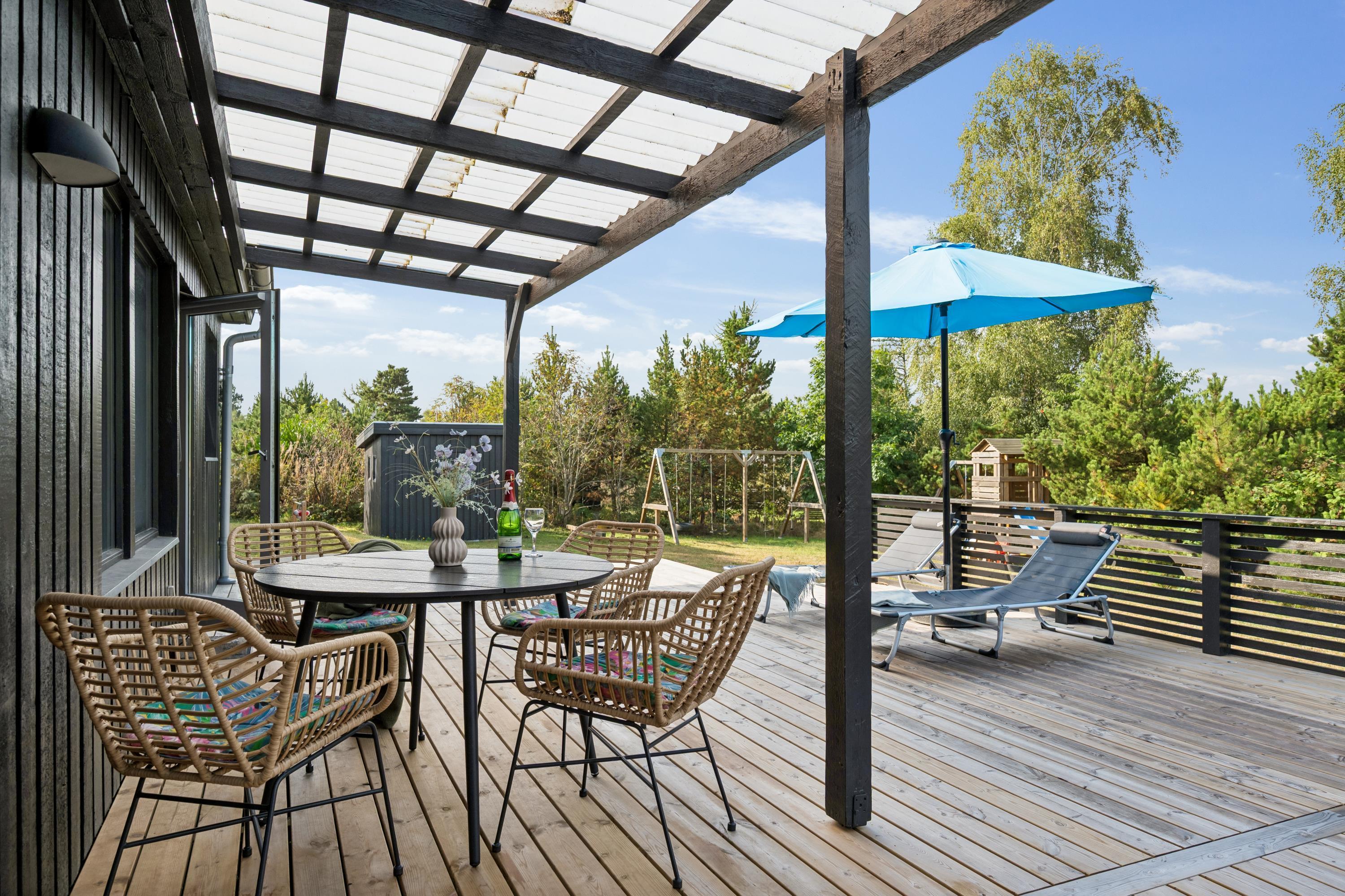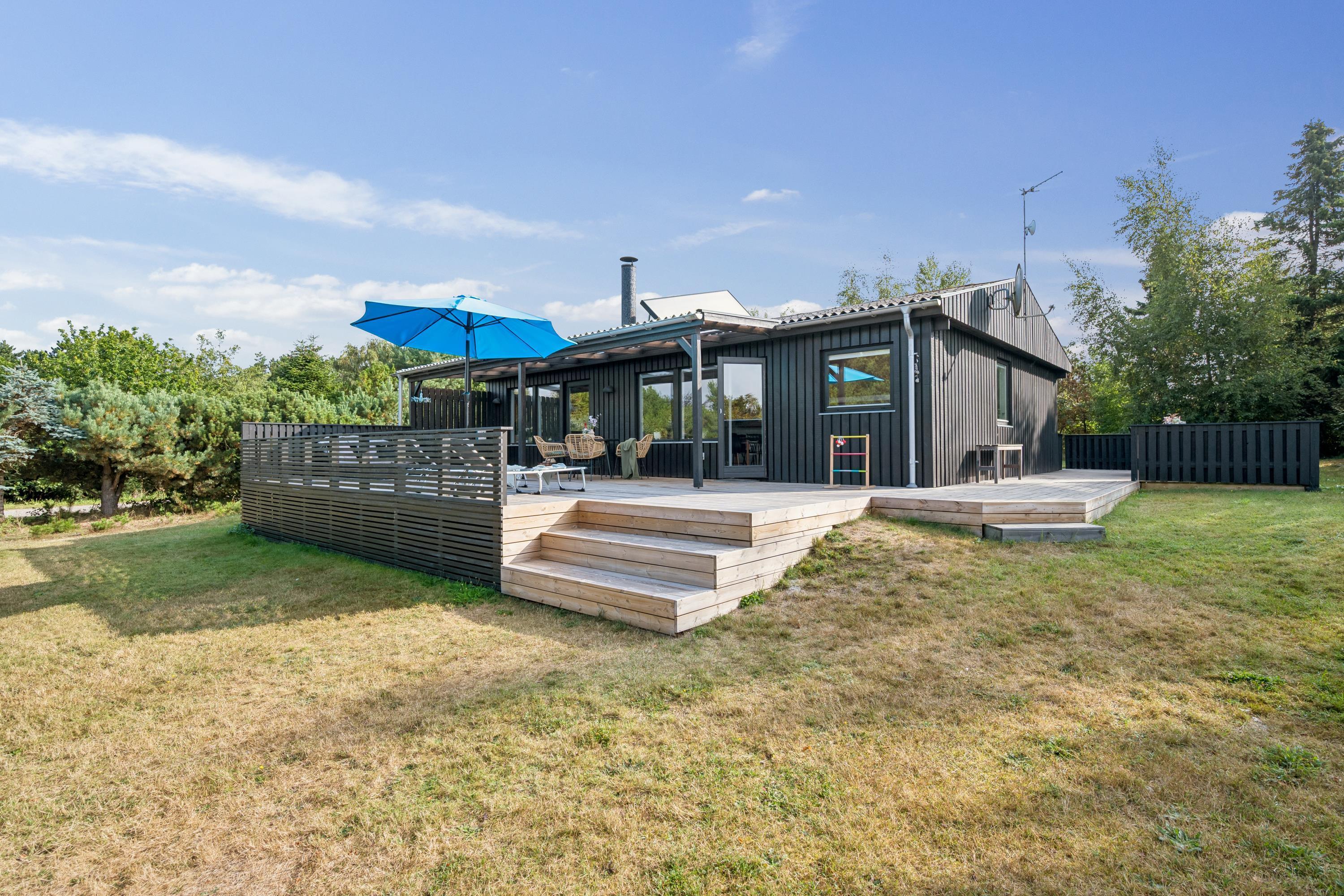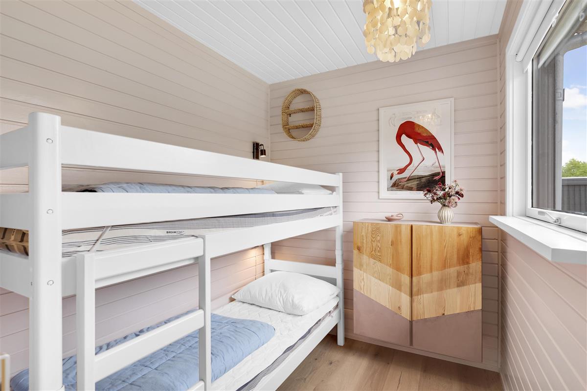 Close to a lovely sandy beach, you'll find this newly renovated and exceptionally cozy holiday home. Inside, there's a charming and well-furnished living room with access to a large terrace area equipped with garden furniture. The delightful kitchen area includes amenities such as a dishwasher. There are four beautiful bedrooms, one with a double bed, one with bunk beds, and two with twin beds. A stylish bathroom with a shower and a washing machine is also provided. For the little holidaymakers, there's a high chair and a cot available.