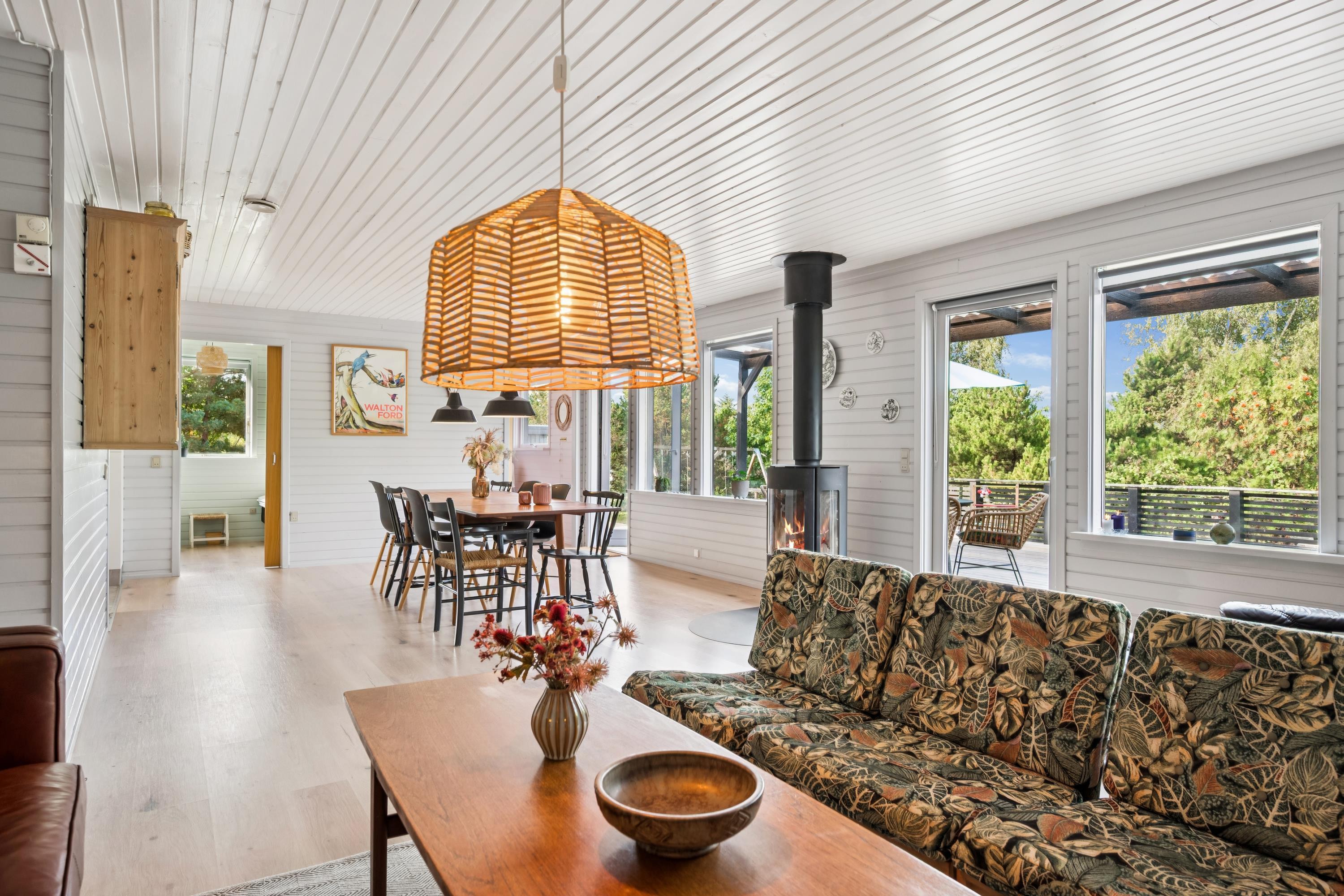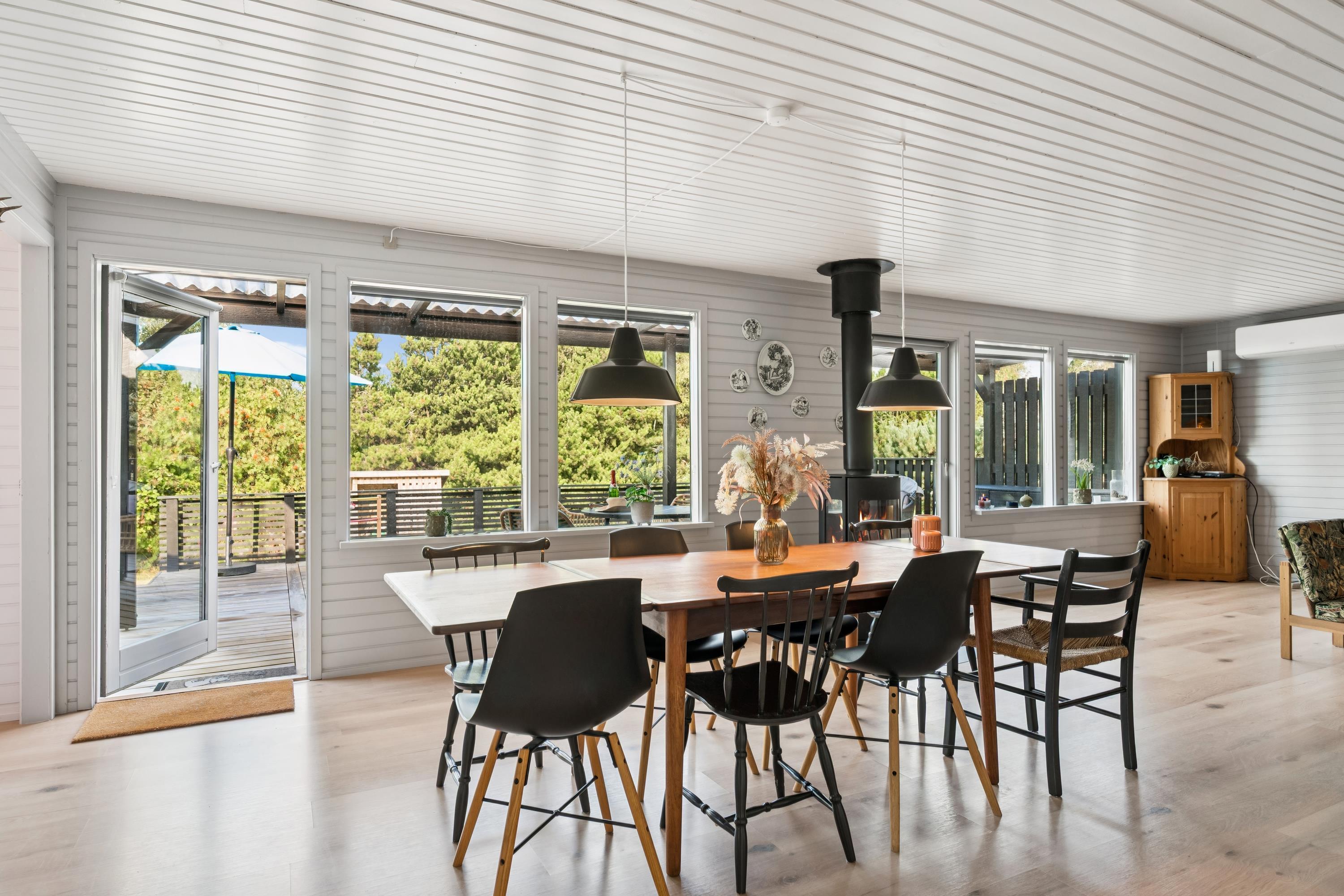 The house is located close to Boeslum Beach. The beach consists mainly of fine white sand, grass, and flower-covered beach meadows, although some parts may have a mixture of stones and sand. The water is clear, though it tends to deepen quickly. Facilities at the beach include an ice cream kiosk and toilets. Ebeltoft town, with its many attractions, is approximately 5 km away from the house. Visitors can explore attractions such as the Old Town Hall, a popular wedding venue, as well as numerous specialty shops and sidewalk cafes lining the old cobblestone streets. On the harbor, you'll find the Glass Museum, known for its modern glass art, along with several shops and eateries offering freshly caught fish daily. Djurs Sommerland, the largest amusement park in Scandinavia, and the Kattegat Center in Grenaa are both about an hour's drive away.