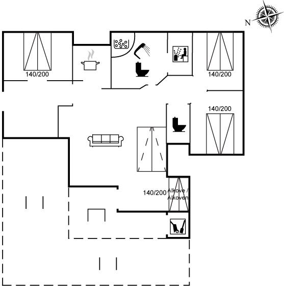 Er is 1 badkamer met douchehok en 2 toiletten, waarvan 1 gastentoilet. Er is vloerverwarming in 1 badkamer. De sauna biedt de gelegenheid tot ontspanning.