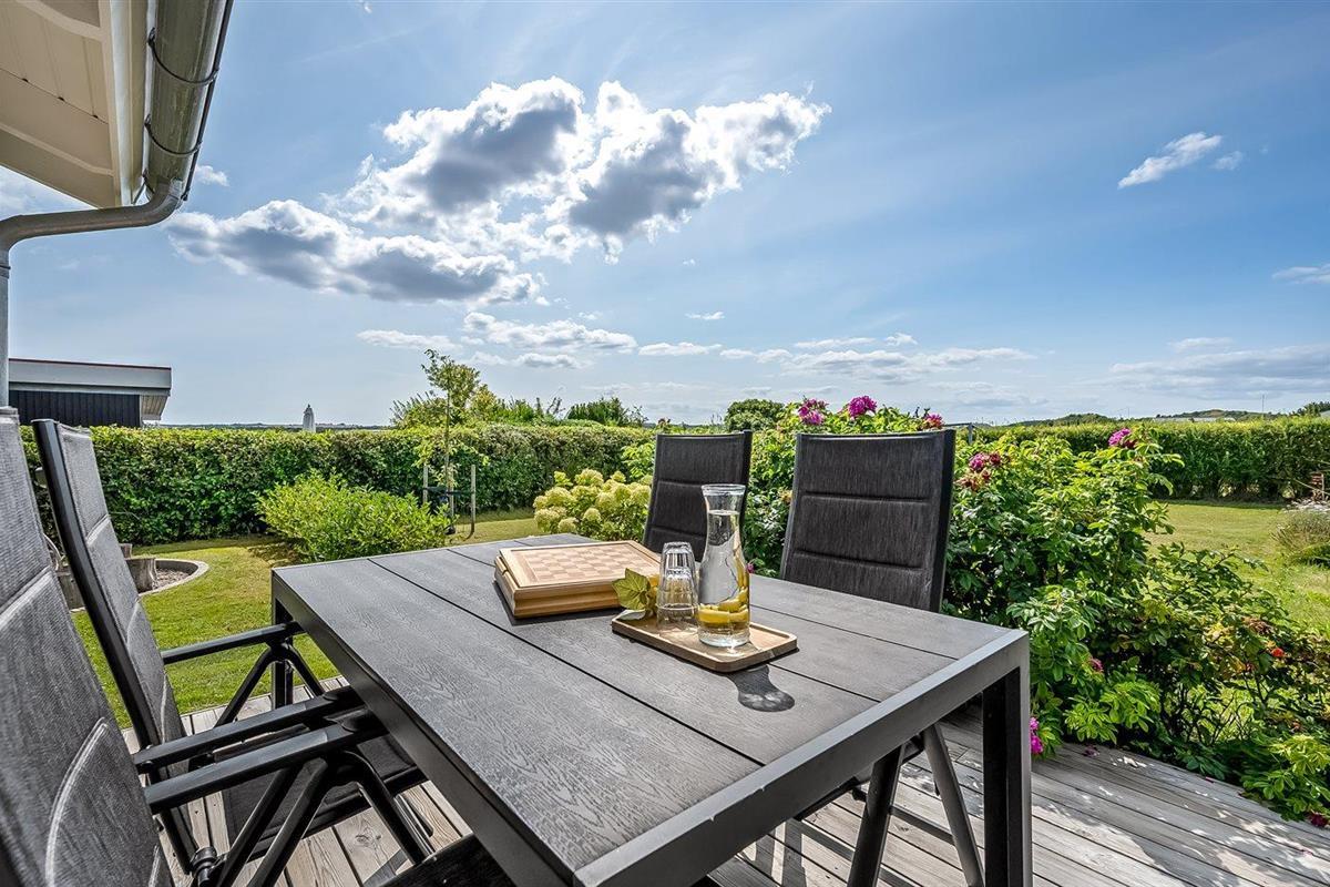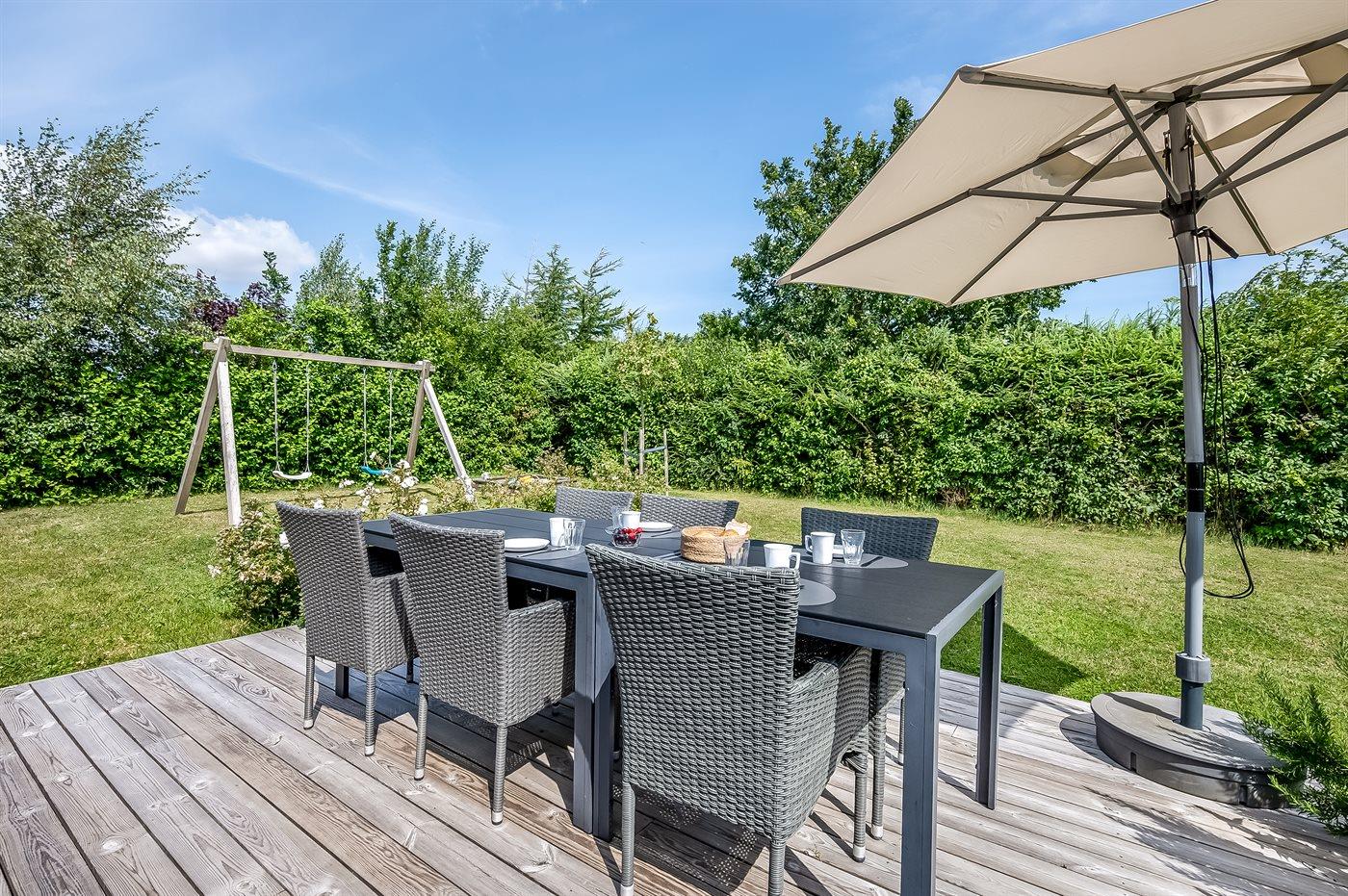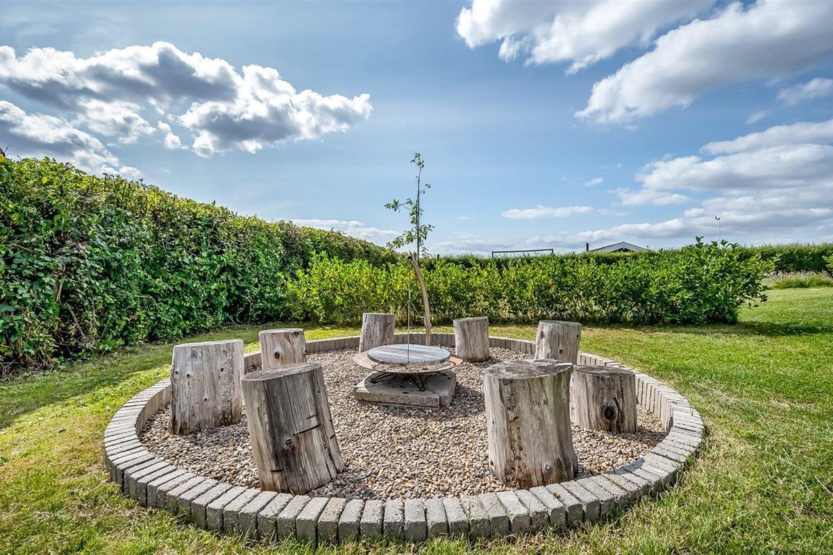 De vakantiewoning is gelegen op een 1250 m² groot aangelegde tuin. Afstand tot de zee 350 m. Dichtstbijzijnde winkel 4000 m. Bij de vakantiewoning hoort terras en 10 m2 overdekt terras. Schommel. Zandbak. Voetbaldoel.Vuurplaats. 2 Barbecues. Het huis heeft een stopcontact voor het opladen van een elektrische auto. Met 11 kW-laadvermogen. Parkeerplaats bij het huis.